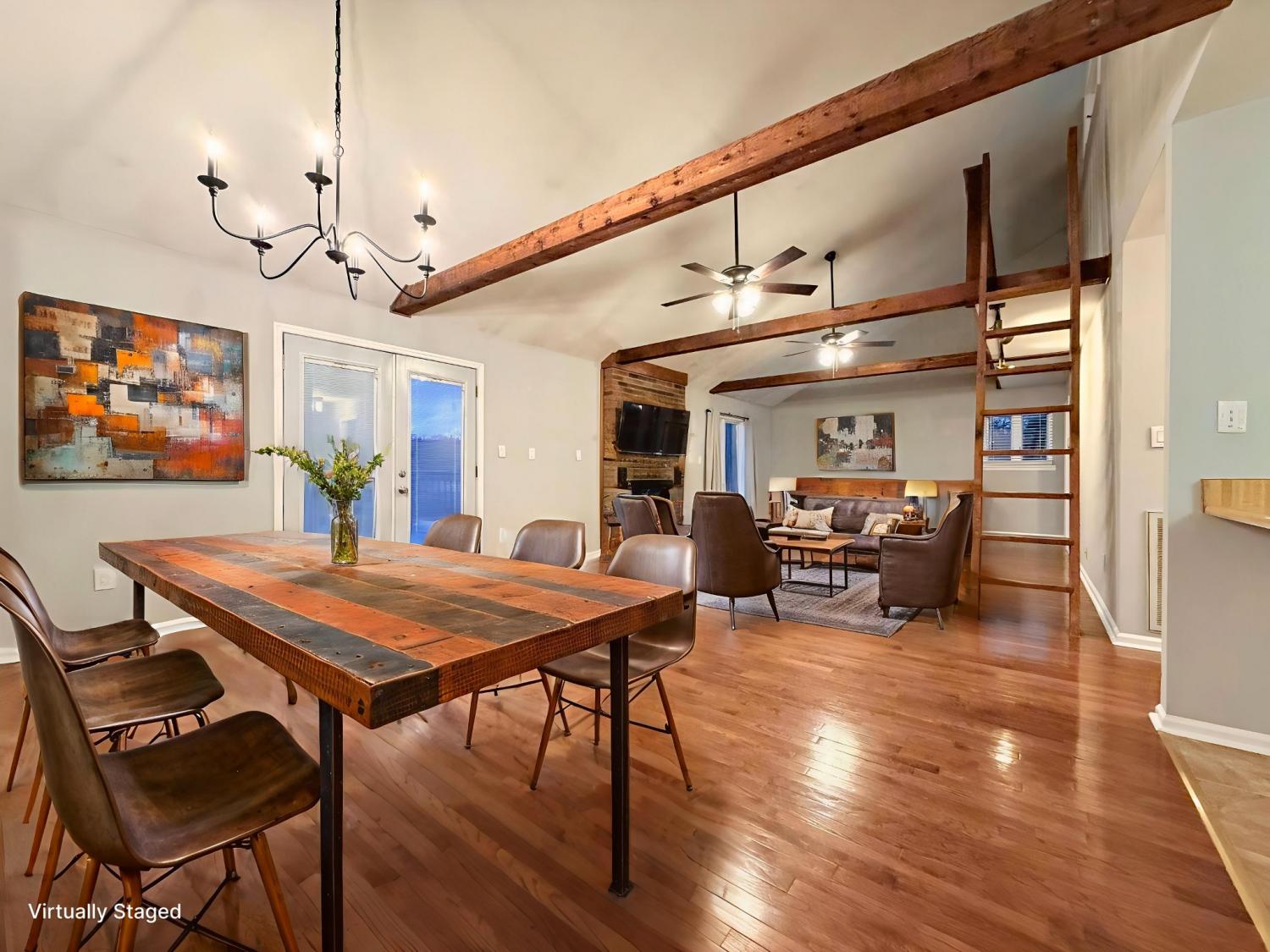 Discover the perfect blend of modern style and country charm in this fully remodeled 3 bedroom, 2 bathroom home with stunning views in every direction. Just under 4 miles from historic Gallatin Square, this home offers an open floor plan with hard-surface flooring throughout and a warm gas fireplace on each level. The main floor features a spacious primary bedroom, full bathroom, a bright kitchen with modern fixtures, a walk-in pantry, and an eat-at breakfast counter that opens to the dining/living area. Step out onto the large deck overlooking beautiful farmland—ideal for morning coffee, quiet evenings, or entertaining with a view. Downstairs, the bonus room feels like its own retreat with a wet bar, full-size refrigerator, and a second gas fireplace. Two additional bedrooms and full bathroom are also located on this level, offering privacy and flexibility for guests, office space, or hobbies. A dedicated laundry room with washer and dryer included adds convenience to everyday living.