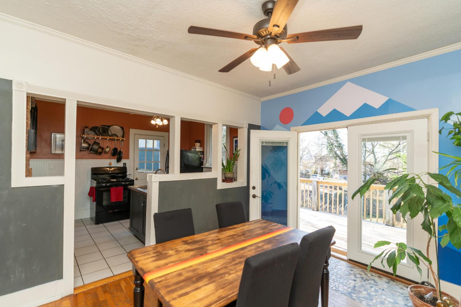 Sitting in an ideal North Chattanooga location, 916 Mississippi Avenue is across from and zoned for Normal Park Elementary. This cute two bedroom, one bath home includes 1,056 square feet, updated windows, off street parking, and a multilevel rear deck that leads into a fenced backyard suited for pets, child play, or an urban garden. Inside, the upstairs living room feels warm and inviting with a wood burning fireplace the current owner uses regularly and creates a cozy winter vibe. The dining room is nicely sized and filled with natural light, while the kitchen features a wood accent backsplash, wainscoting, and plenty of comfortable space for cooking or gathering with guests. French doors from the dining room open to the deck with a view, and a small side porch off the kitchen offers another easy access point. Both bedrooms share a full bath, and hardwood floors extend throughout the home. The basement includes a laundry unit that conveys with the property, additional storage, an air vent in the bonus room that could support a conditioned space, and a walkout door to the backyard. This home is being sold in As-Is condition and is ready for a new owner to bring updates and fresh vision to a place that already feels genuinely welcoming.