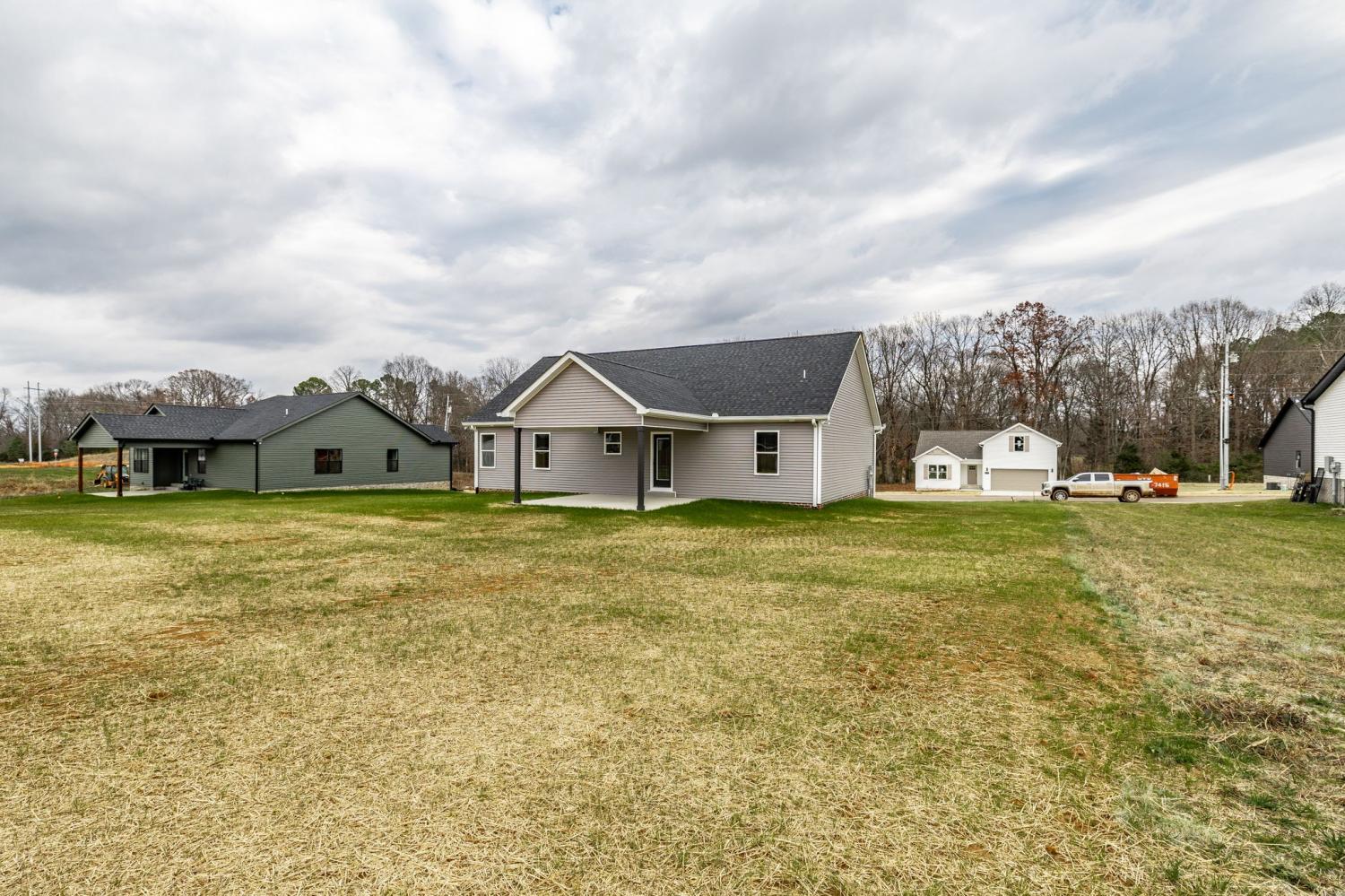 JUST COMPLETED, New construction with a huge lot and the best back yard, so rare in new builds! 3 BEDROOMS/2 BATHS WITH CUSTOM CABINETRY, COVERED BACK PORCH & SO MANY OTHER UPGRADES! Designer finishes, 10 ft ceiling in living area and wood shelving are among many great features. This home also provides lots of storage in mudroom entry, laundry and pantry areas! Builder has more lots & plans, you can choose selections with your pre-sale! No HOA!! Close to Nashville! Preferred lender offering 1% towards closing!!