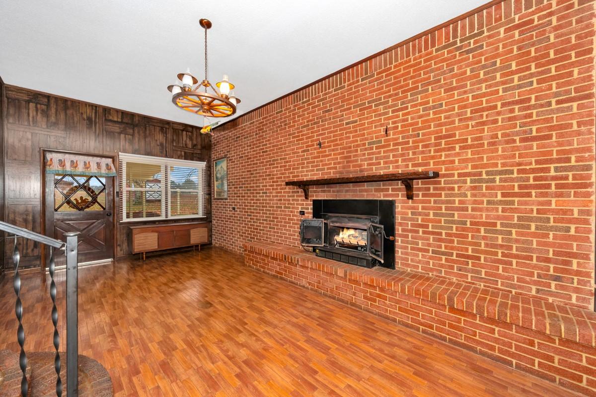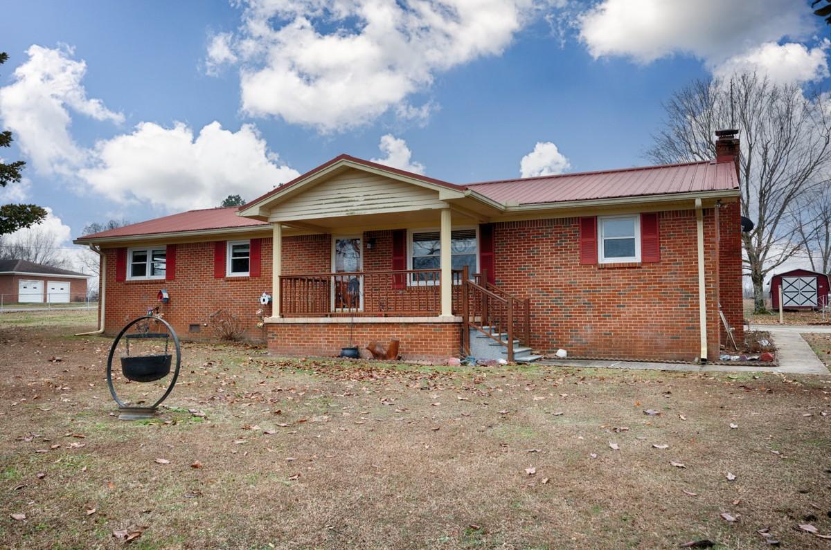 This 3BR/2BA 1652sf full brick home sits on approximately +/- 2.3 acres in a rural setting. It includes 2 outbuildings, fencing suitable for some livestock, and an in-ground storm shelter. Enter the spacious living room with lvp flooring from the covered front porch. The hallway leads to all three bedrooms and 2 recently updated 3/4 baths. The breakfast room has beautiful, exposed wood beams and flooring that leads seamlessly into the kitchen with an abundance of counterspace and wood cabinetry. The large den has vinyl flooring and a brick fireplace serving as the focal point. The laundry room has vinyl flooring, wood cabinets for storage and connections for a washer and dryer.