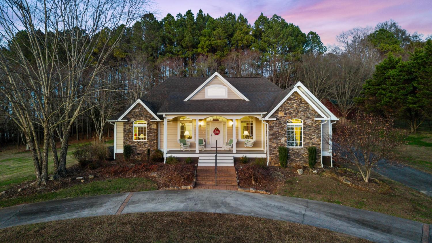 Custom-built, one-owner 3BR/2BA home on 1.26 gorgeous acres, just minutes from the Hiwassee River! Located in Charleston, TN, this beautiful property offers an excellent location near schools, shopping, and restaurants. This one-level home showcases premium custom elements throughout, including hardwood floors, exposed beams, wood-accented ceilings, and elegant crown molding. The open floor plan creates a stunning flow for both entertaining and everyday living, and the kitchen features an impressive extra-large island that serves as a true centerpiece. A bright sunroom enhances the home with abundant natural light. The living area includes a propane gas fireplace, while the primary suite offers double vanities, a claw-foot tub, and a walk-in shower. Outdoor living features a charming covered front porch with a peaceful view, a covered back porch, and an open patio designed for grilling and gatherings. A two-car carport with extra storage and a three-car detached garage—ideal for a workshop or hobby space—provide exceptional versatility. An unfinished bonus room above the carport offers additional storage or future expansion. The land is mostly cleared with a wooded backdrop—beautiful, private, and full of potential.