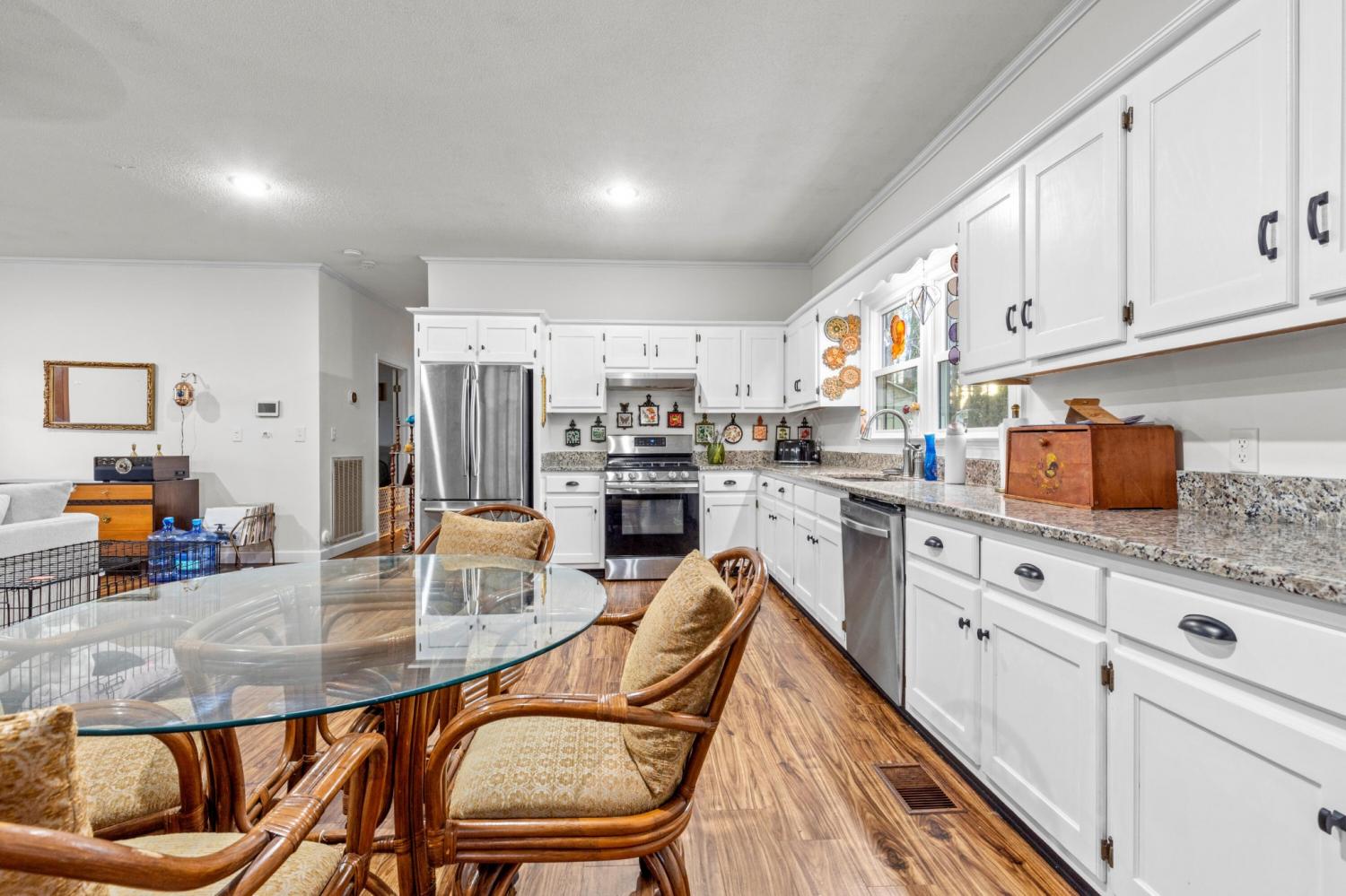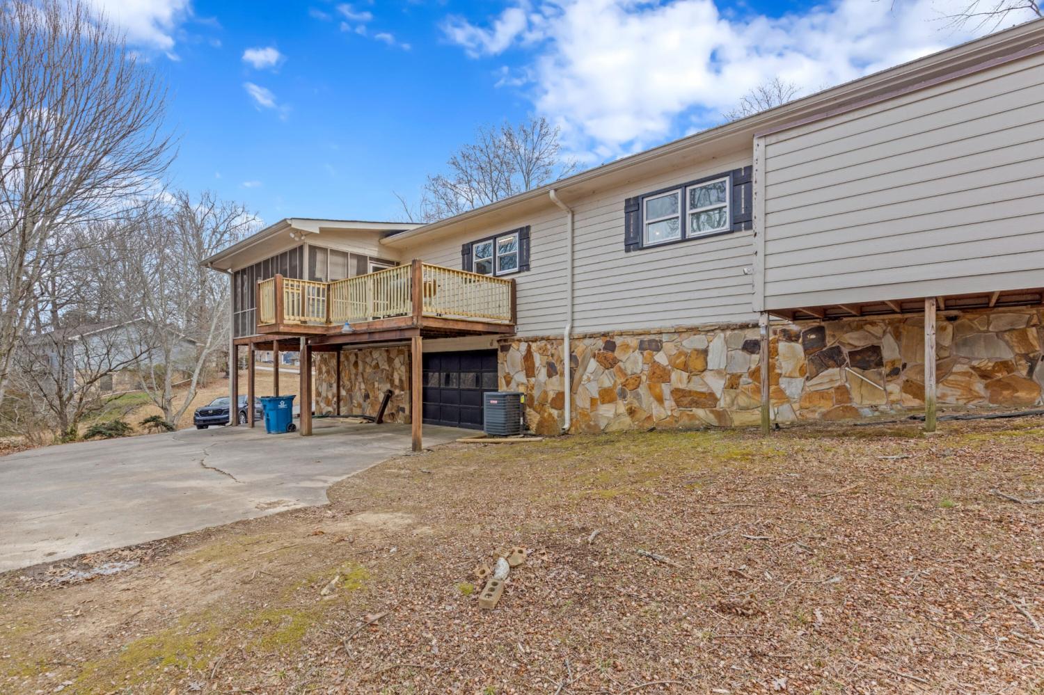 Welcome to 725 Smitherman Rd—a charming 3-bedroom, 2-bath home offering 2,340 square feet of comfortable living space on a half-acre lot in a peaceful, walkable neighborhood. Inside, you'll find a separate dining room and a welcoming living room centered around a beautiful stone fireplace, creating a warm and inviting atmosphere. The home also features an additional living space, perfect for a den, media room, or home office, along with a spacious kitchen designed for everyday living and entertaining. Recent updates add tremendous value, including a new HVAC system just 3 years old, a roof replaced in 2018, and new windows installed in 2022 with a lifetime warranty. The primary suite offers a relaxing retreat with a master bathroom featuring a walk-in rain shower, combining comfort and modern style. With thoughtful updates, generous living space, and a desirable location, this home is move-in ready and full of potential. Enjoy the quiet surroundings from the relaxing screened-in porch or step outside to the open deck space, ideal for outdoor gatherings. The basement adds even more versatility with a garage/workshop area, additional living space, and one bedroom—perfect for guests, multigenerational living, or a private retreat. Ideally located just minutes from the Georgia Winery and the restaurants and shops of Battlefield Parkway, and only 20 minutes from Downtown Chattanooga, this home offers the perfect blend of convenience, space, and serenity.