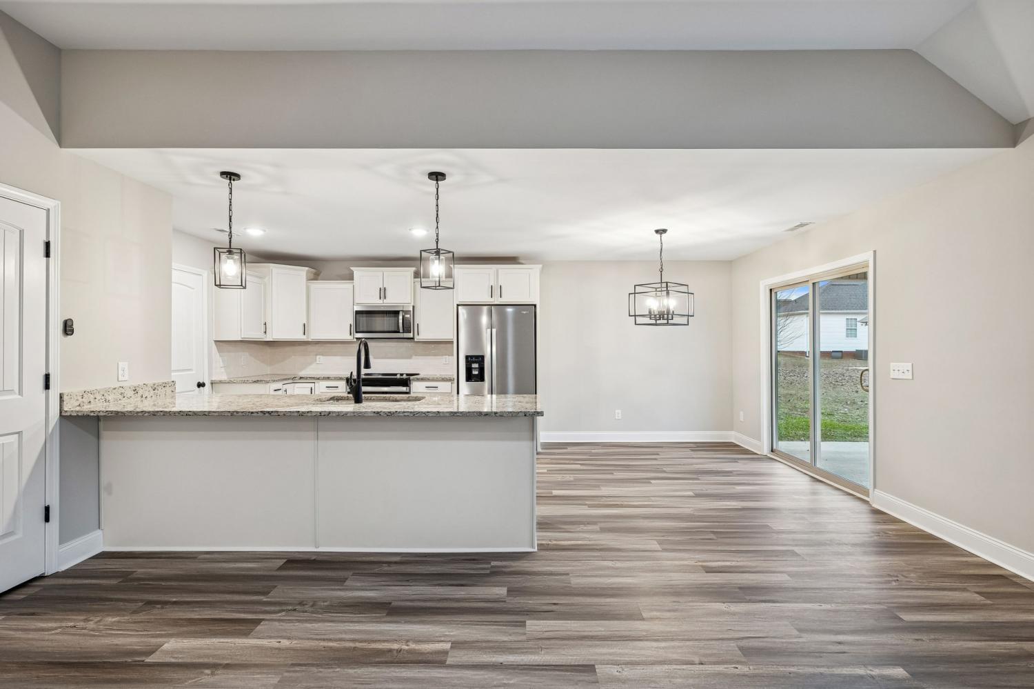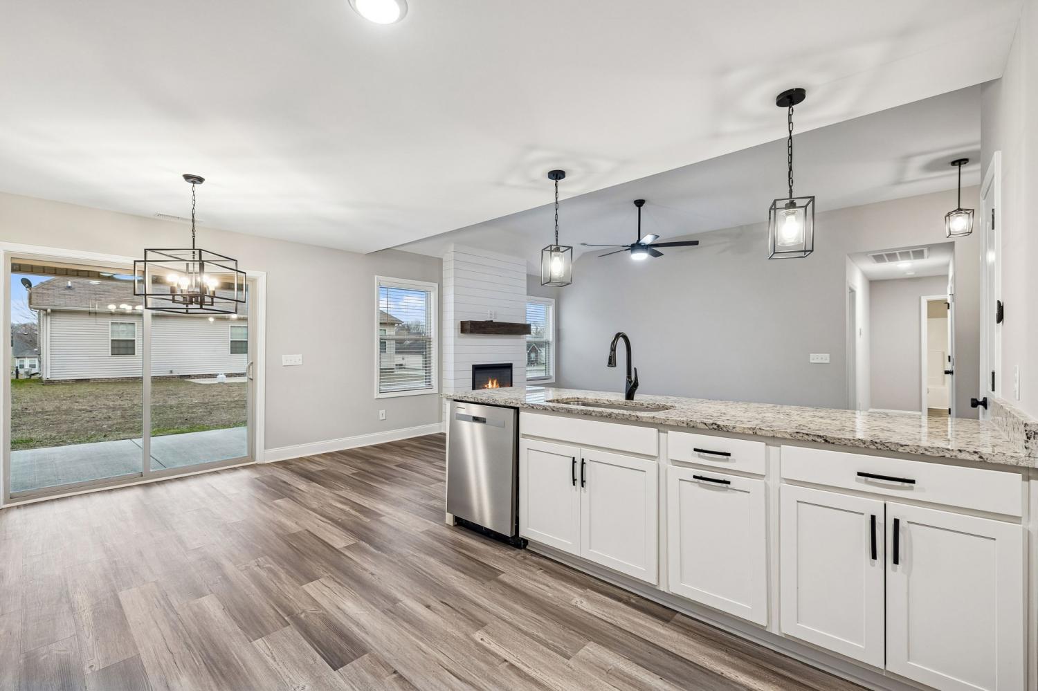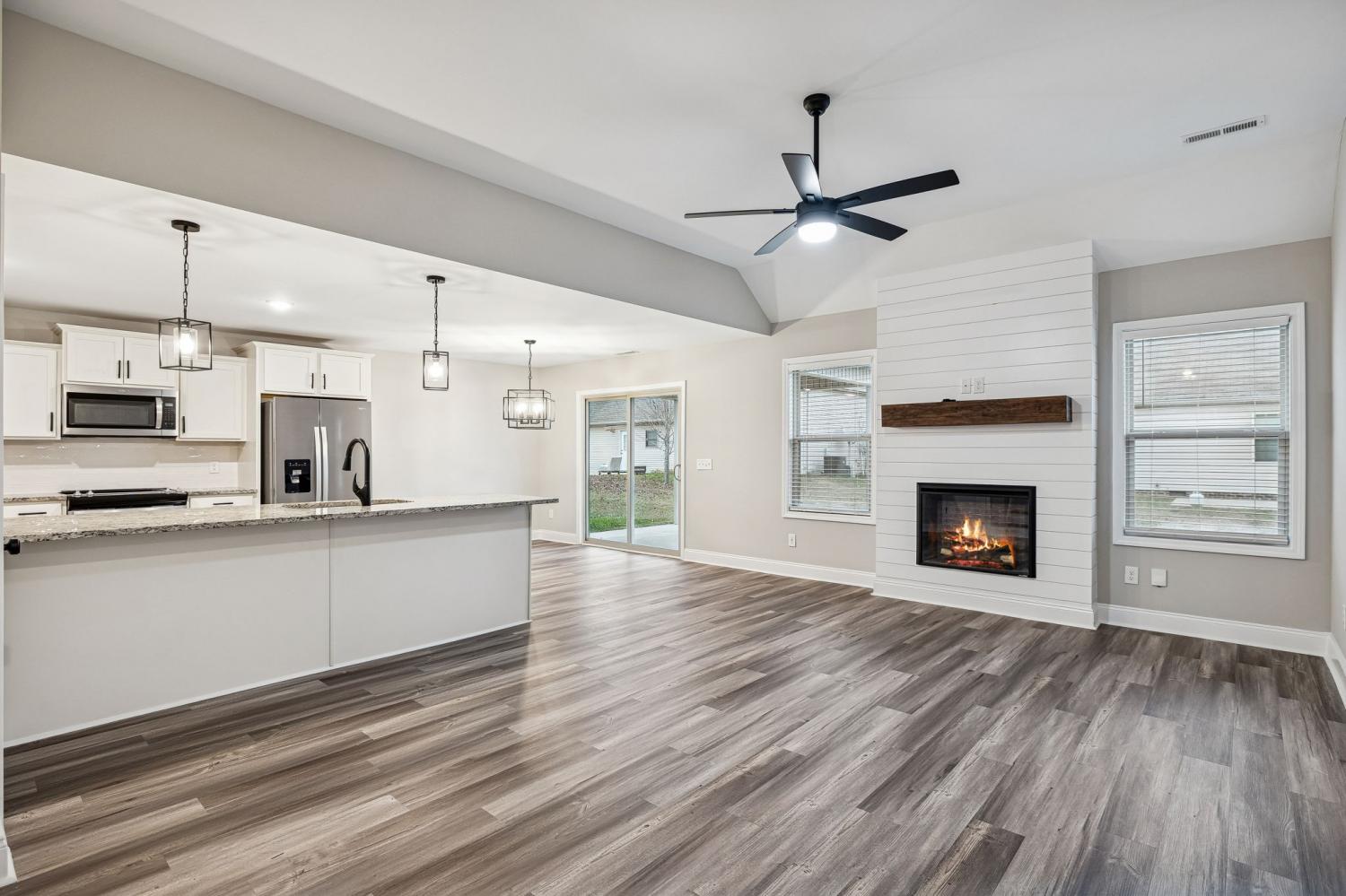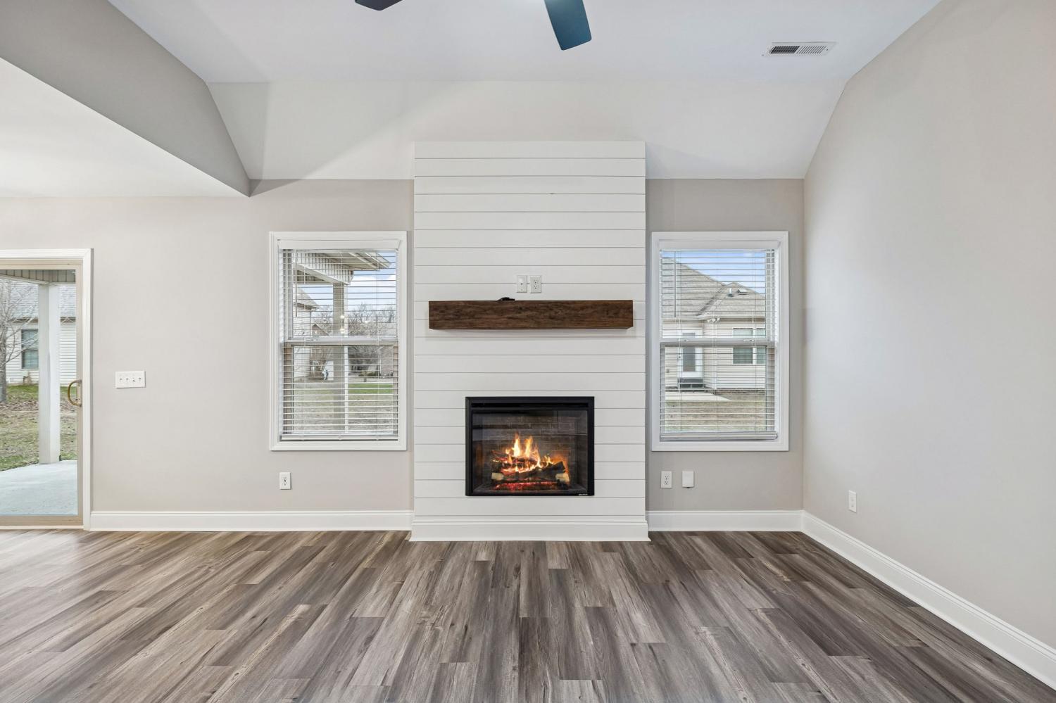 Welcome home to 216 Fieldstone Lane, a thoughtfully designed property offering style, comfort, and beautiful upgrades throughout. The living area features a beautiful shiplap fireplace that creates a welcoming focal point. The kitchen includes a large bar for seating, granite countertops, tile backsplash, and stainless appliances. With plenty of space for cooking, it is perfect for entertaining. The primary suite features a coffered ceiling, an accent wall, tiled shower, and custom closets. Additional bedrooms are well sized and filled with natural light. A spacious bonus room sits over the garage and provides the perfect space for a playroom, home office, or media room. The epoxy coated garage floor adds a clean and durable finish. Enjoy the covered back patio that expands a relaxing space outdoors. The backyard offers room to play and entertain. Residents of this community enjoy excellent amenities including a pool, clubhouse, sidewalks, and underground utilities. This home is move in ready and a wonderful opportunity to enjoy comfort and convenience in Springfield.