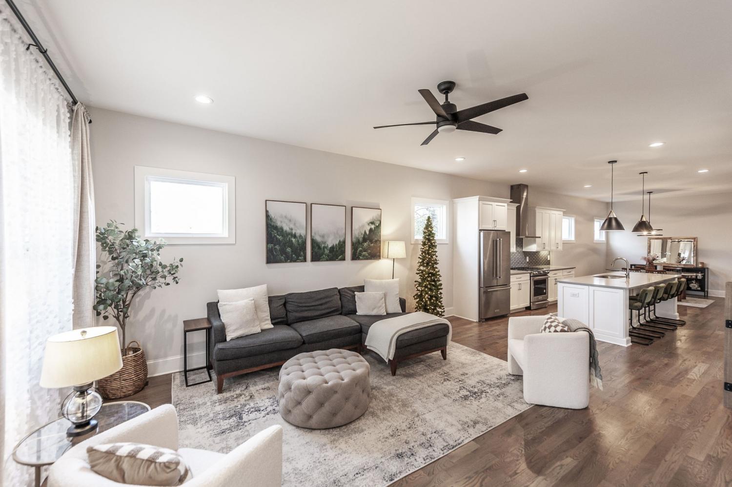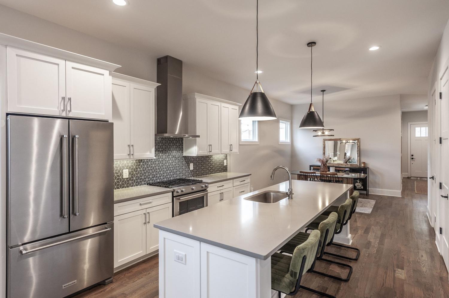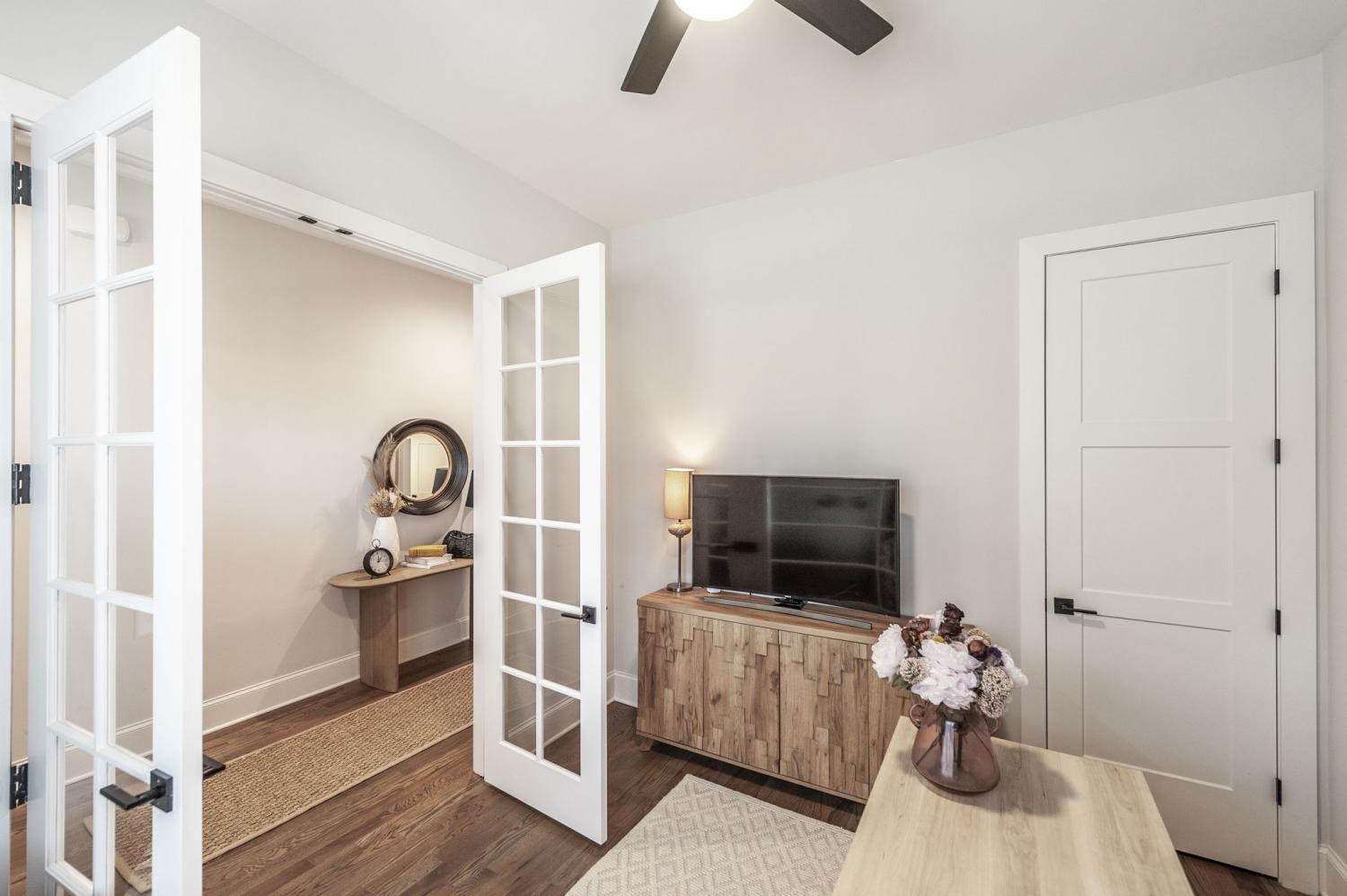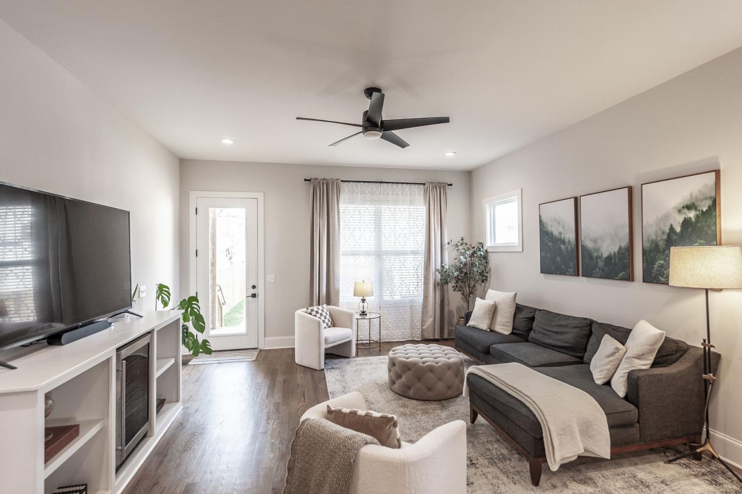 Beautifully maintained home in the heart of the emerging Buchanan Arts District - just minutes to downtown Nashville! This modern yet inviting home offers a flexible floor plan with 3 - 4 bedrooms and three full baths. The main-level bedroom is currently used as an office and includes added doors for privacy, making it an ideal work-from-home or guest space. Enjoy an open-concept main floor with hardwood floors throughout, upgraded tile, quartz countertops, stainless steel KitchenAid Pro appliances, and a stylish built-in wine/beverage center perfect for entertaining. This home is loaded with upgrades, including a tankless water heater for endless hot water, dual-zone HVAC for efficient independent heating and cooling, and Smart Home integration with Google Nest thermostats - app-enabled for remote temperature control. The home is also wired with Google Fiber, offering fast, reliable internet without exterior wires. Custom curtains are installed throughout the home, adding a touch of elegance. Upstairs, spacious bedrooms offer generous closets and ample storage. Outdoors, enjoy a private covered rear porch overlooking a beautifully stained fence and a healthy Honey Locust tree that provides summer shade. The property includes two storage sheds, a two-car parking pad off the alley, and added arborvitae in the front yard for extra privacy. Security features include Ring cameras on the front and back porch with app access for peace of mind. A quick walk to great neighborhood spots - see map in photos for details. Also within walking distance to popular Germantown restaurants, including Rolf & Daughters, 5th & Taylor, and The Optimist and the Nashville Sounds Stadium. The new Kroger is only one mile away. This exceptionally well-cared-for home blends thoughtful upgrades, modern convenience, and unbeatable location in one of Nashville’s fastest-growing neighborhoods.