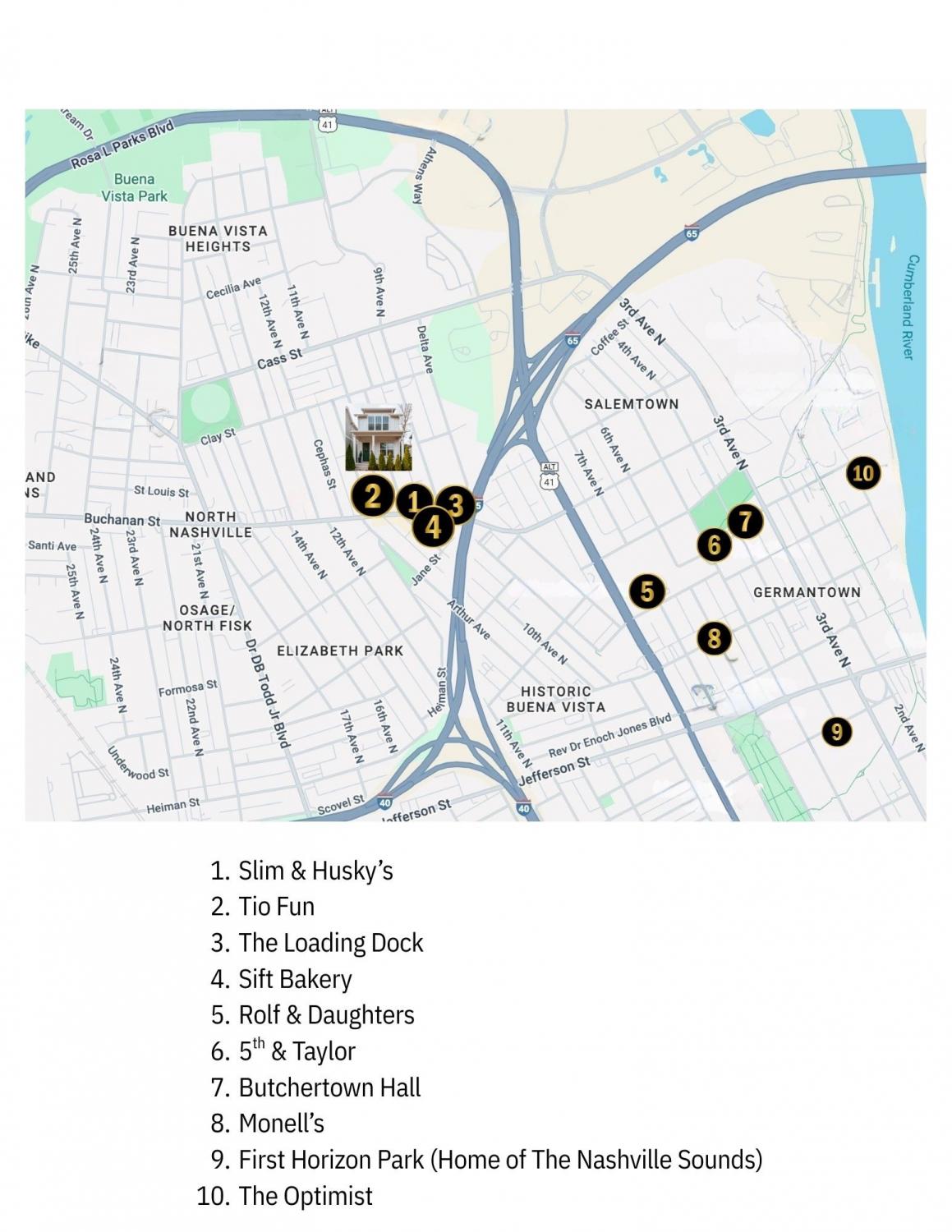 From Downtown or I-65, take Rosa L Parks Blvd north. Turn left on Clay St, then right on 10th Ave N. Home is on the right at 1827B.