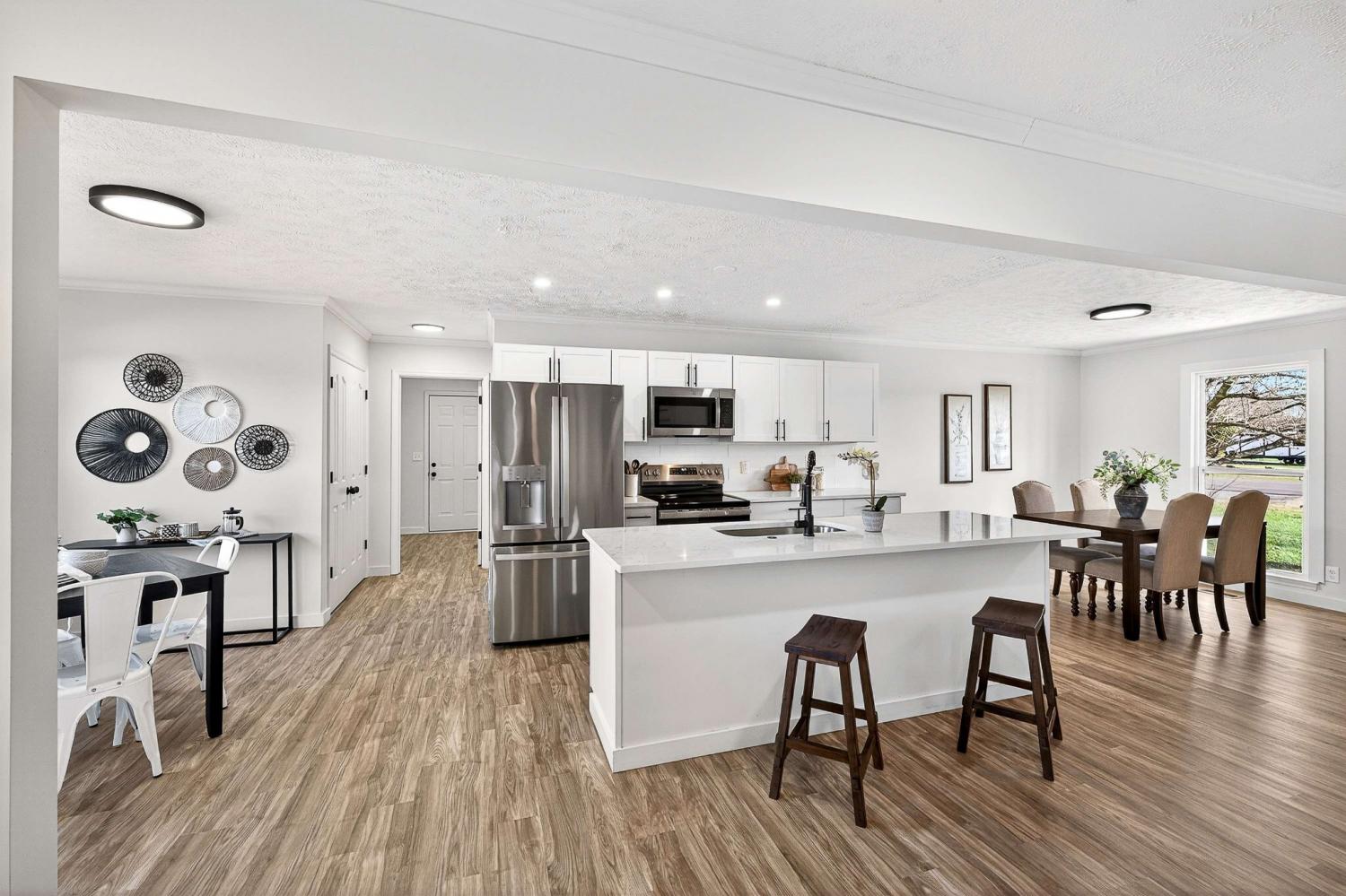 Step into this beautifully renovated home, nestled on nearly half an acre in Murfreesboro, blending modern elegance with warm comfort, featuring 3 spacious bedrooms and 3 full baths, with another large flex room w/ closet upstairs - with all luxurious upgrades you've been looking for! A welcoming covered porch with wood pillars sets the tone before entering a light-filled interior with LVP flooring and a cozy living room fireplace - perfect for chilly winter days. Entertain in style in the brand-new kitchen highlighted by an impressive 8-foot island, sleek white cabinetry, gleaming quartz counters, stainless steel appliances, and recess lighting that elevates the space. The dining room offers the ideal setting for memorable gatherings, while the primary suite delivers a spa-like experience with its floor-to-ceiling tiled dual-head shower retreat and a walk-in closet. Two more bedrooms share a second bathroom on the main level. Upstairs, a spacious bonus room, another full bathroom, and a large flex room provide options for working, relaxing, or additional bedroom space. Step outside to the deck overlooking a big back yard perfect for grilling and unwinding. The attached side 2-car garage and large driveway provide ample storage and parking. With a new HVAC, roof, and windows, you can move in with confidence and peace of mind. Located just minutes from 840 and 231 with quick access to top restaurants, shopping, and everyday conveniences, this high-end yet inviting home offers the lifestyle so many Middle Tennessee buyers are seeking - schedule your showing today!