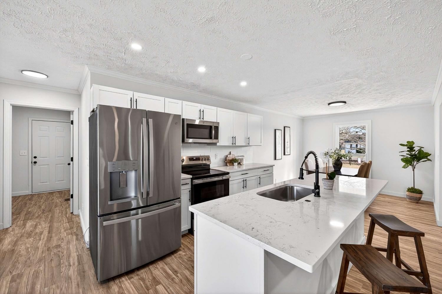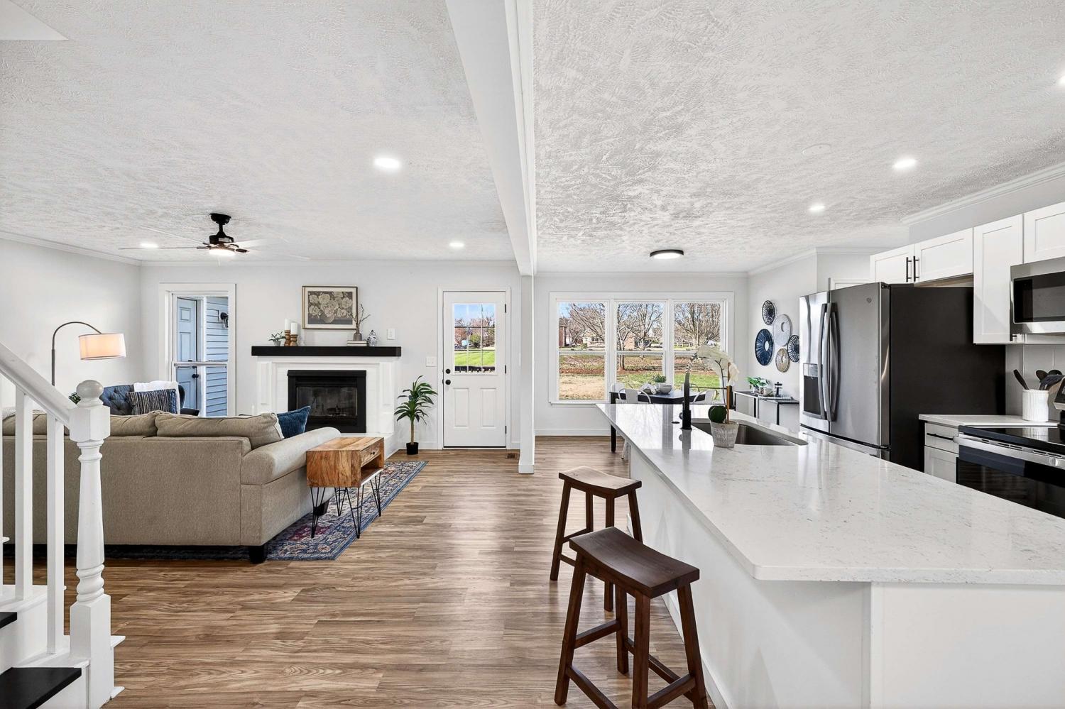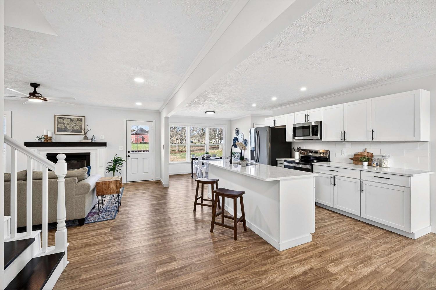 Step into this beautifully renovated rental home, nestled on nearly half an acre in Murfreesboro, blending modern elegance with warm comfort, featuring 3 spacious bedrooms and 3 full baths, with another large flex room w/ closet upstairs - with all luxurious upgrades you've been looking for! A welcoming covered porch with wood pillars sets the tone before entering a light-filled interior with LVP flooring and a cozy living room fireplace - perfect for chilly winter days. Entertain in style in the brand-new kitchen highlighted by an impressive 8-foot island, sleek white cabinetry, gleaming quartz counters, stainless steel appliances, and recess lighting that elevates the space. The dining room offers the ideal setting for memorable gatherings, while the primary suite delivers a spa-like experience with its floor-to-ceiling tiled dual-head shower retreat and a walk-in closet. Two more bedrooms share a second bathroom on the main level. Upstairs, a spacious bonus room, another full bathroom, and a large flex room provide options for working, relaxing, or additional bedroom space. Step outside to the deck overlooking a big back yard perfect for grilling and unwinding. The attached side 2-car garage and large driveway provide ample storage and parking. With a new HVAC, roof, and windows, you can move in with confidence and peace of mind. Located just minutes from 840 and 231 with quick access to top restaurants, shopping, and everyday conveniences, this high-end yet inviting home offers the lifestyle so many Middle Tennessee renters are seeking - schedule your showing today!