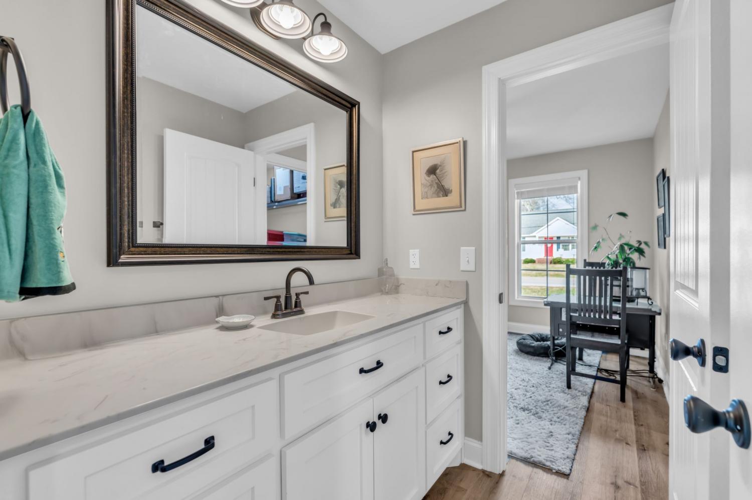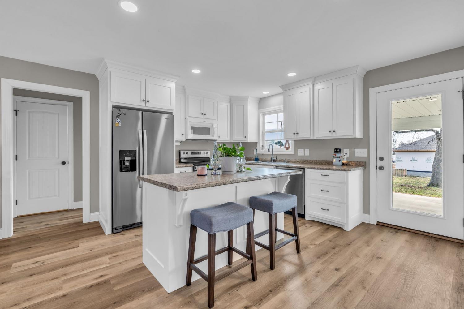 Like-new 3-bedroom, 2.5-bath home located in the heart of downtown Ethridge. This one-level Hardie board home sits on a flat lot and features a desirable split floor plan, with the primary suite on one side and secondary bedrooms on the other, connected by a Jack-and-Jill bathroom. The kitchen offers custom cabinetry, stainless steel appliances, a center island, and a walk-in pantry. Enjoy the convenience of a covered two-car carport, plus a level yard with partial privacy fencing—perfect for easy living and entertaining.