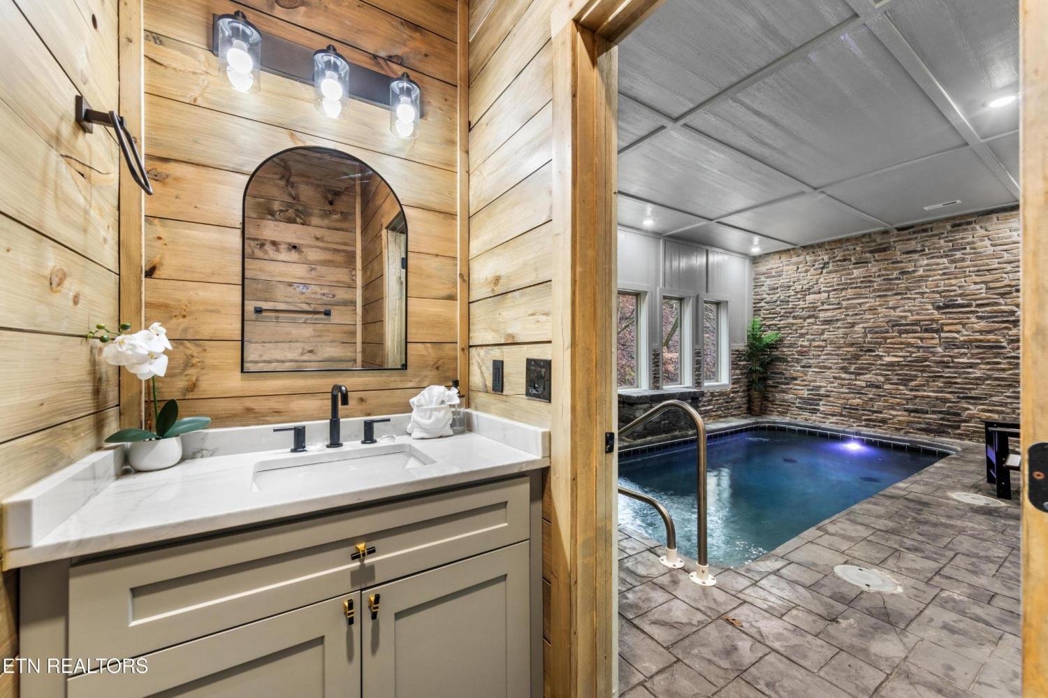 STOP searching — this stunning log cabin offers the perfect blend of rustic charm and modern luxury in one of the Smoky Mountains' most sought-after communities! Thoughtfully designed for both relaxation and entertainment, this rare find features 4 spacious bedrooms, 4 full bathrooms, and 2 half bathrooms, making it ideal for large groups, family retreats, or high-performing short-term rental use. The chef's kitchen is as beautiful as it is functional, perfect for preparing meals and hosting gatherings. Cozy up by the stone fireplace, enjoy year-round fun in your private indoor pool, or head downstairs to the home theater and arcade area for unforgettable entertainment. Step outside to the elevated deck, where you can sip your morning coffee while taking in serene mountain and nature views. Located just 10 minutes from Pigeon Forge Island and 15 minutes from Dollywood, this cabin offers easy access to top Smoky Mountain attractions while still providing a peaceful, private setting guests crave. With projected rental income up to $130,000 per year, this property is not only a dream getaway but also a lucrative investment opportunity. Properties like this are a rare find in the Smoky Mountains. Don't miss your chance to own an exceptional cabin in a prime location — schedule your private showing today!