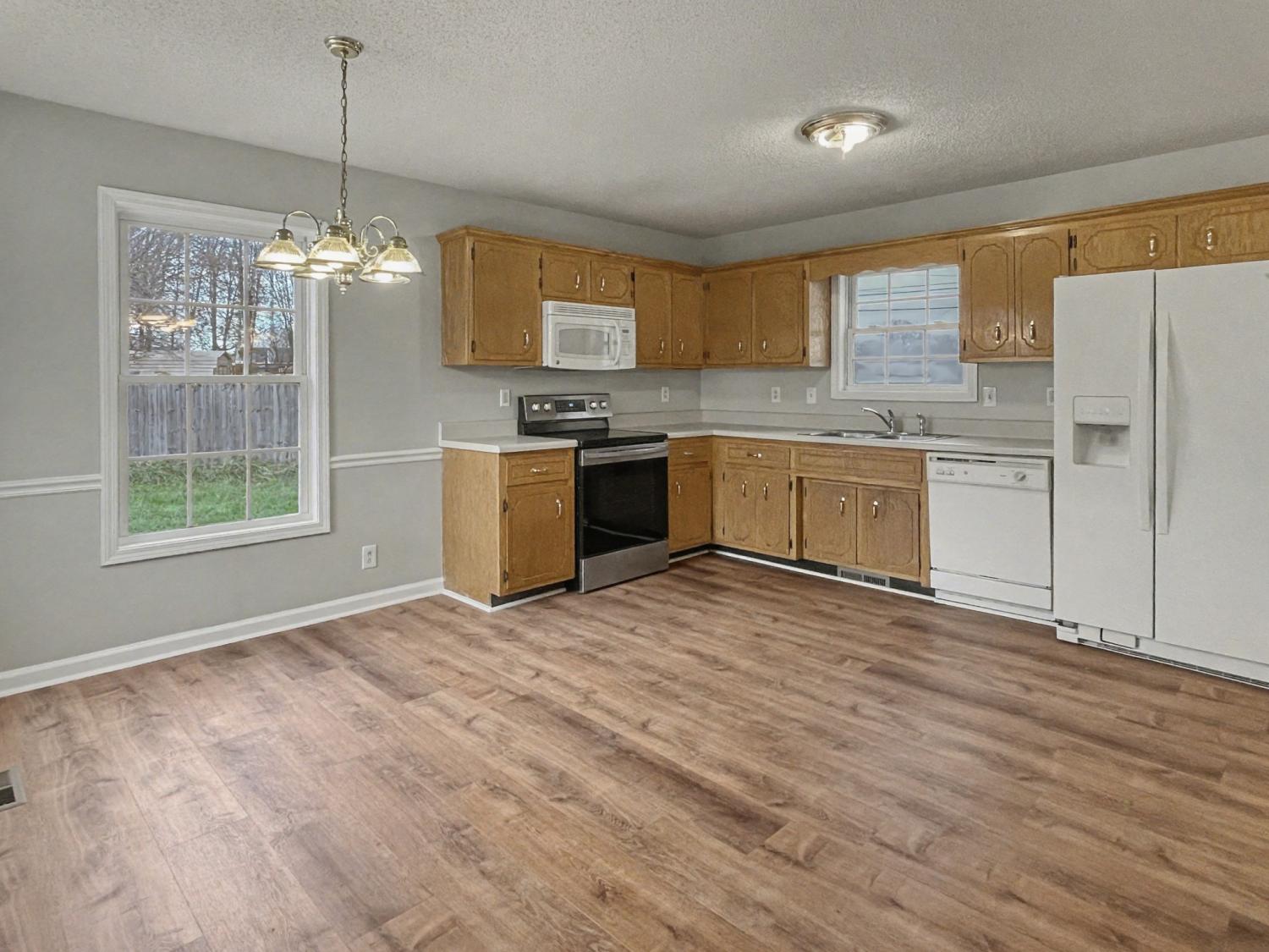 Recently refreshed 4 bedroom home in a prime location. Close to Ft. Campbell, shopping, and I24 for easy access to Nashville. New wide plank lvp flooring throughout the common areas and new carpet in all bedrooms. There was a new garage door installed recently. The entire home just been painted as well and is ready for you to put your touch on it. The generous sized living room offers soaring ceilings and a large area for entertaining. The main floor primary provides easy access, has tons of natural light, and enough space for a king-sized bed. Upstairs features 3 large bedrooms and a full bath. This corner lot is massive and has tons of space for outdoor activities. This home has a lot to offer and a great value under $300,000!