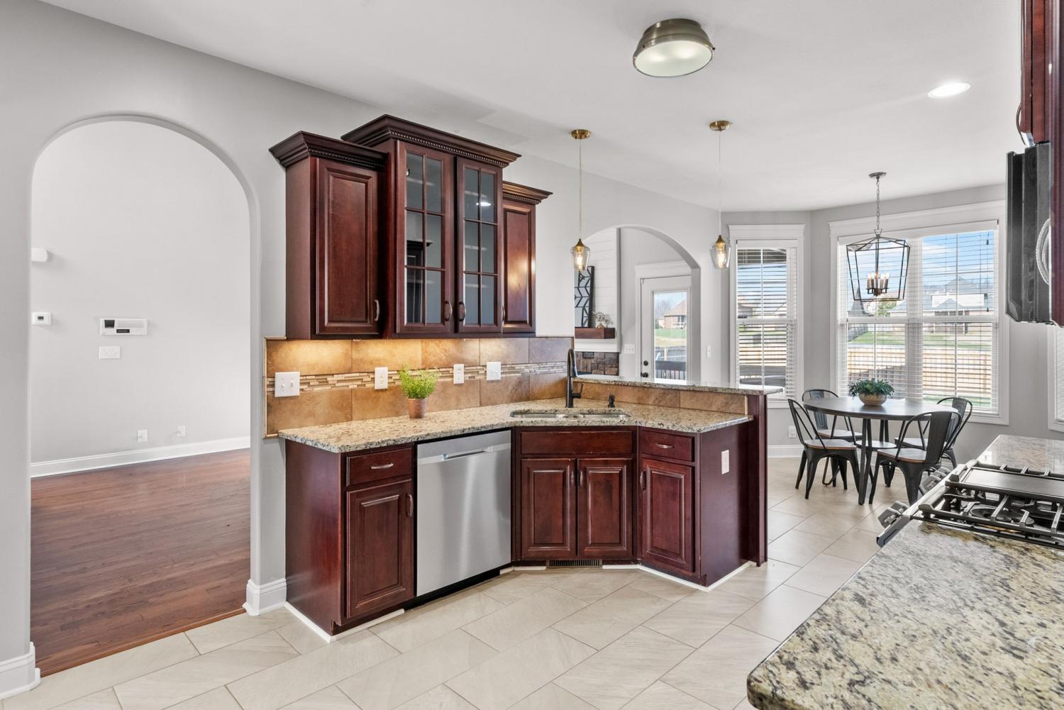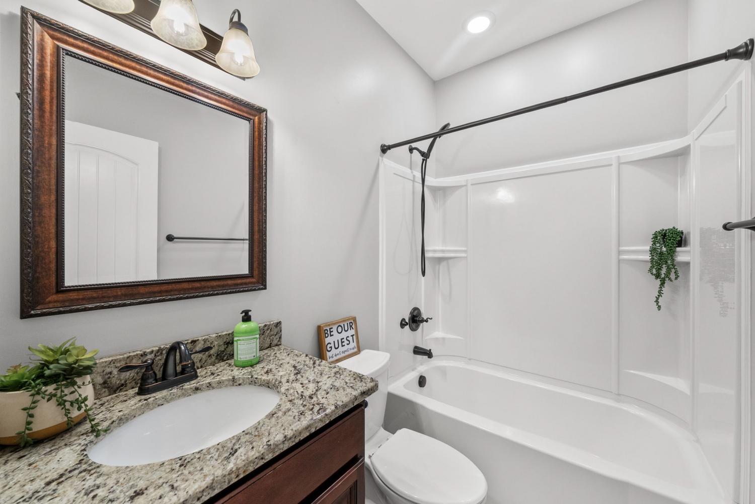 Welcome to this beautiful home in the highly sought-after Farmington subdivision, proudly zoned for the award-winning Kirkwood School District. With upgrades galore like real hardwood floors, tile, quartz, granite, blinds, natural gas, and more. Home has been meticulously maintained. Inside, you’ll find a spacious main level with an open flow between the living room, dining room, kitchen, and breakfast nook. The kitchen features a pantry, glass cabinet doors, and overlooks the bright breakfast area and main living space—perfect for gatherings. The primary suite is privately tucked on the main floor and includes dual walk-in closets and a large en-suite bathroom with massive brand new shower, and separate vanities. A secondary bedroom and full bath are also located on the main level along with a dedicated laundry room with a utility. Upstairs, the home offers three additional bedrooms, a shared full bath, and generous attic storage. One of the bedrooms is large enough to be a bonus room if desired and includes a half-bath. An abundance of natural light on both levels complete the interior. The property includes a fiberglass saltwater pool installed in 2024, a tankless water heater installed in 2023, a new roof in 2025, retaining wall in 2024, appliances were replaced in 2023, refrigerator in 2025, garage floor epoxy done in 2023, upstairs carpet replaced in 2023, downstairs in 2025.