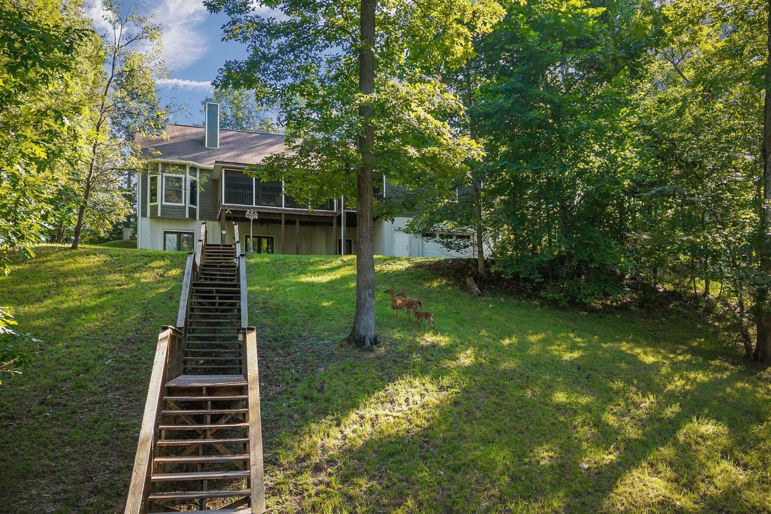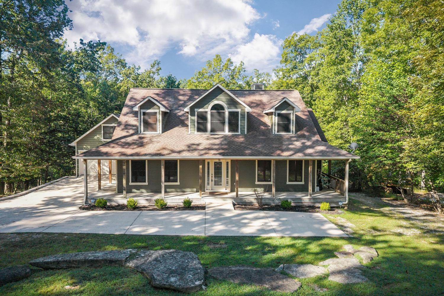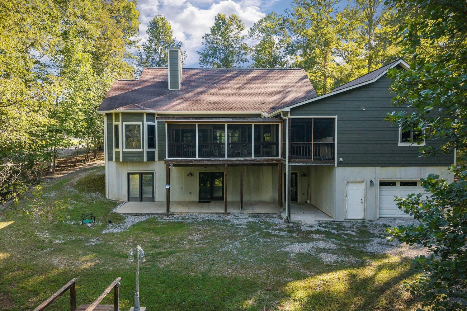 The perfect waterfront home for a large family or create a fabulous Airbnb. This fantastic home, with 127 river frontage, features a wrap-around front porch, an extended screened-in back porch with an outdoor kitchen, and a walk-out basement. The main-floor living room features vaulted ceilings, a fireplace, & is equipped with a central heating system that uses gas heat. The basement is also heated with gas. The upper-level CHA unit is electric. The house is equipped with several cameras and features ceiling fans throughout. But what truly sets this home apart are the stunning Rocky River views from the screened-in back porch & the primary bedroom. The main floor also features a dining room, an eat-in kitchen, a laundry room, a guest bathroom, & a pantry. The home features three kitchens & a driveway that circles to the garage in the basement. The upstairs has two bedrooms, an additional room set up as a bedroom, & a full-sized bathroom with a tub/shower combo. The owners added 1684 sq. ft of living space in the basement, which includes a full bath, huge den/family room, a kitchenette with appliances to remain, a storm shelter, & four to five additional rooms with closets that could be used for bunk beds, office, playroom, music/library, or exercise. The well-built basement was designed with superior concrete walls & metal supports for the beams. You'll feel deeply connected to nature and serene in this beautiful setting, where a family of deer may stroll through the yard at any moment. Rock Island State Park is just minutes away, offering shopping, natural beauty, & the Sandbar, which joins the Caney Fork River & has a picnic pavilion. Fall Creek Falls State Park & Cumberland Caverns are just a short drive away. Come home to natural beauty & enjoy the great outdoors at 115 Long Point Drive—buyer & buyer's agent to verify all pertinent info. If square feet are essential, please measure.