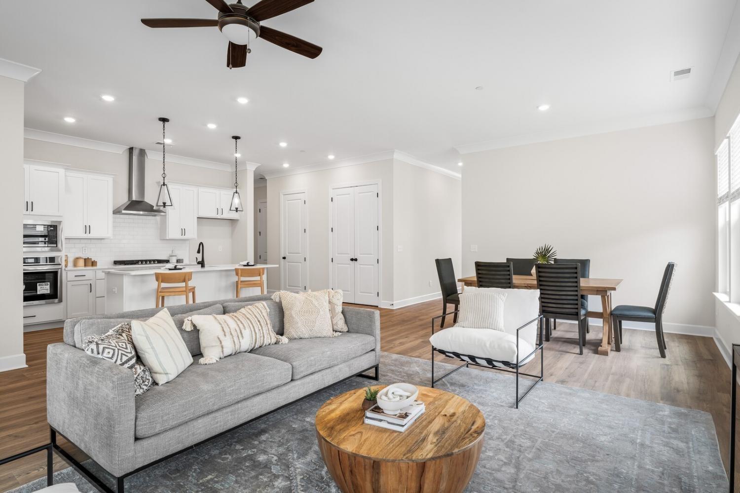 Last chance for this beautiful Corsair floorplan Lot 52 in our nearly sold-out Thompson Station community! It is a prime location being the first house in the community and on the end. This one-level ranch end unit offers tranquil views of lush greenspace, perfect for watching the sunrise! Inside, you’ll be delighted by soaring 10’ ceilings, 8’ doors, GAS fireplace and wall of windows for tons of light PLUS a gourmet kitchen featuring a 5 burner GAS cooktop, oversized island, quartz countertops, and designer finishes — perfect for hosting parties or everyday living! Thoughtful touches such as a drop-zone boot bench and under-cabinet lighting to pendant fixtures, window blinds and a two car attached garage make this home hard to pass up. Hurry in for a tour today before it is going, going...gone!
