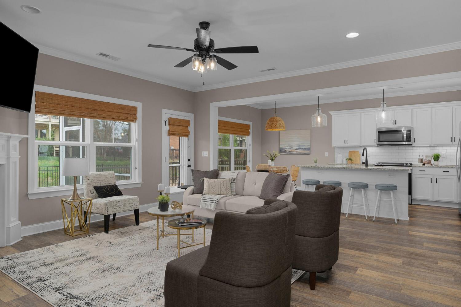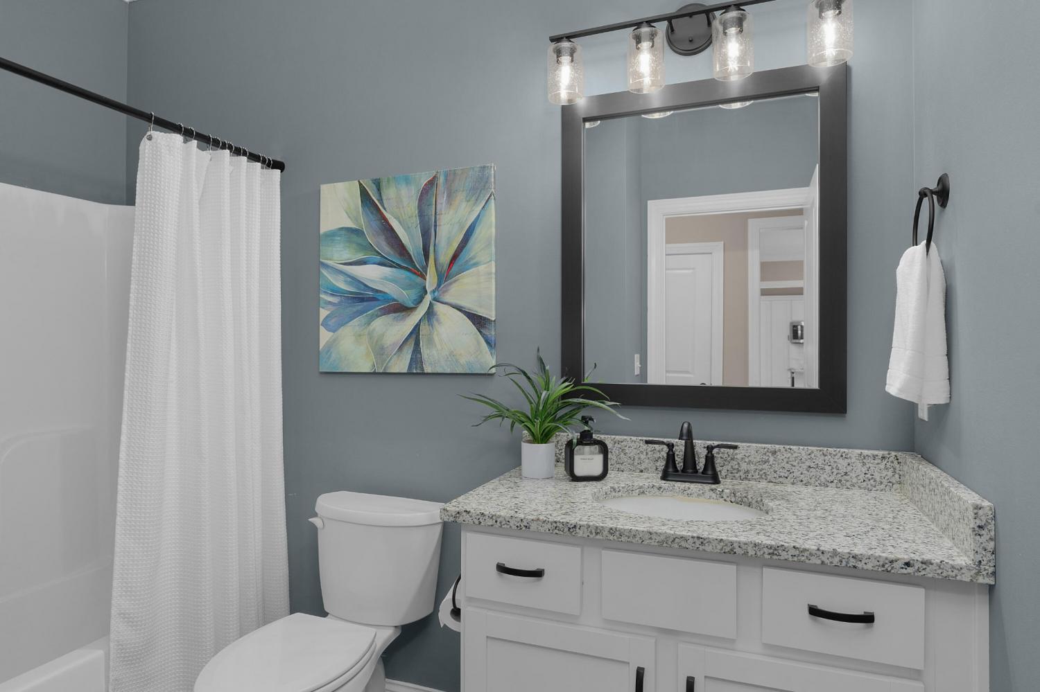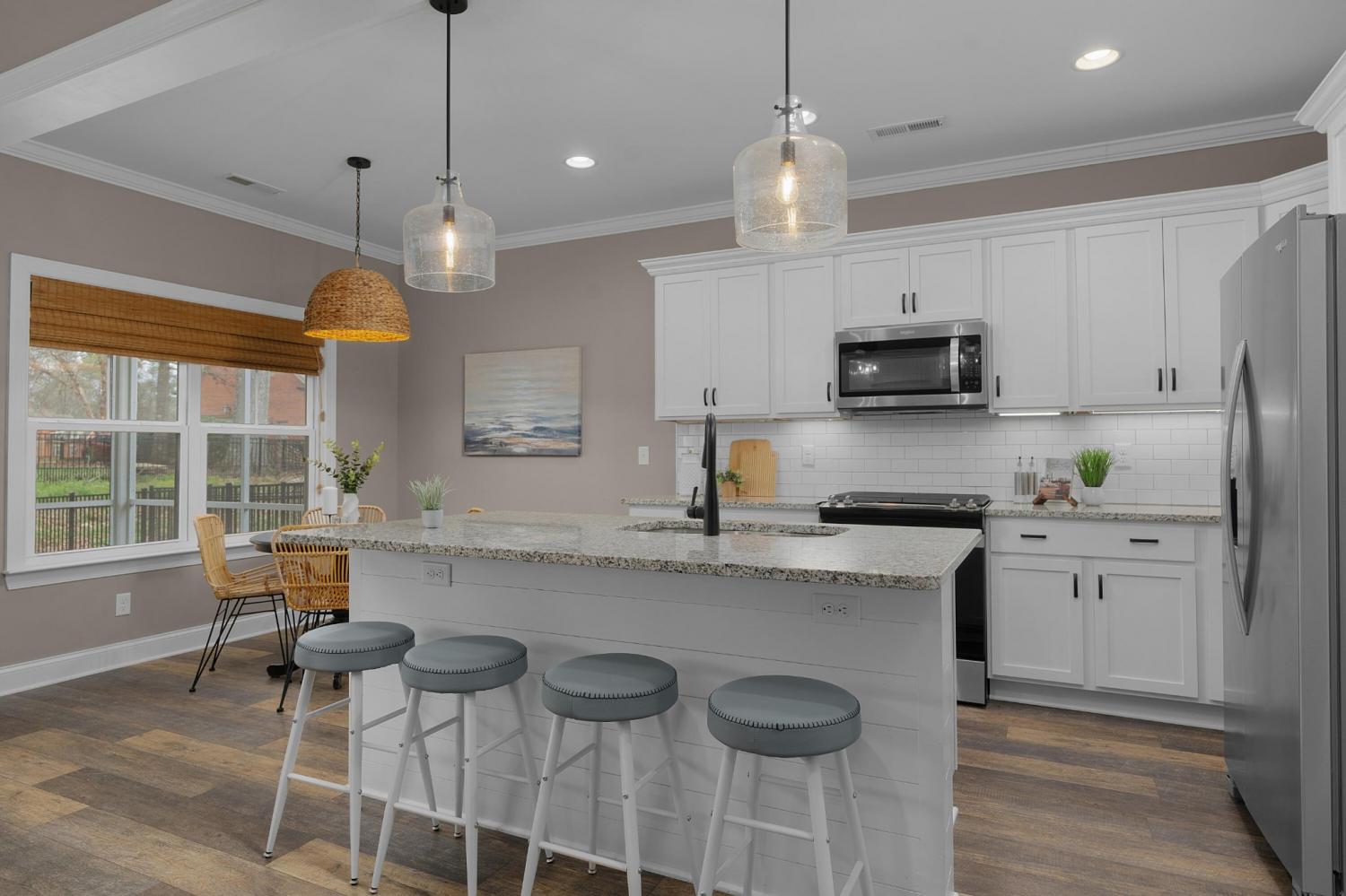 Great floor plan with many upgrades in the desirable Engel Park neighborhood! 4 bedroom, 3 full bath home with a guest bedroom on the main level, an open floor plan, a bonus room, a screened porch, level fenced back yard and a double garage! This home boasts great curb appeal with its Hardie and stone exterior and covered front porch, and you will love the interior finishes, including the LVP throughout, decorative and recessed lighting, window shades, granite countertops and plenty of storage. Entry to the home is via the dedicated foyer which has an enlarged doorway to the formal dining room on the right and the great room, kitchen and breakfast area just ahead. The kitchen has a center island with glass pendants, under-cabinet lighting, stainless appliances, a pantry and is open to the breakfast area which is currently being utilized as a keeping area. The great room has a gas fireplace and access to the screened porch which is perfect for everyday living and indoor to outdoor entertaining. The guest bedroom, full guest bath, mudroom with built-in bench and the garage round out this level. Head upstairs where you will find a bonus room with walk-out attic storage or expansion room, the laundry room, and 3 additional bedrooms and 2 full baths including the primary suite which has a walk-in closet and a private bath with a dual vanity, soaking tub, and a separate shower with tile and glass surround. All of this, and the neighborhood offers a pool and cabana with an outdoor fireplace, a future dog park and sidewalks in a super convenient location close to the Council Fire Golf Club, schools, parks, shopping, restaurants and medical facilities, so please call for more information and to schedule your private showing today. Information is deemed reliable but not guaranteed. Buyer to verify any and all information they deem important.
