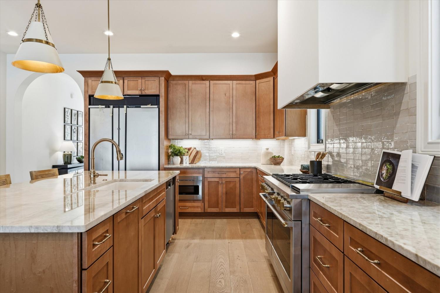 Discover this exceptional 6-bedroom residence, perfectly situated within walking distance of McCabe Golf Course, offering a lifestyle that blends refined comfort, everyday convenience, and timeless charm. Thoughtfully designed with warm earth tones throughout, the interiors feel both custom and inviting, creating a space that immediately feels like home. This home offers a full whole-house water filtration system providing clean, high-quality water throughout. The system supplies every area of the property, including the kitchen, all bathrooms, washers, and dryers. The flexible main-level bedroom provides the perfect opportunity for a private office, guest suite, or creative studio. At the heart of the home, the kitchen is a true showpiece, equipped with a high-end JennAir refrigerator paired with a Monogram gas oven, featuring Taj Mahal quartzite countertops throughout, with custom cabinet panels for the dishwasher and refrigerator scheduled for installation, ensuring a high-end finish. Designed for seamless indoor-outdoor living, the home offers three expansive decks for entertaining, including a screened deck directly off the main living areas with sliding glass doors—ideal for hosting gatherings or enjoying peaceful evenings year-round. Multiple walk-out patios further enhance the private outdoor retreat. Spa-inspired bathrooms elevate everyday living, highlighted by a floating vanity with a scalloped edge backsplash in the half bath and a luxurious steam shower in the primary bathroom, creating a true sanctuary. From your front door, enjoy walkable access to beloved local favorites such as Edley’s BBQ, Star Bagel, and Park Café, or connect with neighbors in this welcoming community. With quick access to the Greenway, outdoor recreation and daily conveniences are always just steps away. This home delivers the best of urban living while offering the serenity of thoughtful design, elevated finishes, and abundant outdoor entertaining spaces.