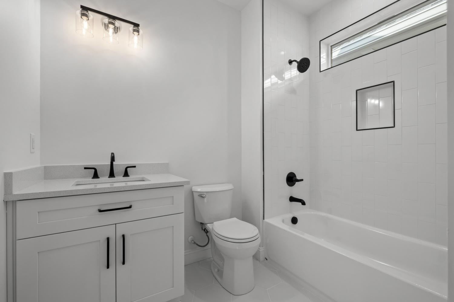 Brand new construction with a crisp, modern edge—full brick exterior, clean rooflines, and an oversized 2-car garage, all set behind a raised entry with sleek iron railings. Inside, wide-plank hardwoods and tall ceilings lead into an open, airy main level with recessed lighting and a thoughtful layout that actually lives well. The kitchen is the centerpiece: quartz counters, gray cabinetry with matte black hardware, stainless appliances, a farmhouse sink, and plenty of prep space for everyday meals or entertaining. A built-in drop zone/mud bench keeps the entry organized, while upstairs you’ll find generous bedrooms including a standout primary suite with vaulted ceiling, feature wall, and a spa-style bath—double vanity, large tile shower with frameless glass, and an oversized walk-in closet. Out back, enjoy a fenced yard with a new deck—private, low-maintenance, and ready for grilling, pets, or play. Move-in ready and built with the finishes buyers want right now. Built with 2x6 exterior stud construction and backed by a 1-year builder’s warranty. Less than 4 miles to all things downtown.