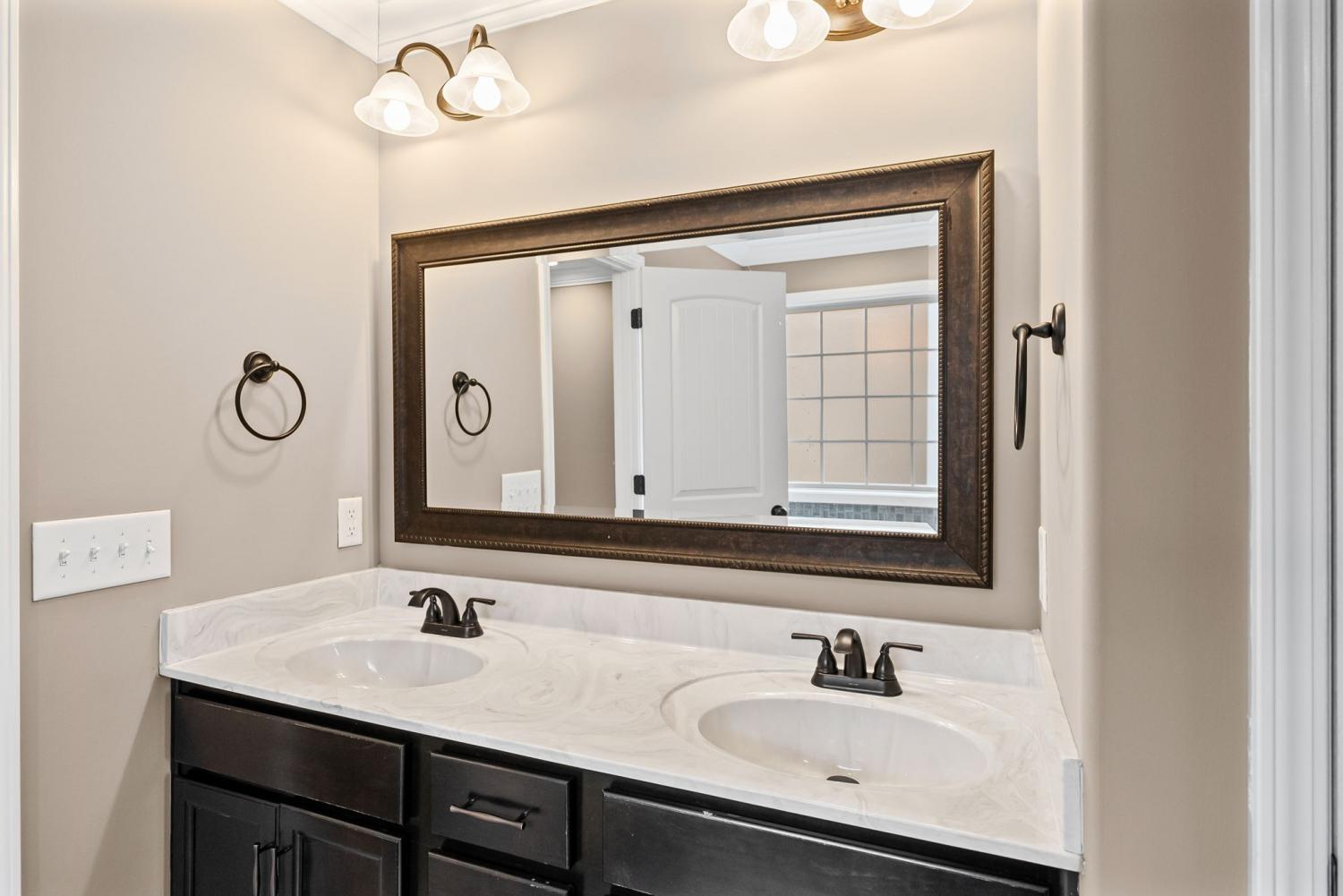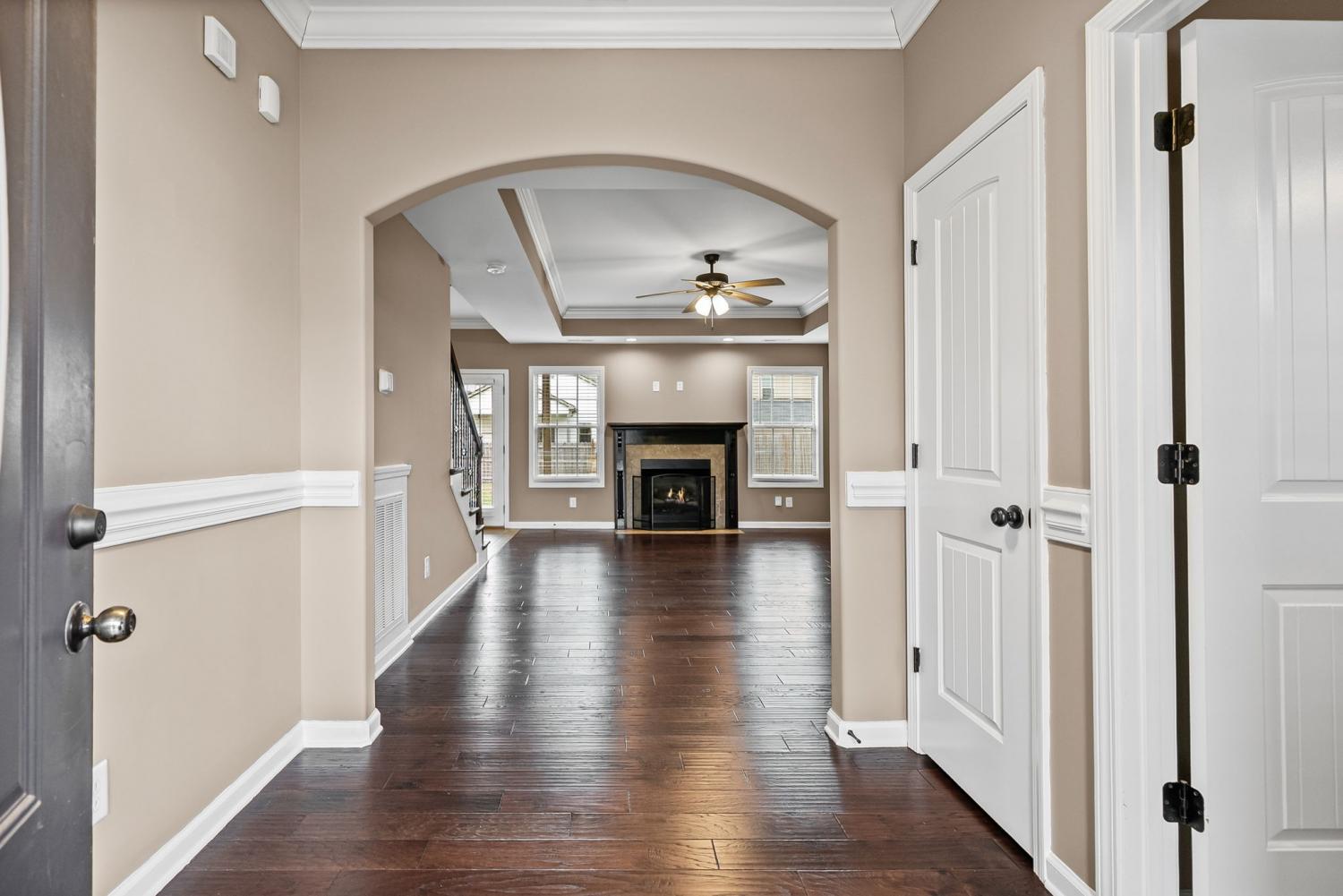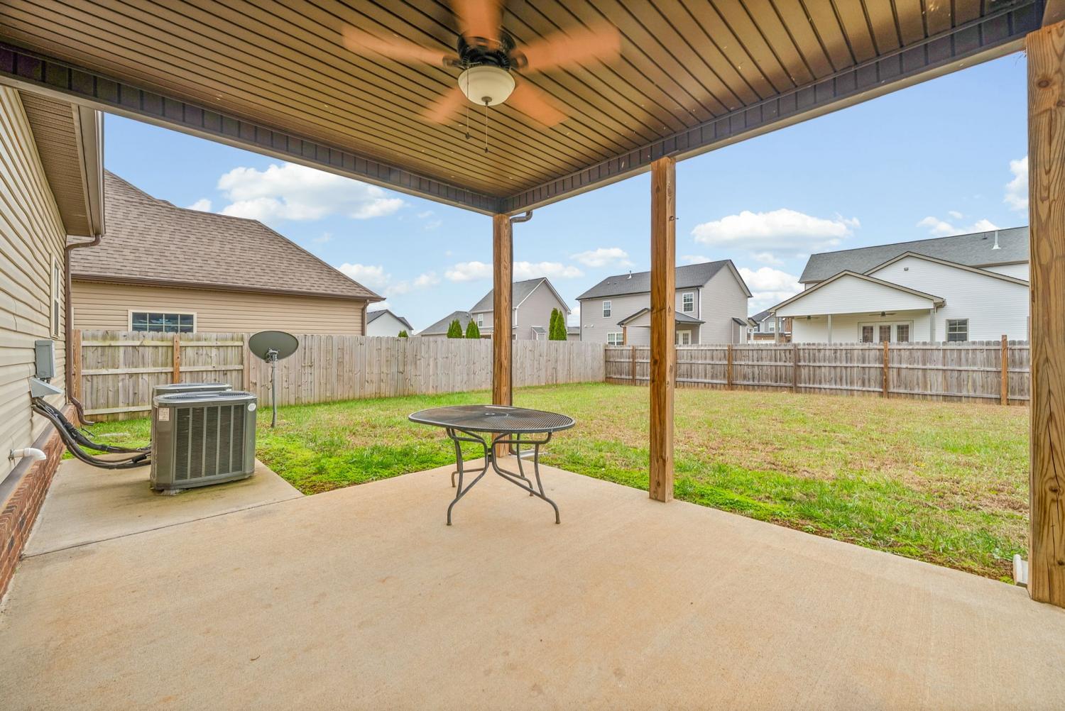 Welcome home to this well maintained four bedroom, two and a half bath home located just minutes from restaurants, shopping, I-24, and more! This inviting floor plan features a large living room with a cozy fireplace and engineered hardwood flooring! The open kitchen is perfect for entertaining, offering granite countertops, stainless steel appliances including double ovens, a center island, and a spacious pantry! The primary suite provides a relaxing retreat with a full bath featuring a double vanity, jetted tub, and tiled shower! All guest rooms are generously sized with excellent closet space! Enjoy outdoor living with a covered patio and fenced yard, and don’t miss the added convenience of a three car garage!