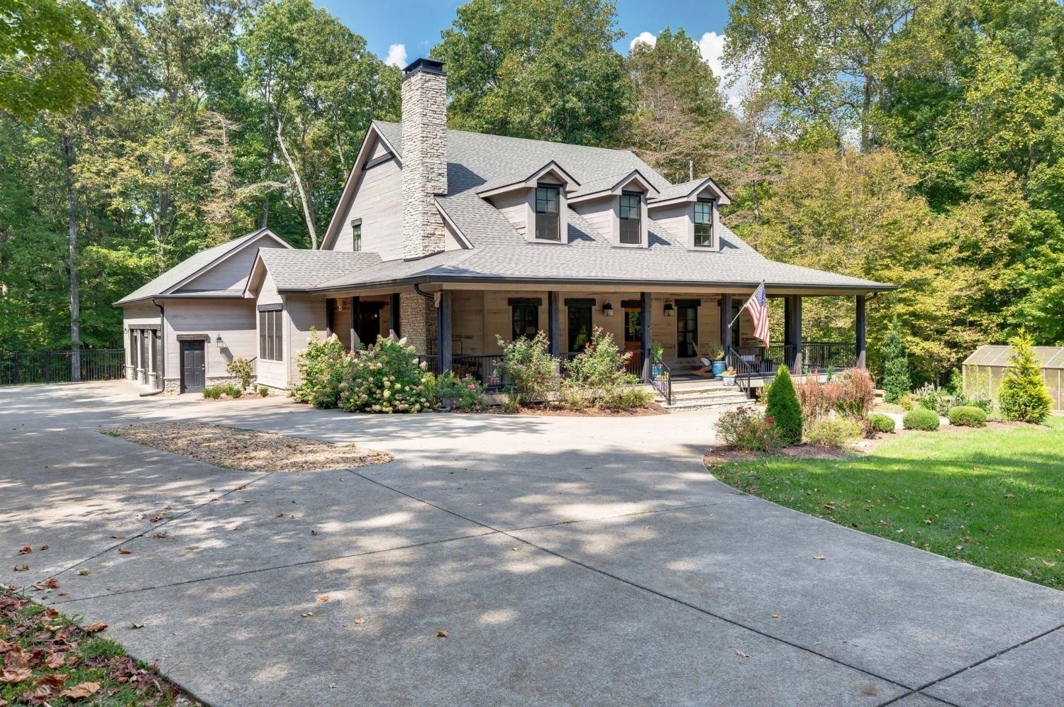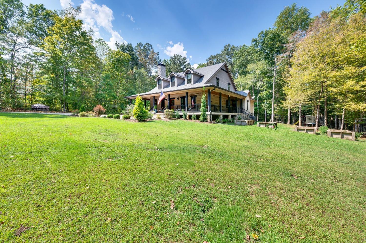 Escape to this serene and private farmhouse just 30 minutes from downtown Nashville set on over 2 acres. A spacious 6-bedroom, 4-bathroom family home with a dreamy wraparound porch, a 3-car garage, and a fenced backyard for children and pets to safely play. This property backs up to a private wooded land that will not be developed. Just minutes from highly ranked Burns Elementary and Middle schools and minutes from the beautiful hiking trails of Montgomery Bell State Park. A whole-home water filtration system. Built-in speakers to enjoy music whole-home entertaining. You won't want to miss this truly special home on one of the most beautiful and desirable streets in Dickson County.