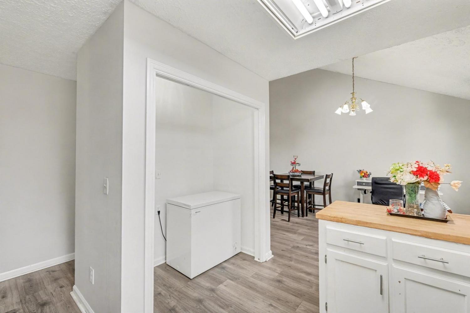 Charming 3-bedroom, 1.5-bath home featuring a welcoming covered front porch and functional layout. The living area flows seamlessly into an eat-in kitchen with a generous pantry, ideal for everyday living. Two front bedrooms offer flexibility for children, guests, or a home office. The spacious primary bedroom includes a convenient half bath. A versatile flex space—currently used as a laundry room—offers the potential to be reconfigured as a fourth bedroom, office, or hobby space. The large backyard provides plenty of room for outdoor enjoyment, gardening, or future expansion. A great opportunity to enjoy comfortable living in Mount Pleasant.