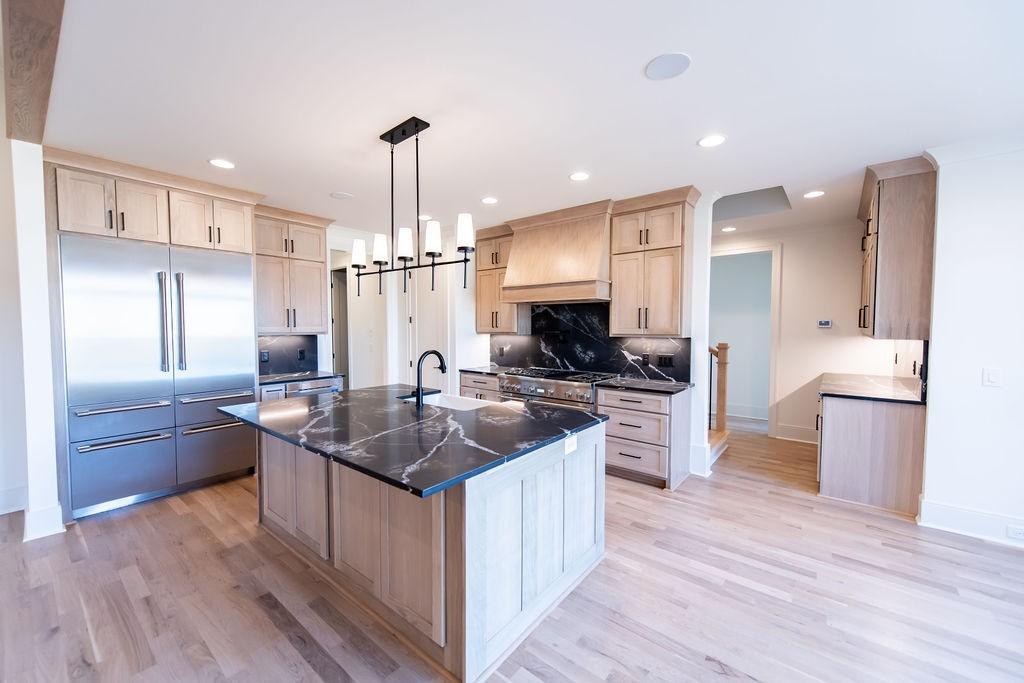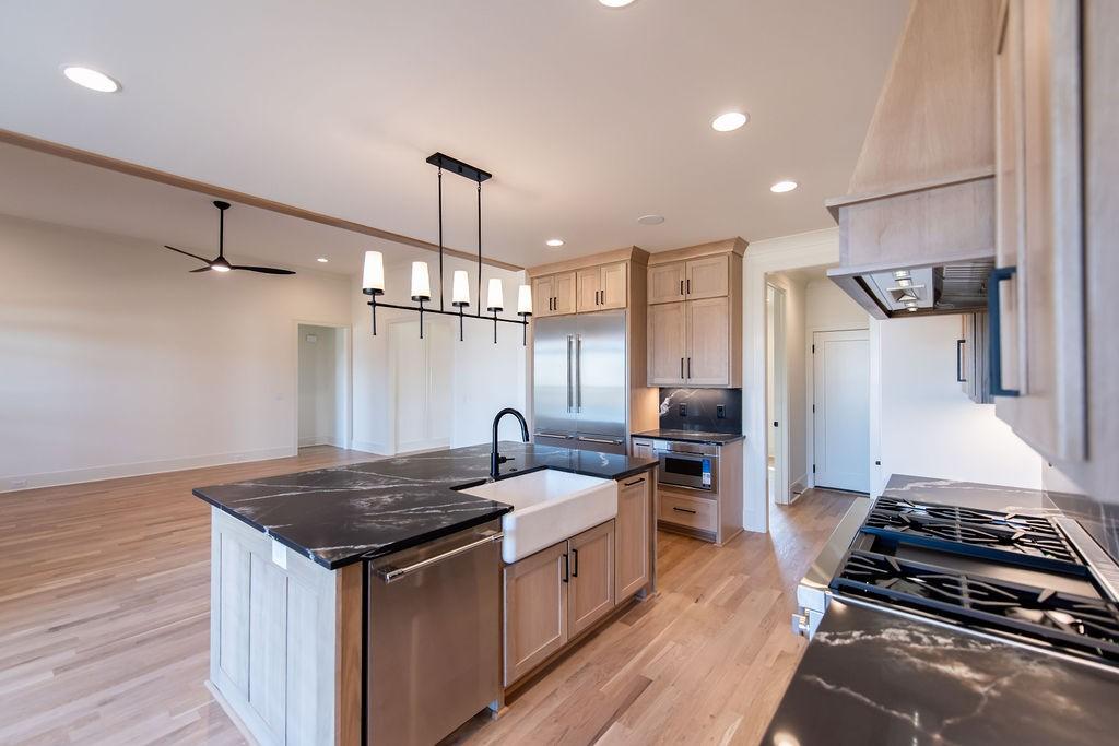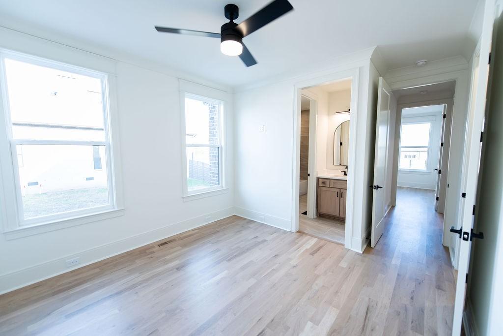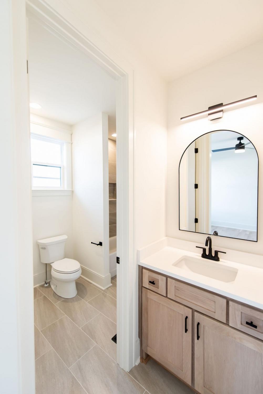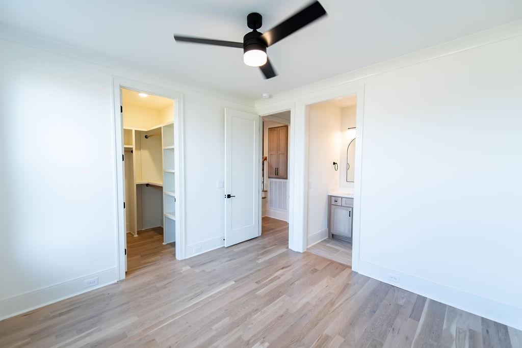 Stunning new construction in the sought-after Wright Farms community, situated on a spacious .59-acre lot. This thoughtfully designed home offers 5 bedrooms and 4 full baths, with 4 bedrooms conveniently located on the main level. The main living areas feature sand-and-finish hardwood floors and an open, light-filled layout ideal for everyday living and entertaining. The gourmet kitchen showcases custom white oak cabinetry, quartz countertops, a full-height backsplash, apron-front sink, and upgraded Thermador appliances. The spacious primary suite features a spa-like bath with freestanding soaking tub, tiled shower with double shower heads, body sprays, and rain can, plus a massive walk-in closet and double vanity with quartz countertops. Upstairs you’ll find an additional bedroom, full bath, spacious bonus room, and large walk-in attic storage. Additional highlights include epoxy-coated garage floors, a vaulted screened-in back porch, and beautifully finished front and side yard sod. A rare combination of craftsmanship, space, and modern finishes in Wright Farms—this home is a must-see.