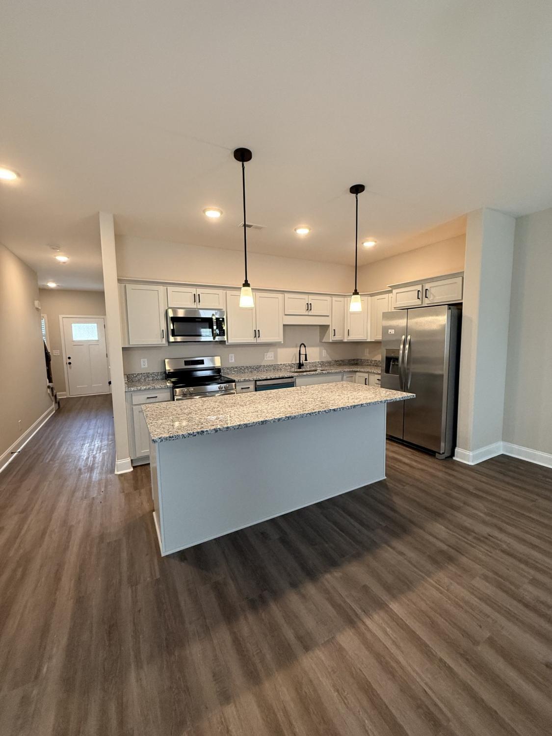 Super nice turn key townhome with 3 Bedrooms and 2.5 baths, Entry Foyer, LVT on the main floor, Granite Countertops, Kitchen Island with counter height breakfast bar, Farm Sink, Appliances include Refrigerator-Smooth Top Range-Dishwasher and Microwave, All Bedrooms upstairs to include 2 Full Baths and Laundry Area, Quartz countertops in Bathrooms, Black matte finishes, Blinds included on all windows, Patio with Privacy, One Car attached garage, This is an interior unit. Community Pool and Dog Park, Very convenient to Ft. Campbell, I-24 and the Mall, One year Builder Warranty provided.