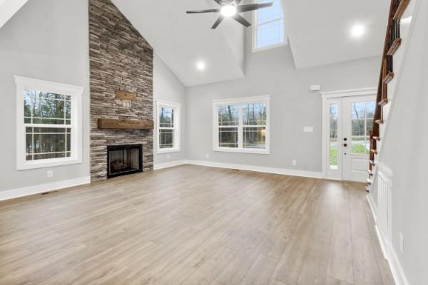 All pictures are example photos, but there’s time to make selections!. Welcome to your country retreat! Stunning Custom New Construction Home on 1.5 Acres with a three car garage. Enjoy the peace and privacy of country living with this beautifully designed custom home. With no city taxes, no HOA fees, and no restrictions, this property offers the ultimate in freedom and privacy. Step inside to an open-concept living area featuring a vaulted ceiling in the spacious great room, complete with a cozy fireplace and stunning views. The living room flows seamlessly into the gourmet kitchen, where you'll find an oversized island, custom dovetail cabinetry with soft-close drawers, built-in trash bins, there will be a custom wood hood above microwave, and high-end finishes like quartz countertops and a stylish tile backsplash.The main floor also includes a luxurious master suite with a decorative ceiling and an ensuite bath that boasts an extra-large 9' x 5' walk-in tile shower with a rain head, as well as double vanities. Upstairs, you’ll find a massive bonus room with three bedrooms and two full bathrooms. Take in the beauty of nature from the comfort of your covered deck, overlooking the expansive backyard. This home is perfect for those seeking a blend of luxury, space, and privacy in a prime location.