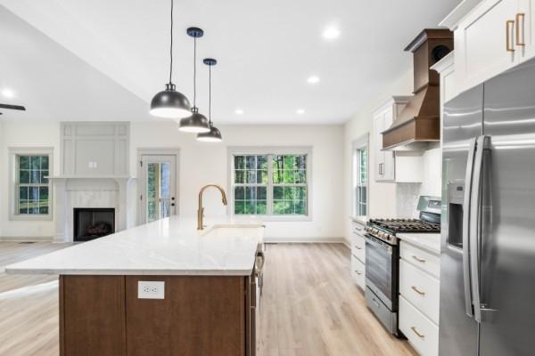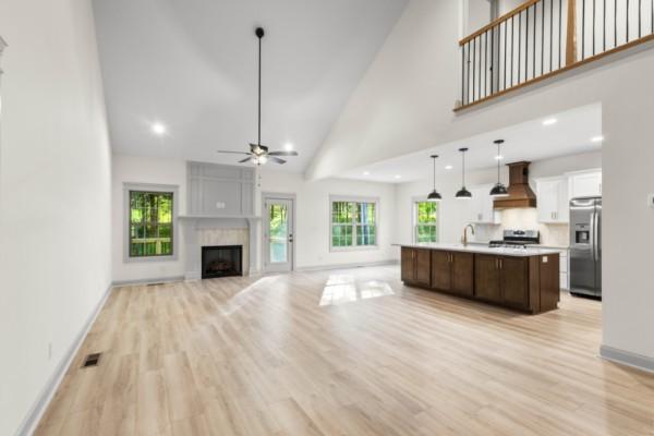 All pictures are example photos but there’s time to make selections!. Stunning Custom New Construction Home on 1.5 Acres. Enjoy the peace and privacy of country living with this beautifully designed custom home, nestled on 1.5 acres of serene land. With no city taxes, no HOA fees, and no restrictions, this property offers the ultimate in freedom and privacy. Step inside to an open-concept living area featuring a vaulted ceiling in the spacious great room, complete with a cozy fireplace and stunning views of the wooded backyard. The living room flows seamlessly into the gourmet kitchen, where you'll find an oversized island, custom dovetail cabinetry with soft-close drawers, built-in trash bins, and high-end finishes like quartz countertops and a stylish tile backsplash. A large wooden vent hood enhances the charm, while the corner butler’s pantry with small appliance outlets and a microwave offers added convenience. The main floor also includes a luxurious master suite with a decorative ceiling and an ensuite bath that boasts an extra-large 9' x 5' walk-in tile shower with a rain head, as well as double vanities. Bedrooms 2 and 3 are conveniently located on the main level, along with a second full bathroom. Upstairs, you’ll find a massive bonus room, ideal for a media room, playroom, or home office, along with a spacious 4th bedroom and another full bathroom. Take in the beauty of nature from the comfort of your covered deck, overlooking the expansive backyard. This home is perfect for those seeking a blend of luxury, space, and privacy in a prime location.