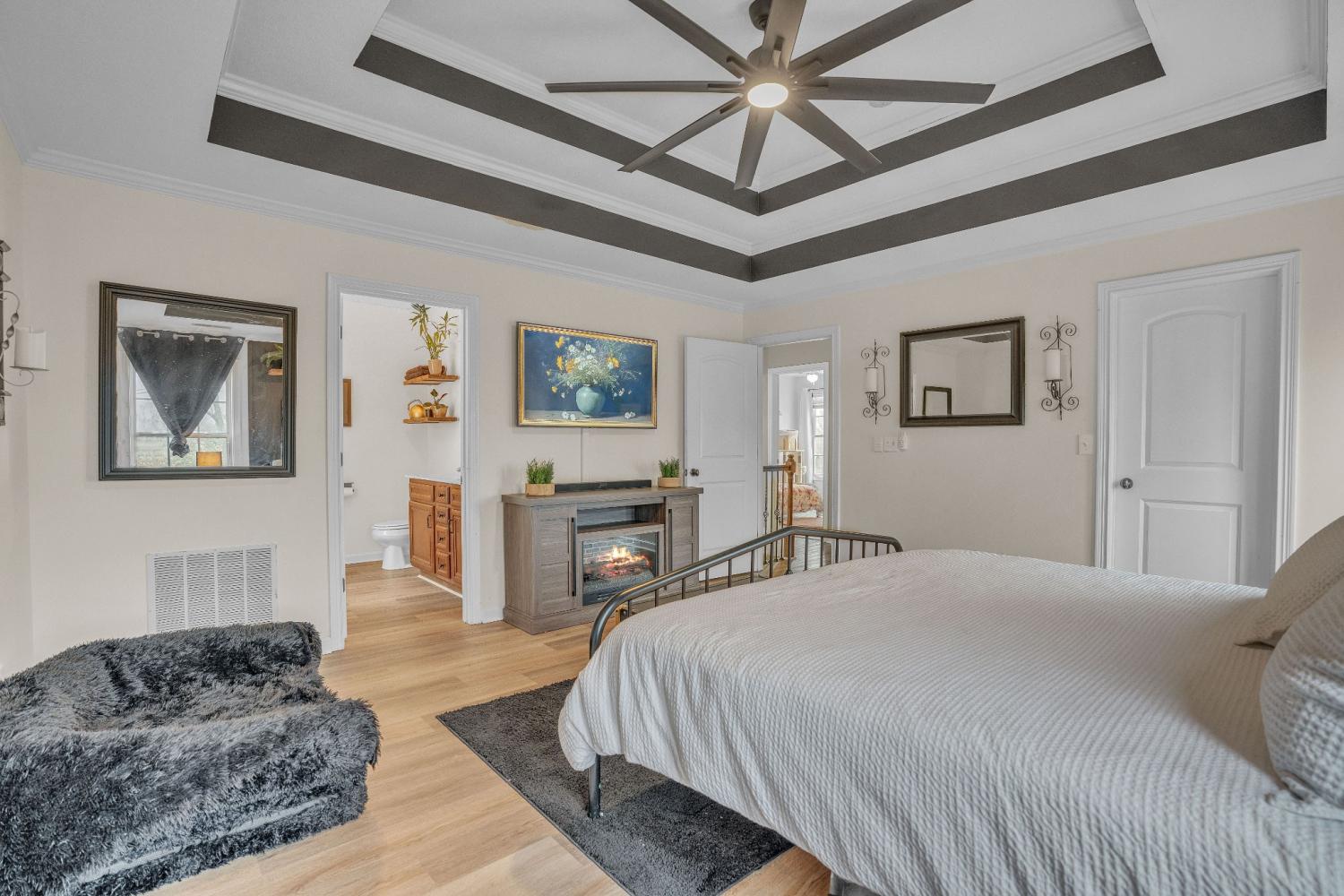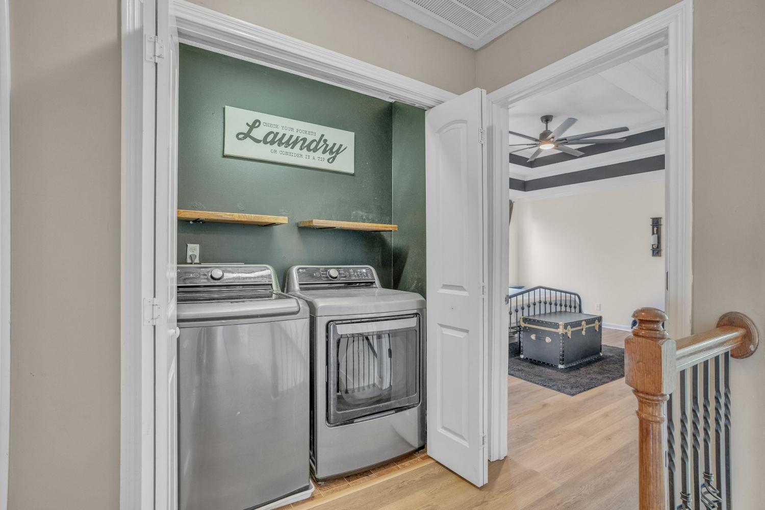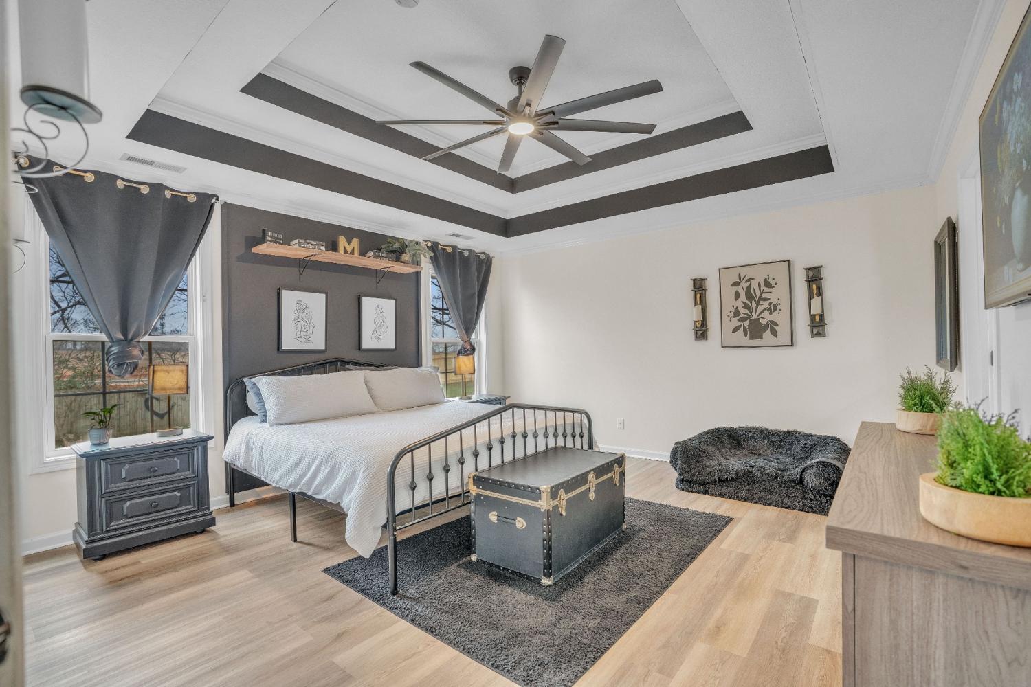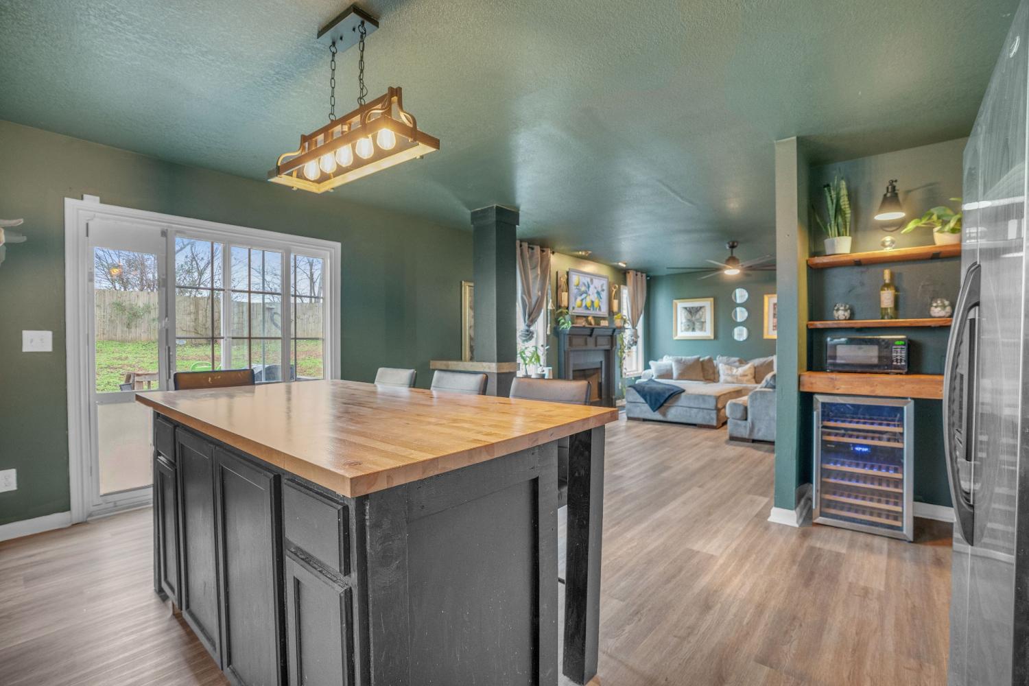 Welcome to 1426 Bruceton Drive - a meticulously updated 4 bdrm, 2.5 bath home. This property has been completely transformed with brand new flooring throughout, fresh paint, custom kitchen finishes, and a 3 yr old HVAC system. The heart of this home is the spacious kitchen featuring a large custom eat-in island perfect for morning coffee, homework sessions, or entertaining guests. Stainless steel appliances, ample cabinet storage, and modern countertops create a functional workspace that's as stylish as it is practical. Whether you're meal prepping for the week or hosting game day, this kitchen delivers. The main living area flows seamlessly from kitchen to living room, creating an open concept layout ideal for family time and entertaining. A lot of natural light flood the space, and the thoughtful floor plan ensures everyone has room to spread out without feeling cramped. New flooring throughout the main level and bedrooms elevates the entire space with a clean, modern aesthetic. Upstairs, the primary bedroom offers a spacious layout with a large walk-in closet and a private en-suite bathroom featuring a soaking tub and separate shower. This is your escape at the end of the day. 3 generously sized secondary bedrooms provide flexibility for kids, guests, home office, or workout space. 2 of the bedrooms share a convenient Jack-and-Jill walk-in closet - a smart design feature that maximizes storage while maintaining privacy. Fresh carpet on the stairs adds comfort and a polished look throughout the upper level. Step outside to a welcoming front porch perfect for morning coffee or watching the neighborhood come to life. The fully fenced backyard offers privacy and security, ideal for pets, kids, or simply enjoying your outdoor space. You're minutes from Fort Campbell gates, top-rated schools, plus major shopping, dining, and entertainment. Easy highway access. Schedule your showing today!