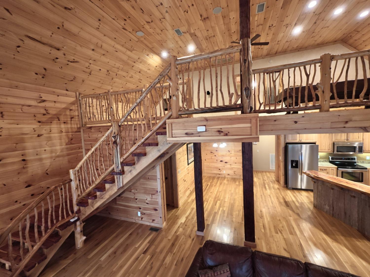 Experience timeless craftsmanship and modern security on this stunning Midwestern-style estate, set on more than 17 picturesque acres just minutes from I-840, I-24, and approximately 30 minutes to Nashville International Airport (BNA). Anchored by an impressive 22-foot stone fireplace, the home blends rustic elegance with true artisan detail. Hand-hewn log support beams, custom cedar steps, spindles, and banisters crafted from trees harvested on the property, and warm natural textures create an atmosphere reminiscent of a luxury lodge. Designed for peace of mind, the residence features a reinforced safe room rated for winds up to 350 mph, secured with a high-grade vault door, offering unparalleled protection. Outdoors, the property unfolds into a natural haven—complete with a spring-fed pond, classic barn, and a dedicated shooting lane ideal for recreation or training. An additional rental home included with the property provides income potential, guest house or an additional building site with septic already in place. With over 17 acres of gently rolling land, wooded privacy, and open pasture, this estate provides the perfect balance of privacy and seclusion with convenience in the heart of Middle Tennessee. A rare opportunity to own a hand-crafted retreat with character, security, and limitless possibilities. Shown by appointment only to qualified and approved buyers.