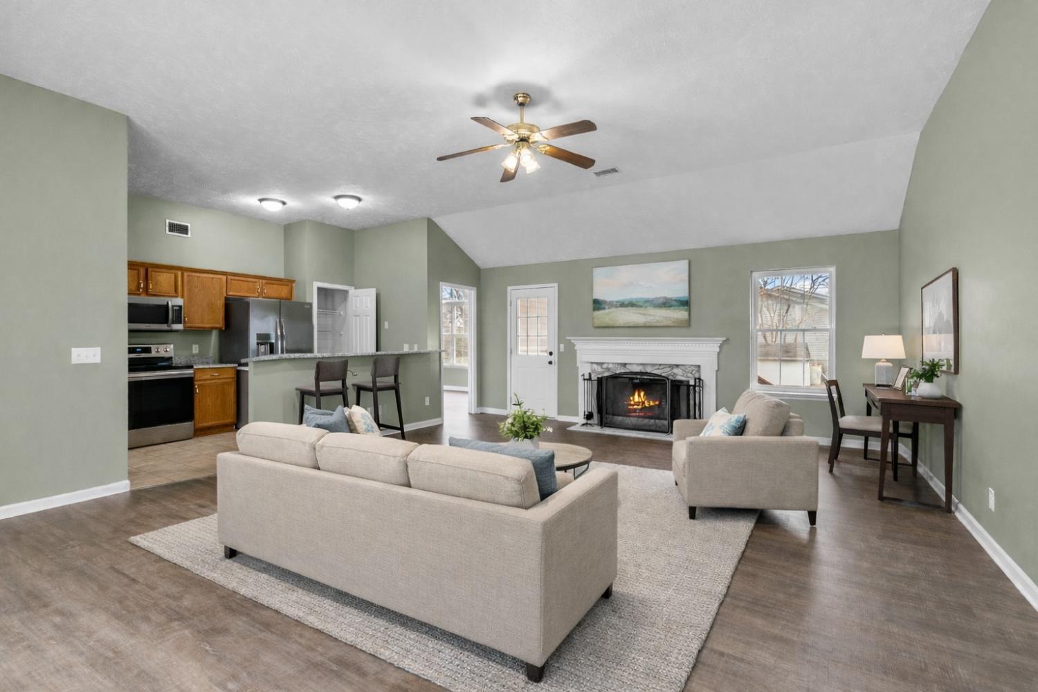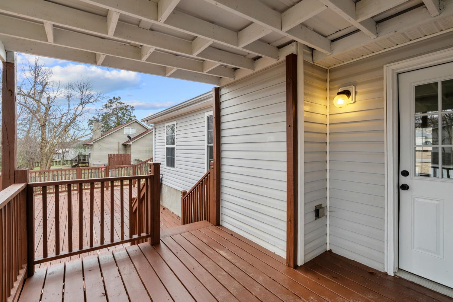 Move in Ready - Close to Lake! Beautiful 3-bedroom home offering the ease of main-level living and stylish updates. Step inside to brand-new luxury vinyl flooring that flows seamlessly through most of the main living areas, complemented by a bright kitchen featuring stainless steel appliances and new granite countertops and new refrigerator. The spacious layout includes a large bonus room, perfect for a work out room, media room, or game room. Enjoy outdoor living year-round with a covered deck plus two expansive upper and lower decks—ideal for entertaining, relaxing, or hosting gatherings. This home blends comfort, functionality in a setting designed for both everyday living and special occasions.