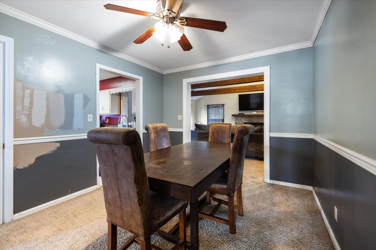 3 bedroom, 2 bath home offering 2,212 square feet in Bon Air Estates. This partially bricked property features a living room with fireplace, a formal dining room, and a functional layout with multiple living areas. A large den with an additional fireplace provides flexible space for everyday living, entertaining, or a home office. The partially finished basement adds extra square footage that can be used for storage, hobbies, or future improvements. Detached two car garage offers additional parking and storage options. This property presents an opportunity for a buyer ready to make updates and add finishing touches over time. Located in an established neighborhood with convenient access to local amenities. Cash or conventional financing only. Property is being sold as is.