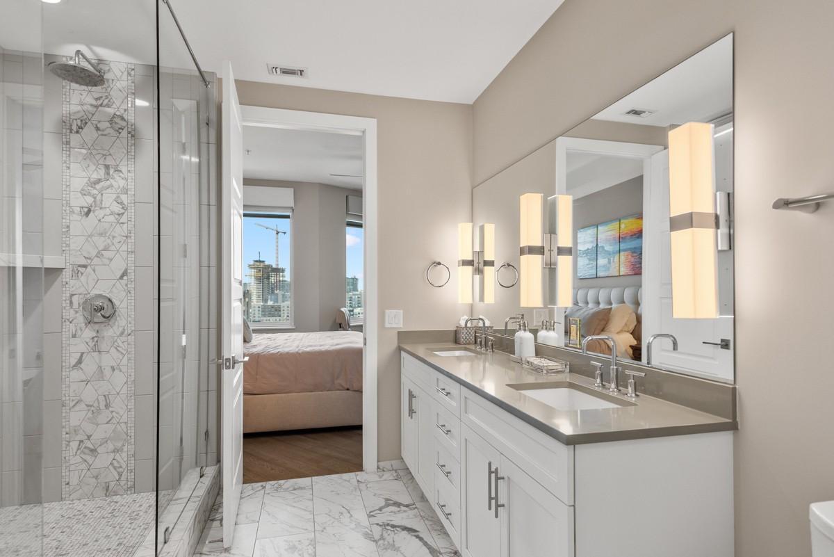 Luxury Amenities & Exceptional Convenience in the Heart of Nashville: Experience elegance at its finest in this exclusive boutique high-rise offering just 71 private residences. Designed for those who value quiet sophistication paired with world-class access, this premier downtown address features 24/7 monitored security while just steps from Broadway, Bridgestone Arena, Nissan Stadium, and the city’s best dining and entertainment - only 7 miles from Nashville International Airport. This stunning residence showcases refined designer finishes, floor-to-ceiling windows, and a private balcony with breathtaking views of Music City, delivering a rare front-row perspective to iconic cityscapes. High-end features include: Sonos hard wired sound system throughout, SubZero Fridge, wine refrigerator, warming drawer, smart lighting, automatic blinds powered by a Savant system, custom California closets throughout, gas tankless hot water heaters, and more! Blending luxury with seamless modern living the home also includes two deeded gated parking spaces conveniently located near the elevator, along with climate-controlled storage near the owner’s private entry. Residents enjoy an exceptional suite of resort-style amenities, including: 24/7 concierge and front desk service, rooftop lounges with panoramic views of downtown and the Cumberland River, resort pool, dog park, state-of-the-art fitness center, elegant party room with full kitchen, fully equipped guest suite, and business center with conference room! Furnishings negotiable