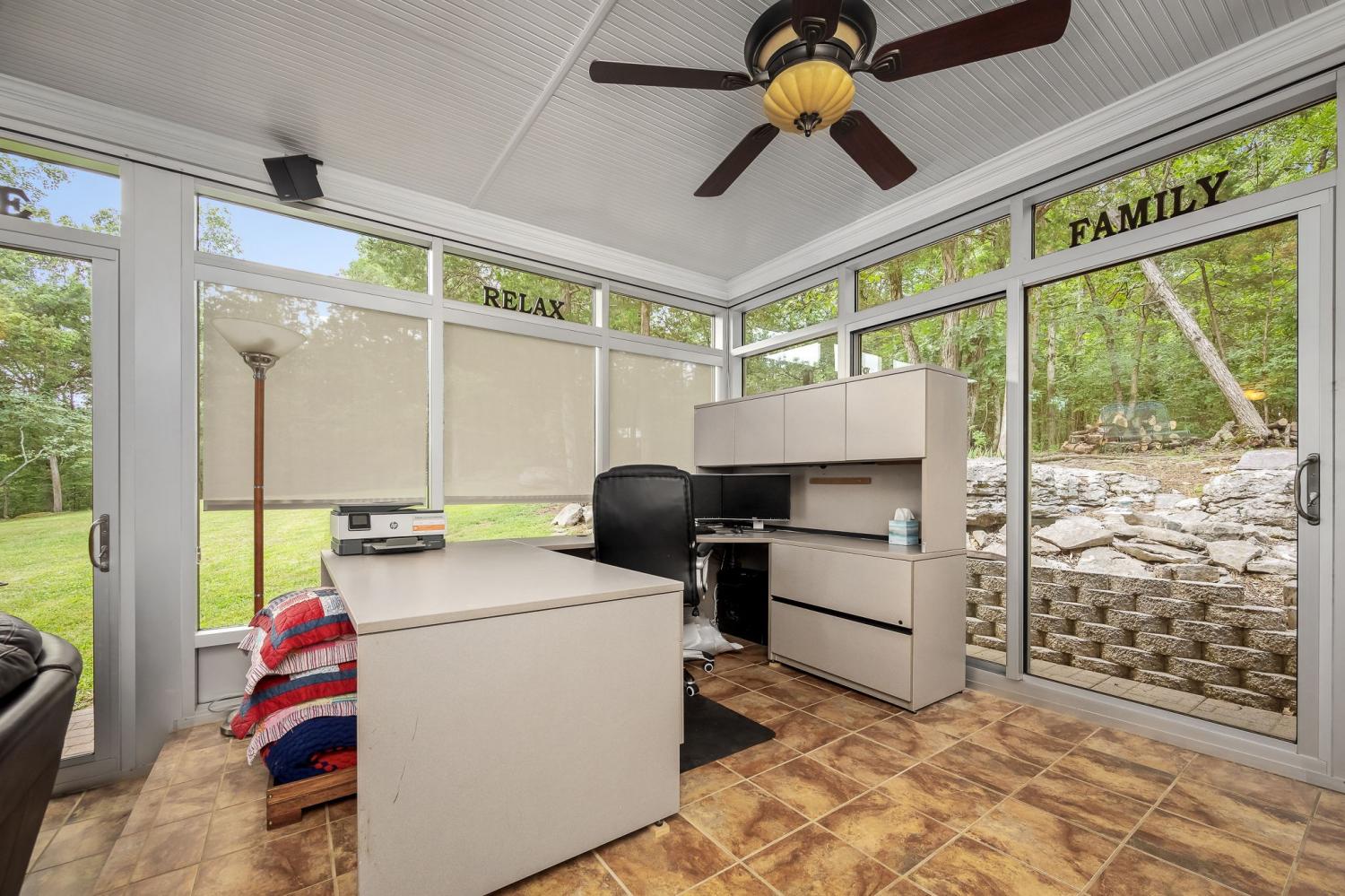 A rare opportunity to own a home inside the State Park — welcome to 5398 Woods Edge, where modern comfort meets unmatched outdoor living. - Unique Setting: Located within the State Park, with direct access to horse trails, hiking paths, and natural beauty all around. - Spacious Design: Open floor plan filled with natural light and soaring 21' ceilings, perfect for everyday living and entertaining. - Modern Comforts: Updated kitchen, inviting living areas, and a primary suite with spa-inspired bath. - Outdoor Lifestyle: View your private backyard surrounded by mature trees, ideal for gatherings or quiet mornings from the beauty of your sunroom with insulated glass panels. - Exceptional Extras: A 40x60 shop provides endless possibilities for storage, hobbies, or business needs, while the heated and cooled she‑shed offers a versatile retreat for work or relaxation. - Convenience & Tranquility: Enjoy the peace of park living while remaining close to local amenities. This property combines everyday functionality with extraordinary features and a one-of-a-kind location — a rare chance to live where Tennessee’s natural beauty is truly your backyard and you own over 3 acres!! Property surrounded by electronic fence for pets. Upgrades galore: Roof (2014), HAVA 2012, tankless water heater, propane heat & stone.