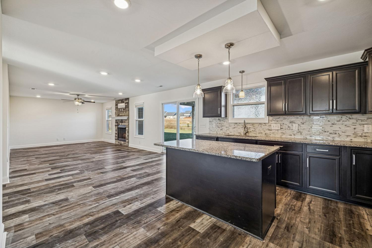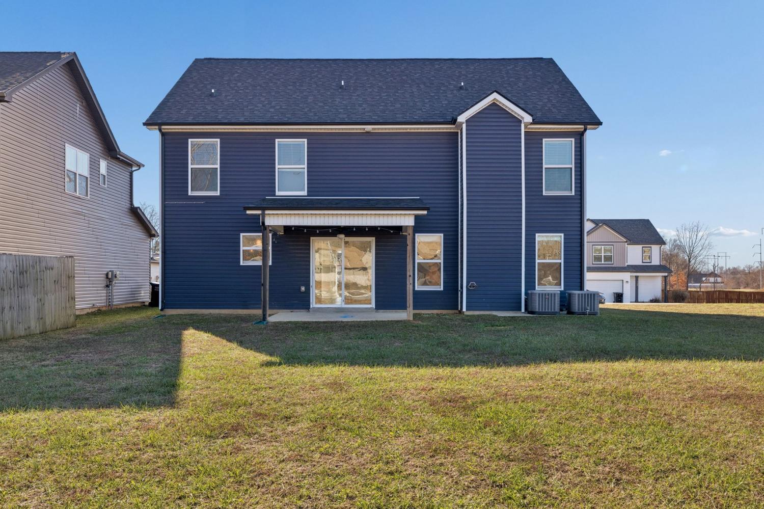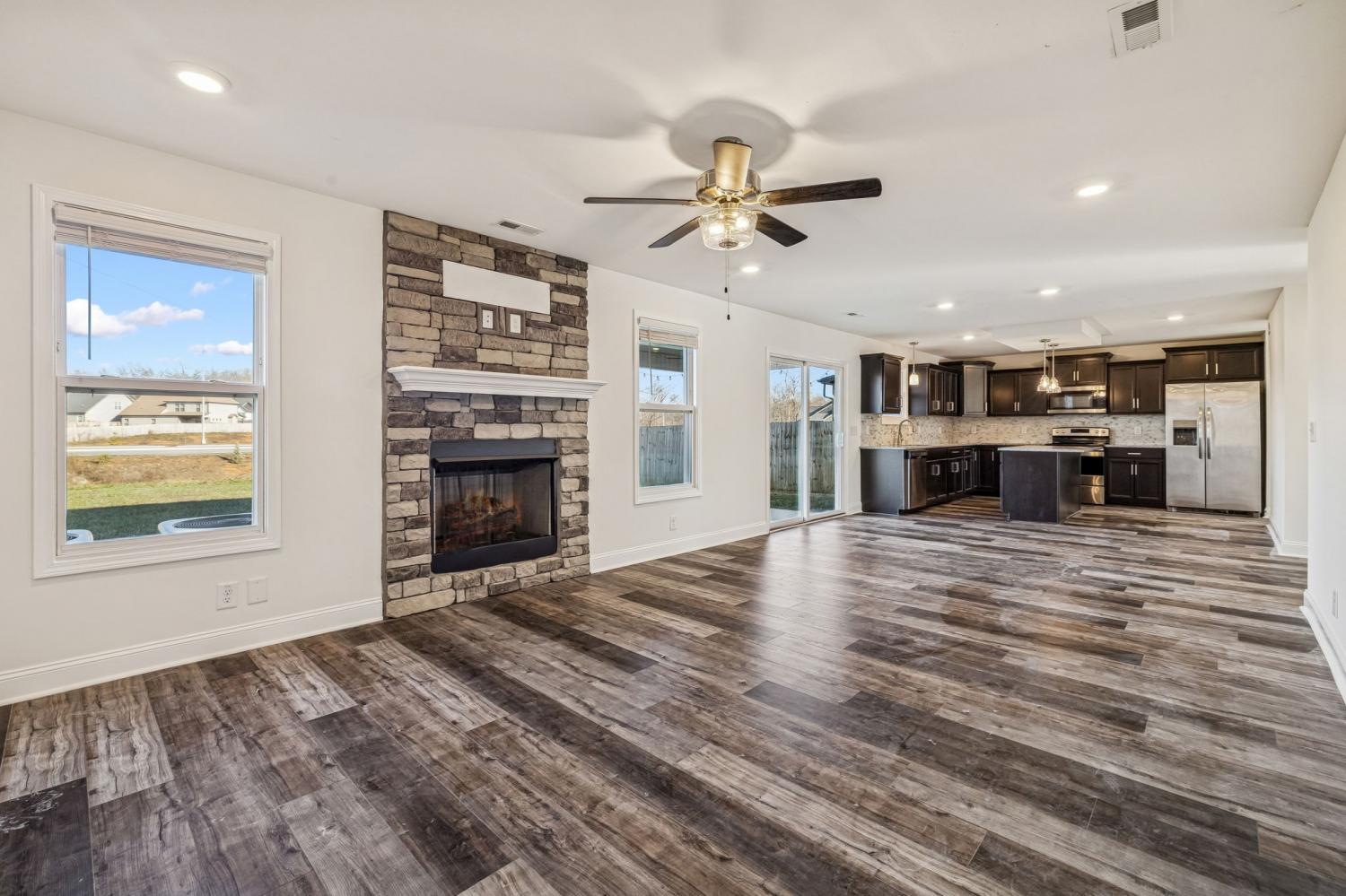 Move in ready! Stunning and nearly new, this beautiful 4-bed, 2.5-bath home offers approximately 2,437 sq ft of thoughtfully designed living space in the desirable Eagles Bluff subdivision. The covered front porch welcomes you into a light-filled open floor plan with a spacious living area and a stylish kitchen featuring ample cabinetry and a breakfast bar perfect for everyday living and entertaining. The primary suite features a private bath and generous closet space. Enjoy three additional bedrooms and a well-appointed secondary full bath. Hardwood-looking flooring and neutral finishes flow throughout the main level. Large windows bring in abundant natural light, and a cozy fireplace anchors the family room. The backyard provides plenty of outdoor space for relaxation or play. Located close to schools, shopping, dining, and Fort Campbell, this home blends comfort, modern updates, and location.