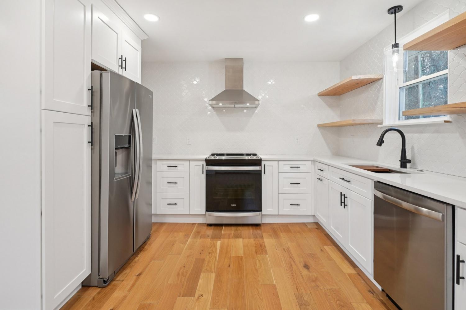 Fully Renovated - Perfect blend of classic character and modern charm in this 2-bedroom, 2-bathroom all-brick home. Thoughtfully updated, featuring warm oak-toned flooring that flows throughout an, open-concept layout. The kitchen boasts crisp white cabinetry, stone countertops, subway tile backsplash, stainless steel appliances and custom wood shelving. The primary suite offers a walk-in closet and ensuite featuring a glass-enclosed tile shower. The second bedroom offers easy access to an updated bathroom with new vanity and tub/shower combo. A versatile bonus room at the rear houses a convenient indoor laundry/utility area and leads to your a fully fenced yard with a spacious patio. Ideally located and move-in ready—schedule your tour today!