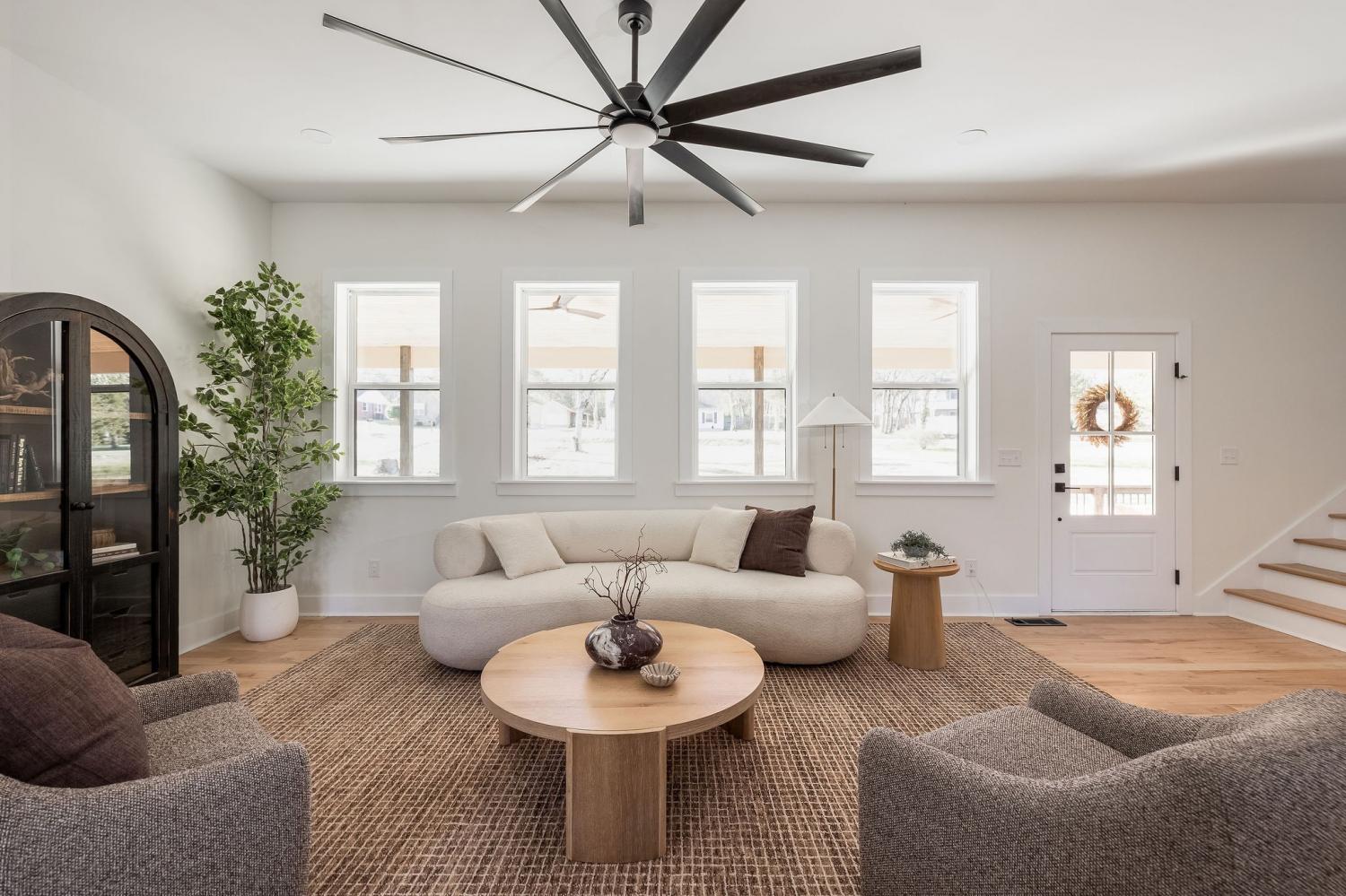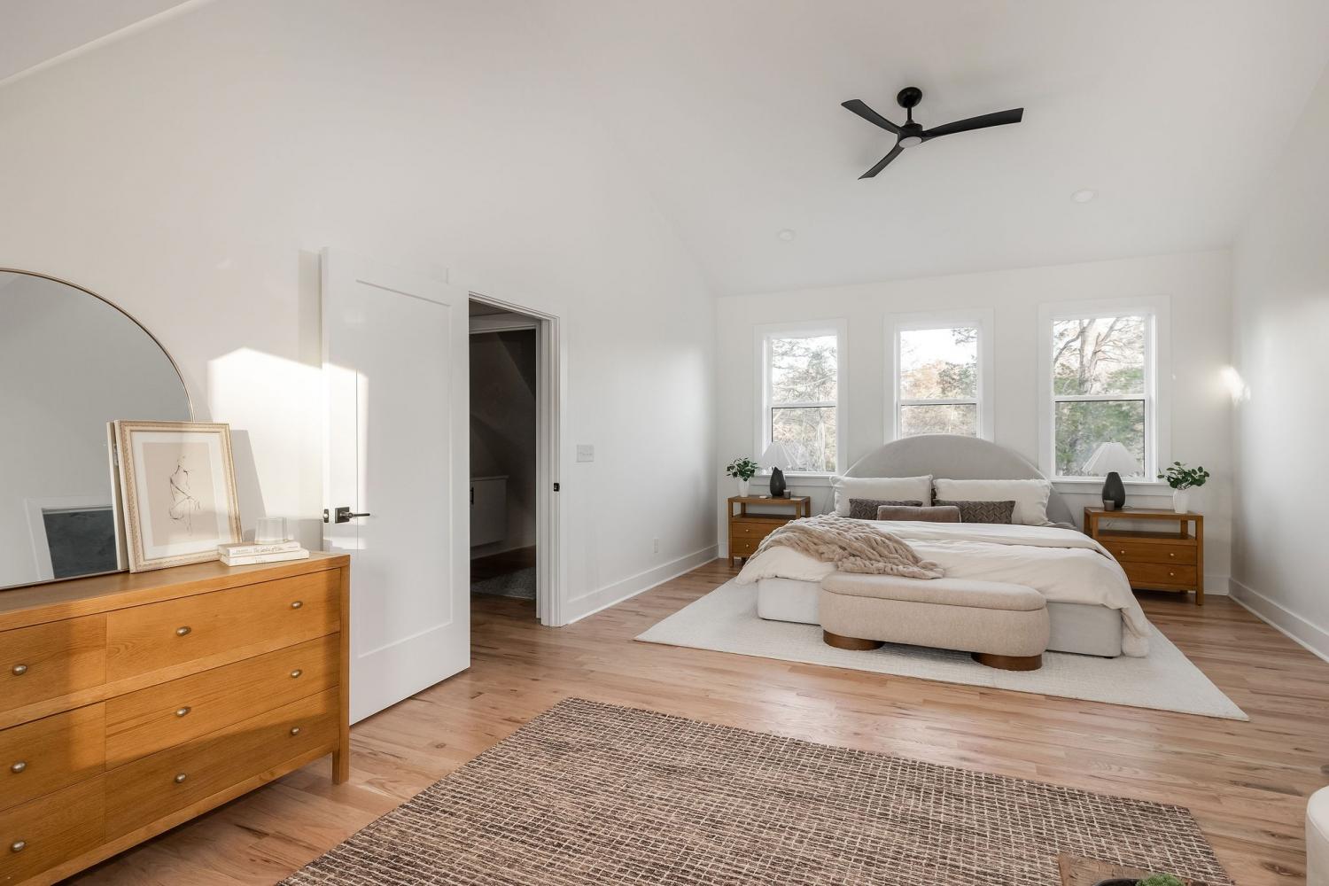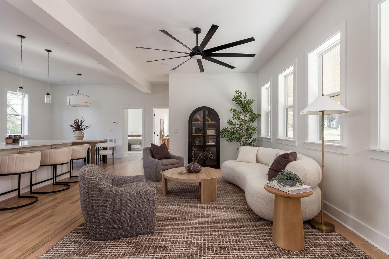 An immaculate OneToCrew design and build on a coveted street and pocket of Neelys Bend. Built from the foundation up, this home can be your sanctuary for years to come. The open living area and kitchen allow for easy entertaining, featuring a large island perfect for congregating and ample storage, stainless steel appliances, floor to ceiling cabinets, and easy access to al fresco dining on the deck. The secondary bedrooms share the soaring ceilings on this floor and custom built closets. Extra living space can be found downstairs, with a large den and media area that walks out to the backyard. An additional two secondary bedrooms, bathroom, and laundry room allow this floor to potentially serve as a suite or room to spread out. The showstopper is the primary suite that encompasses the entire second floor, finished with cathedral ceilings, natural light, soaking tub, double shower, and matching double closets. Off of the bedroom is a flex room that can serve as an office, nursery, or yoga room. Namaste. Finish your workout and step across the hall to the private primary laundry, complete with a half bath. All of this, tucked on the magical river neighborhood on the bend. With almost an acre of green space, creek, and soaring old growth trees, this is the craftsman meets farmhouse you have been waiting on, just in time for the fall colors to grace the view outside your new soaking tub.