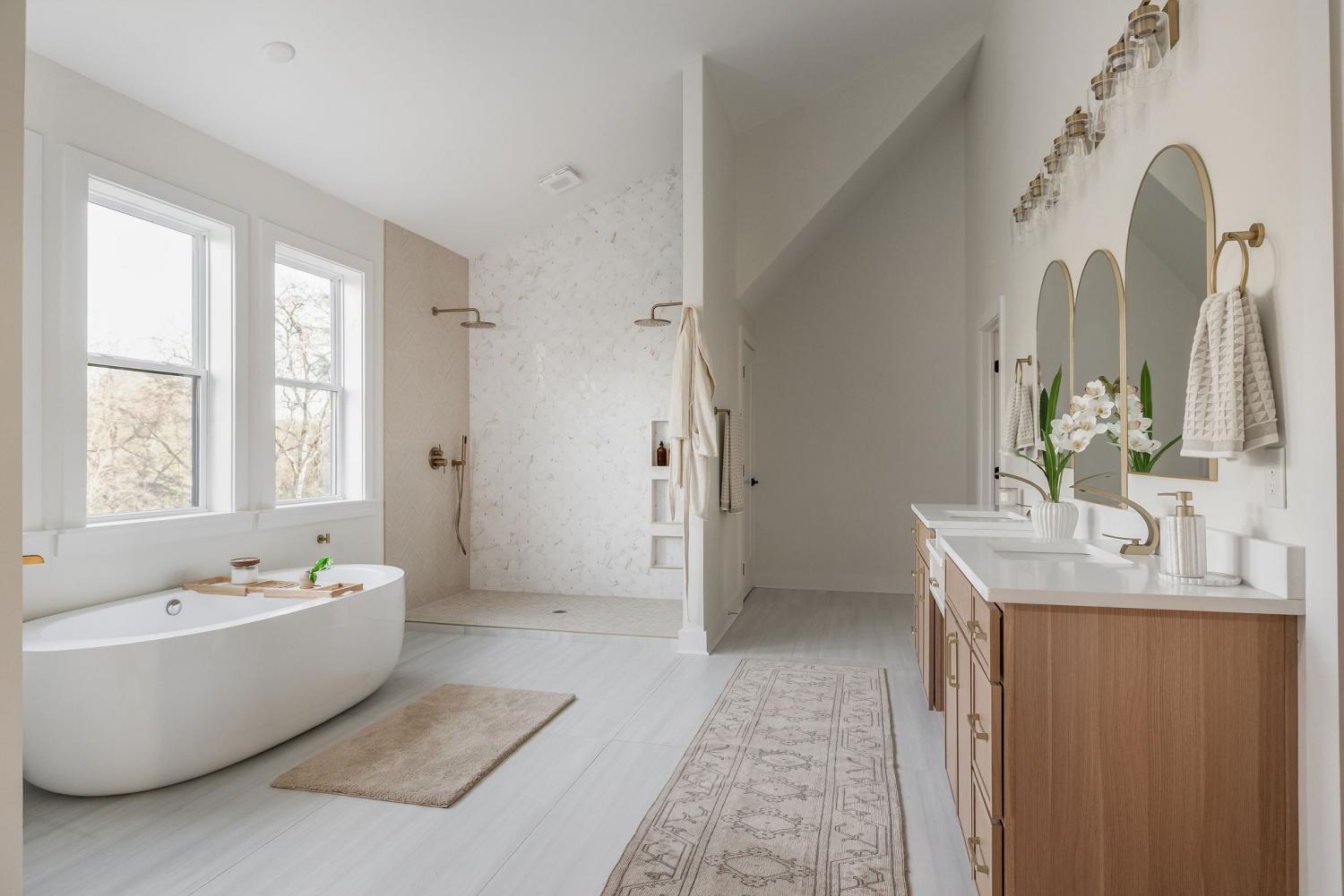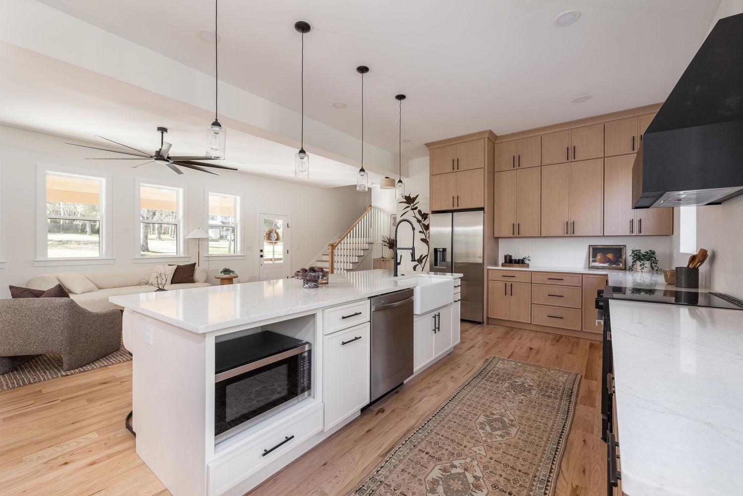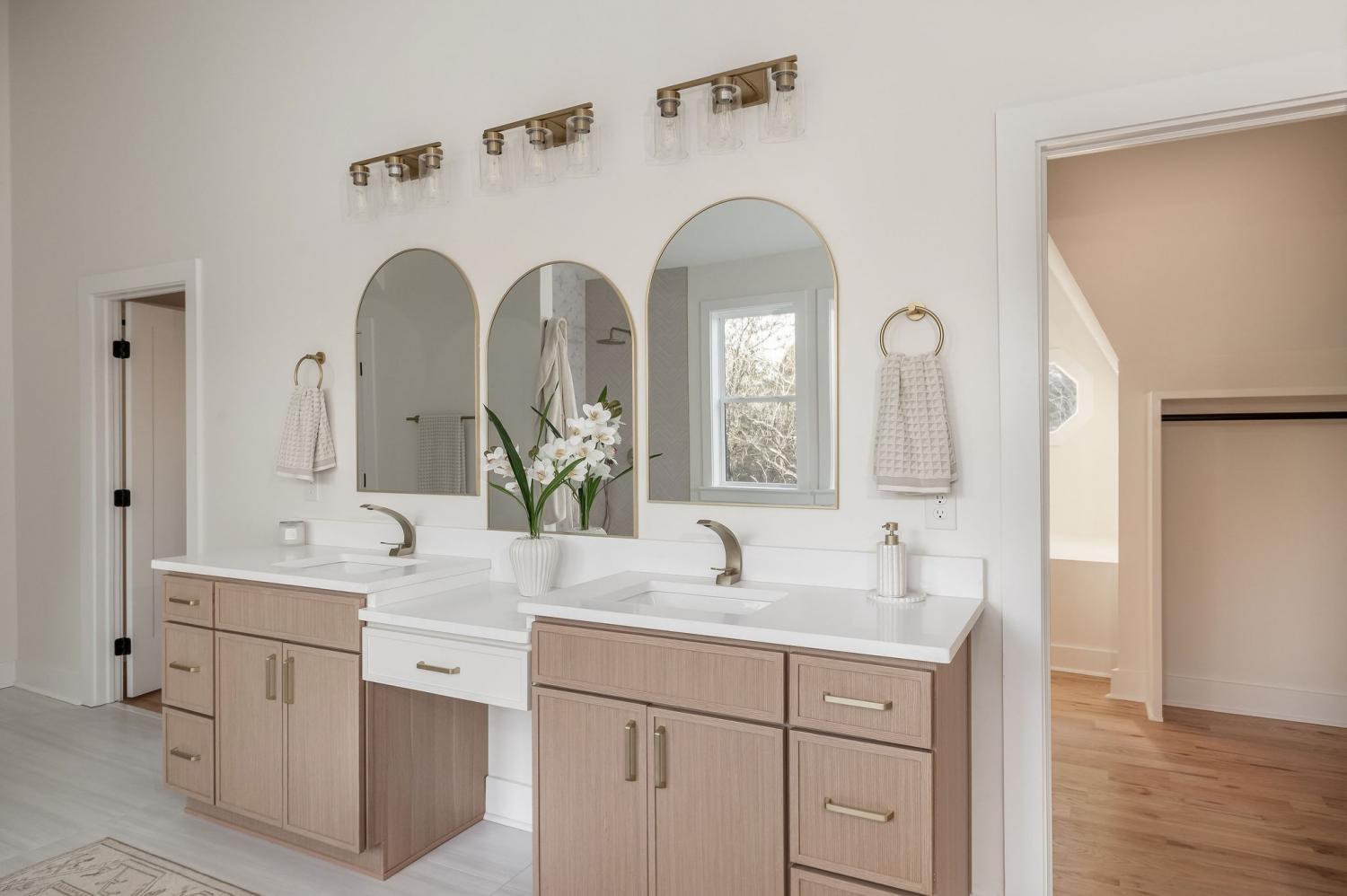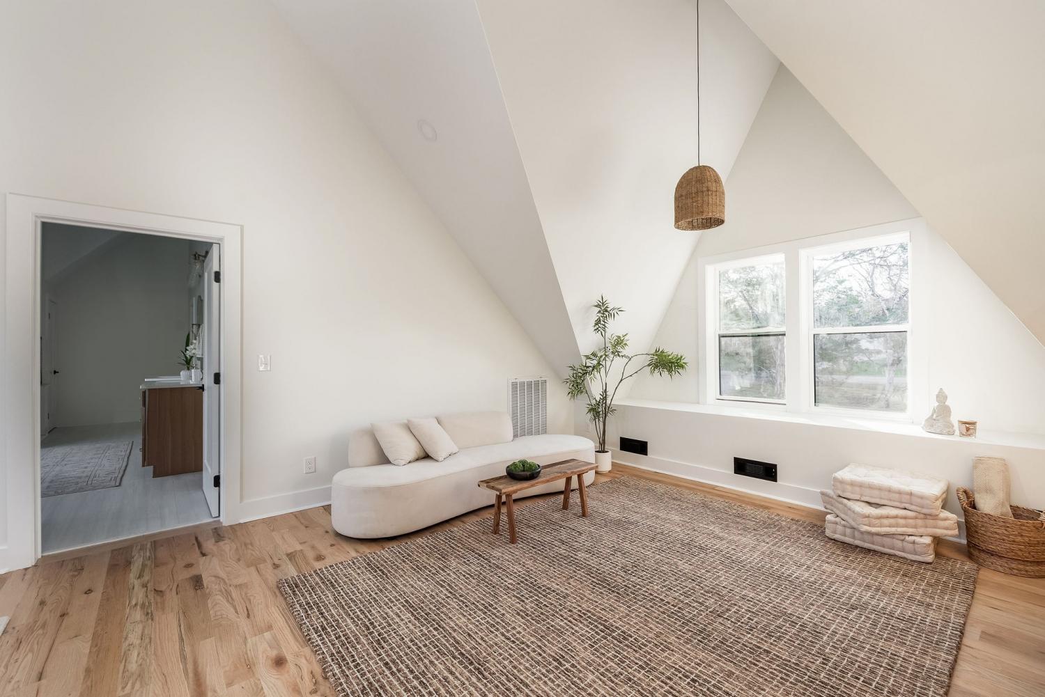 An immaculate OneToCrew design and build on a coveted street and pocket of Neelys Bend. Built from the foundation up, this home can be your sanctuary for years to come. The open living area and kitchen allow for easy entertaining, featuring a large island perfect for congregating and ample storage, stainless steel appliances, floor to ceiling cabinets, and easy access to al fresco dining on the deck. The secondary bedrooms share the soaring ceilings on this floor and custom built closets. Extra living space can be found downstairs, with a large den and media area that walks out to the backyard. An additional two secondary bedrooms, bathroom, and laundry room allow this floor to potentially serve as a suite or room to spread out. The showstopper is the primary suite that encompasses the entire second floor, finished with cathedral ceilings, natural light, soaking tub, double shower, and matching double closets. Off of the bedroom is a flex room that can serve as an office, nursery, or yoga room. Namaste. Finish your workout and step across the hall to the private primary laundry, complete with a half bath. All of this, tucked on the magical river neighborhood on the bend. With almost an acre of green space, creek, and soaring old growth trees, this is the craftsman meets farmhouse you have been waiting on, just in time for the fall colors to grace the view outside your new soaking tub.