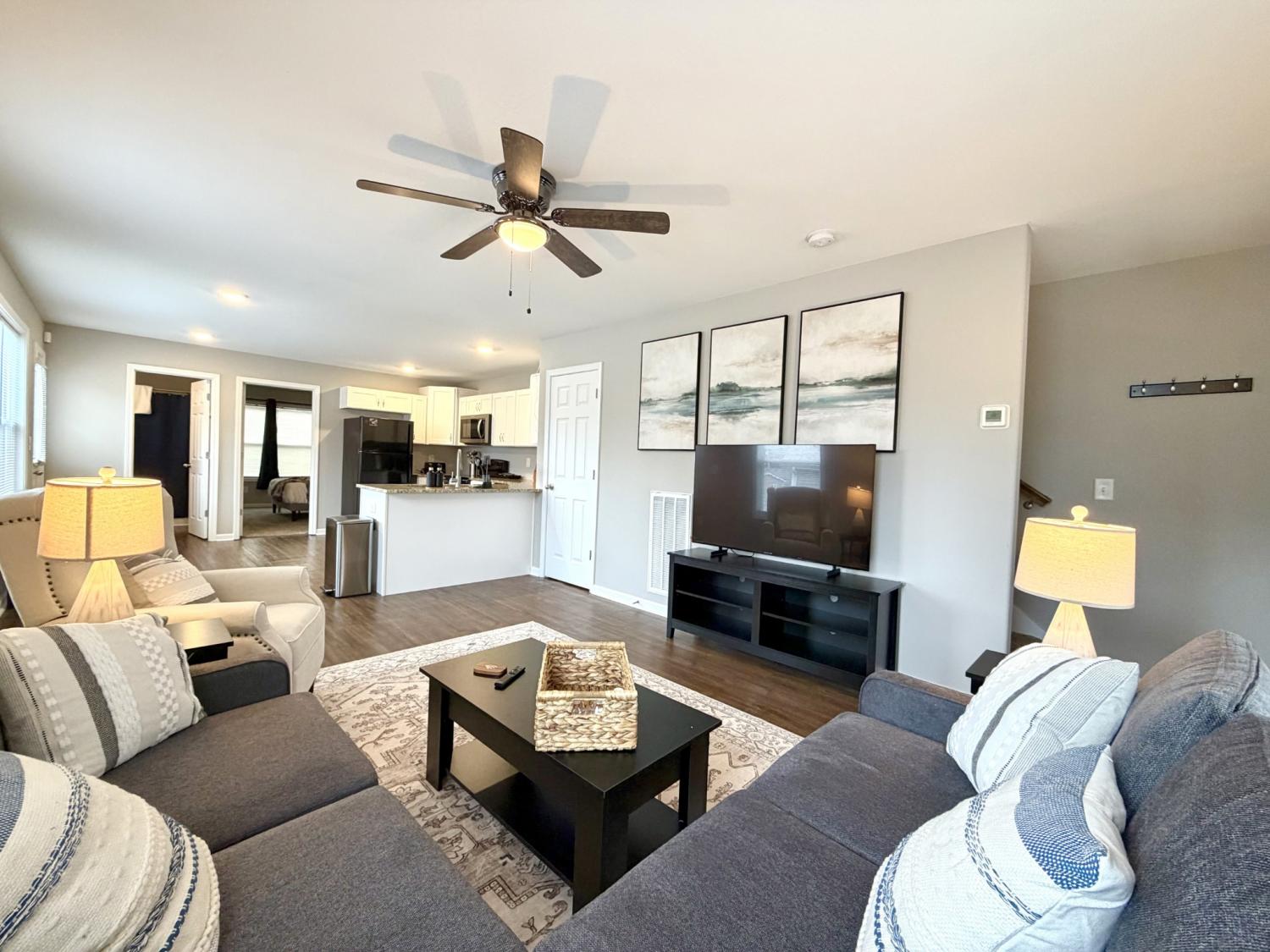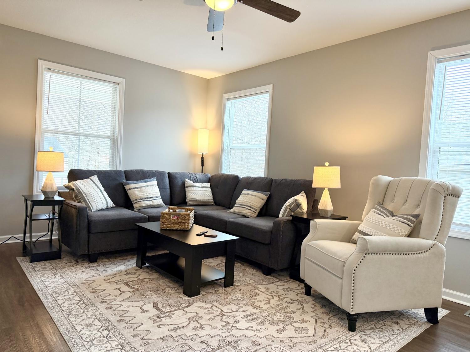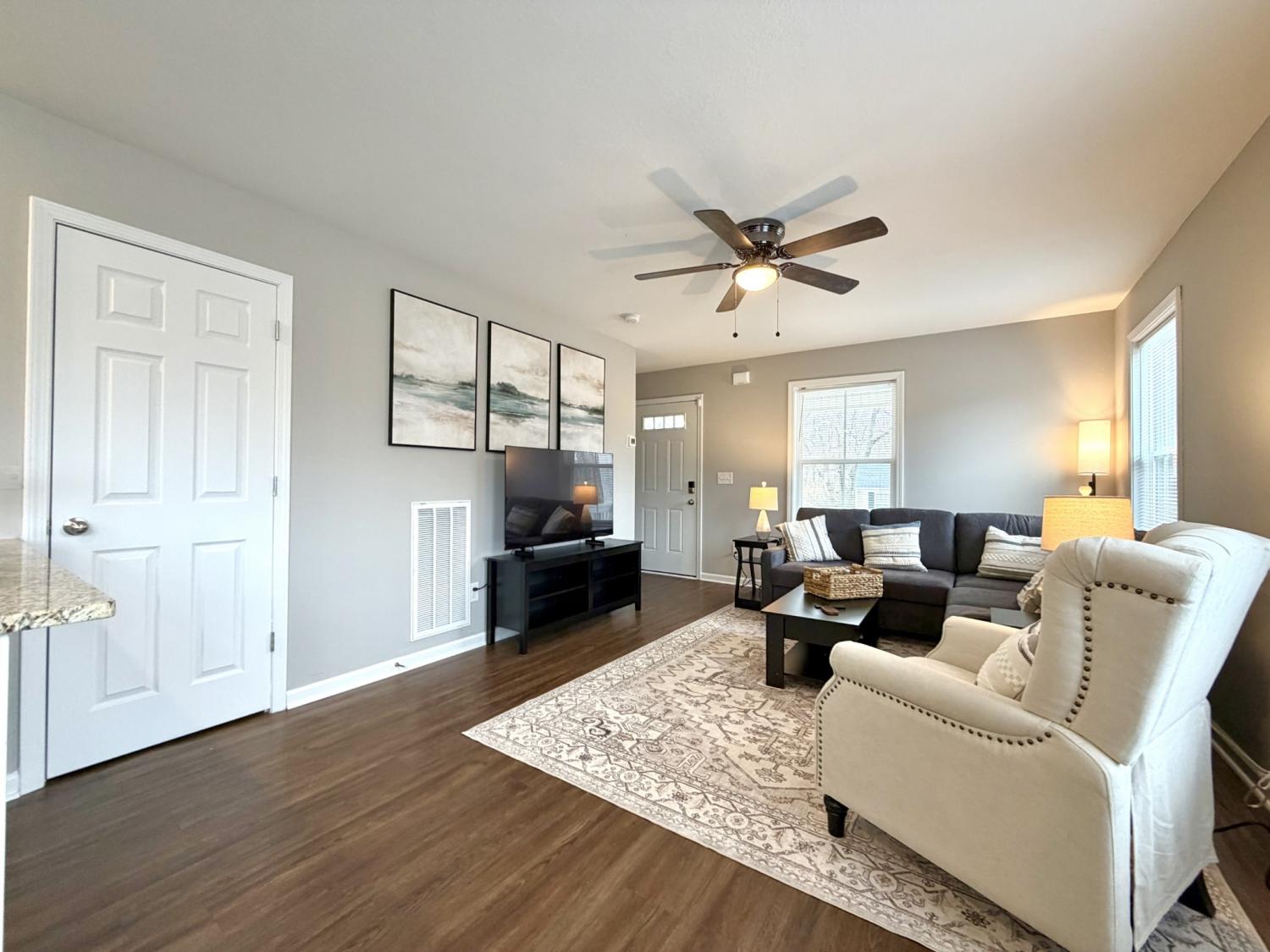 This beautifully furnished three-bedroom, two-bath home offers the perfect blend of comfort and convenience right in the heart of Clarksville. The primary bedroom is located on the first floor, while two additional bedrooms upstairs provide plenty of space for family, guests, or a home office. The home comes fully furnished with stylish furniture and modern appliances, making move-in simple and stress-free. All utilities are included—water, electric, internet, trash service, and lawn care—so you can enjoy a hassle-free living experience with one straightforward monthly payment. The open living and dining areas are designed for both relaxation and entertaining, and the prime location places you close to shopping, dining, schools, and everything Clarksville has to offer. Pets allowed with $300 pet fee per pet. No more than 2 pets, no vicious breeds or puppies under 12 months old.