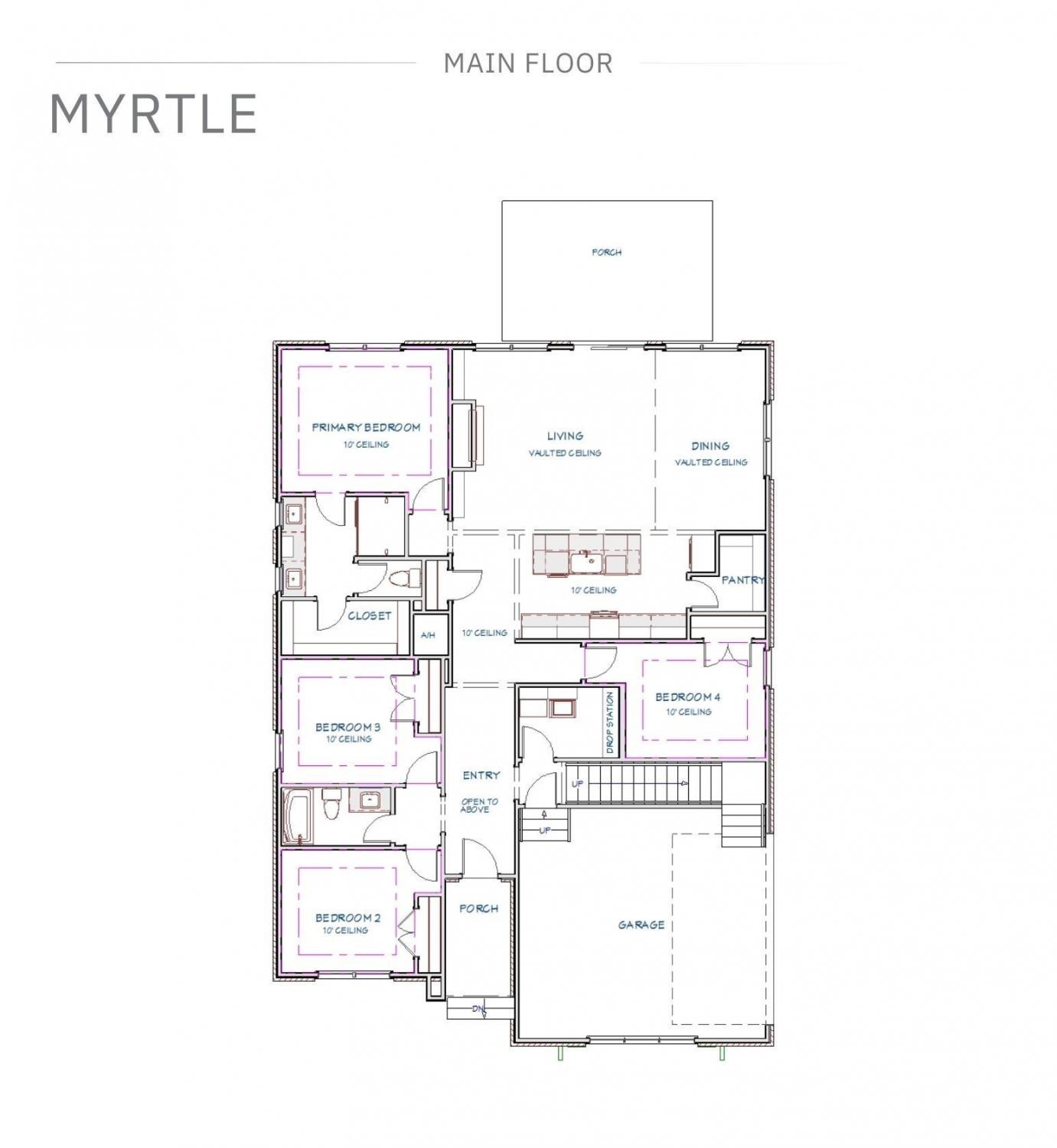 The Myrtle by Homefront builders is a 4 bed, 2.5 bath Ranch with an upstairs bonus room. This house is bathed in natural light from lots of windows and the 10ft ceilings really make it feel spacious. From the stunning 2 story entryway to the well designed main living space, there’s lots to love with this floor plan! The kitchen featured GE cafe appliances and it also has a pantry as well as a large island. A fireplace between cabinets and custom shelving give the living room stylish storage. The bonus room has a half bath and two closets, one that leads right into the attic for additional storage. The laundry room has cabinets and a drop station to keep everything organized! Primary shower features two shower heads and a waterfall fixture as well. The details of this home have all been considered when it comes to design! Homefront Builders homes are backed by a 10 year structural warranty! Seller has accepted an offer with a 48 hour first right of refusal contingency. Accepting other offers.