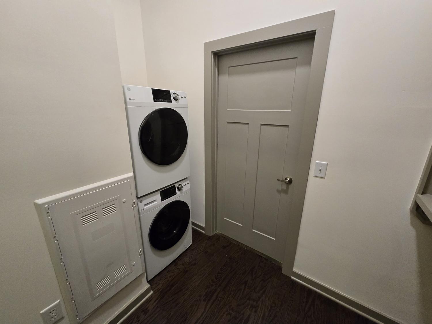 Owner agent. 1st floor condo with a community gym and pool, Amazon package locker service, and Google Fiber is also available in the building (at tenant's cost). Need notice to show. One off-street parking spot is included. Trash is on-site and included in the rent price. Washer and dryer also located inside the unit. No pets allowed.