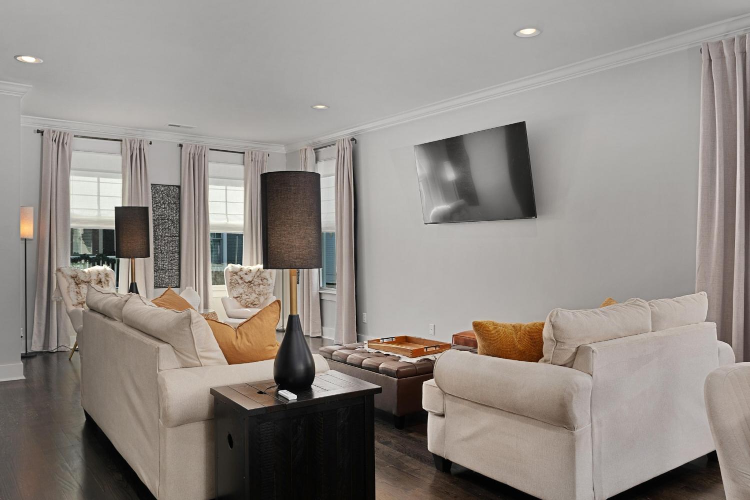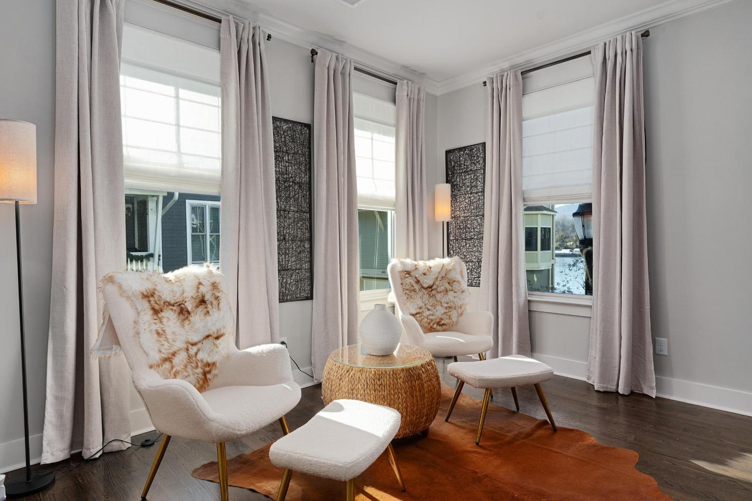Coveted end unit with views of the Tennessee River in the desirable Cameron Harbor community within walking distance to restaurants and Riverfront Landing, and just minutes from downtown Chattanooga, the new stadium, schools, hospitals and the bustling Southside. Enjoy the ease of condo living without sacrificing space, quality finishes or amenities, such as the hardwoods and tile throughout, updated lighting and backsplash, granite countertops, lofty ceilings, crown molding, wonderful natural lighting, and your very own EV charger in the double garage. Your tour of this 4 bedroom, 3.5 bath unit begins with entry from the covered front patio to the foyer that services the garage, staircase and a bedroom suite with a with a private bath - perfect for guests or a nice home office. Head upstairs to the ''main'' living level where you will find the wonderfully open kitchen, dining and great room, providing the perfect spot to gather and entertain. The kitchen has a center island with pendant lighting, granite countertops, soft-close drawers, stainless appliances, a built-in desk, a walk-in pantry and access to the powder room. The great room is spacious and enjoys an extra sitting area which is perfect for curling up with a good book and enjoying the warm sunlight and corner views of the river. There is also a covered balcony overlooking the center courtyard and the walkway to the riverfront. The remaining bedrooms are on the upper level, including the primary bedroom that has a specialty ceiling, walk-in closet and primary bath with a dual granite vanity, a soaking tub and separate shower with tile and glass surround. Two additional bedrooms are adjoined by a shared bath, and the laundry closet is in the hallway just outside the primary suite. Walk out your front door, and you are literally just steps away from the river walk, the community pool, fitness center, dog park and gust parking.