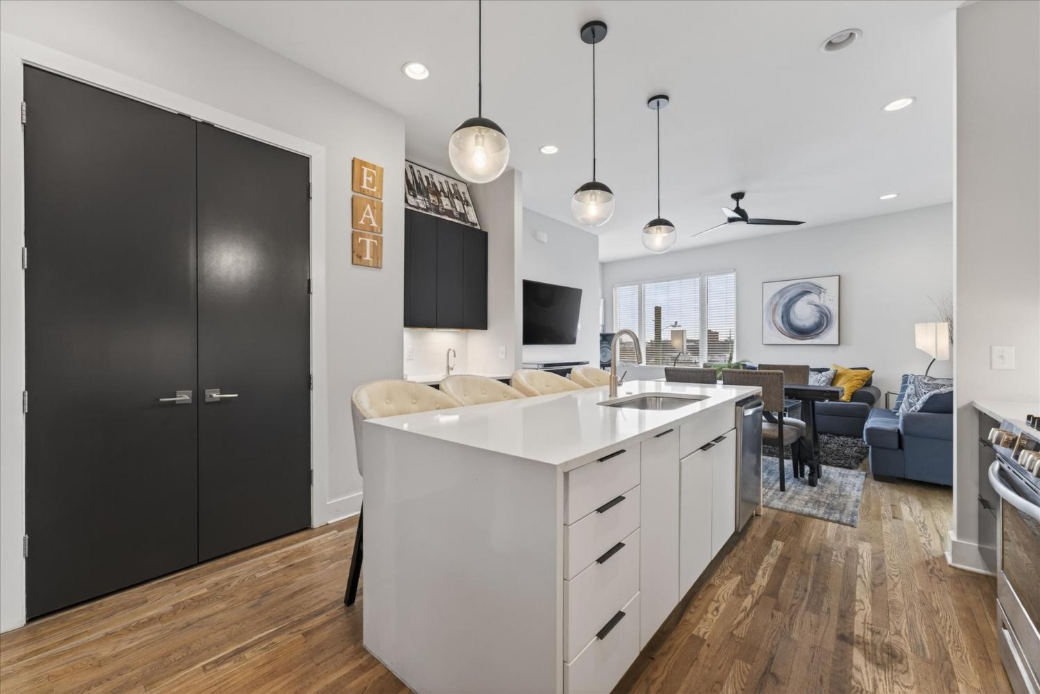 **SELLER IS OFFERING $10K TOWARDS BUYERS CLOSING COSTS!!** BEST VIEWS • TURNKEY LUXURY STR • FULLY FURNISHED & INCOME-PRODUCING Experience the only end-unit townhome in the building with uninterrupted skyline views from every level. Strategically designed with stylish furnishings to optimize every guest space, this 4-bed, 4-bath residence is ideal for both owner-occupants and non-owner occupied high-performing short-term rental income. Sold turnkey with the option to acquire the LLC and retain active STR permits, the property provides immediate revenue potential. Sunlight floods the home from three sides, while the rooftop terrace offers sweeping downtown views—perfect for relaxing, entertaining, or enjoying city life from above. A two-car garage has been transformed into a guest-favorite game room, adding a unique amenity for renters or personal enjoyment. Located minutes from Broadway, The Gulch, Nissan Stadium, Midtown, and walkable to OneCity and Centennial Park, this one-of-a-kind property blends prime location, luxury design, and exceptional income potential.