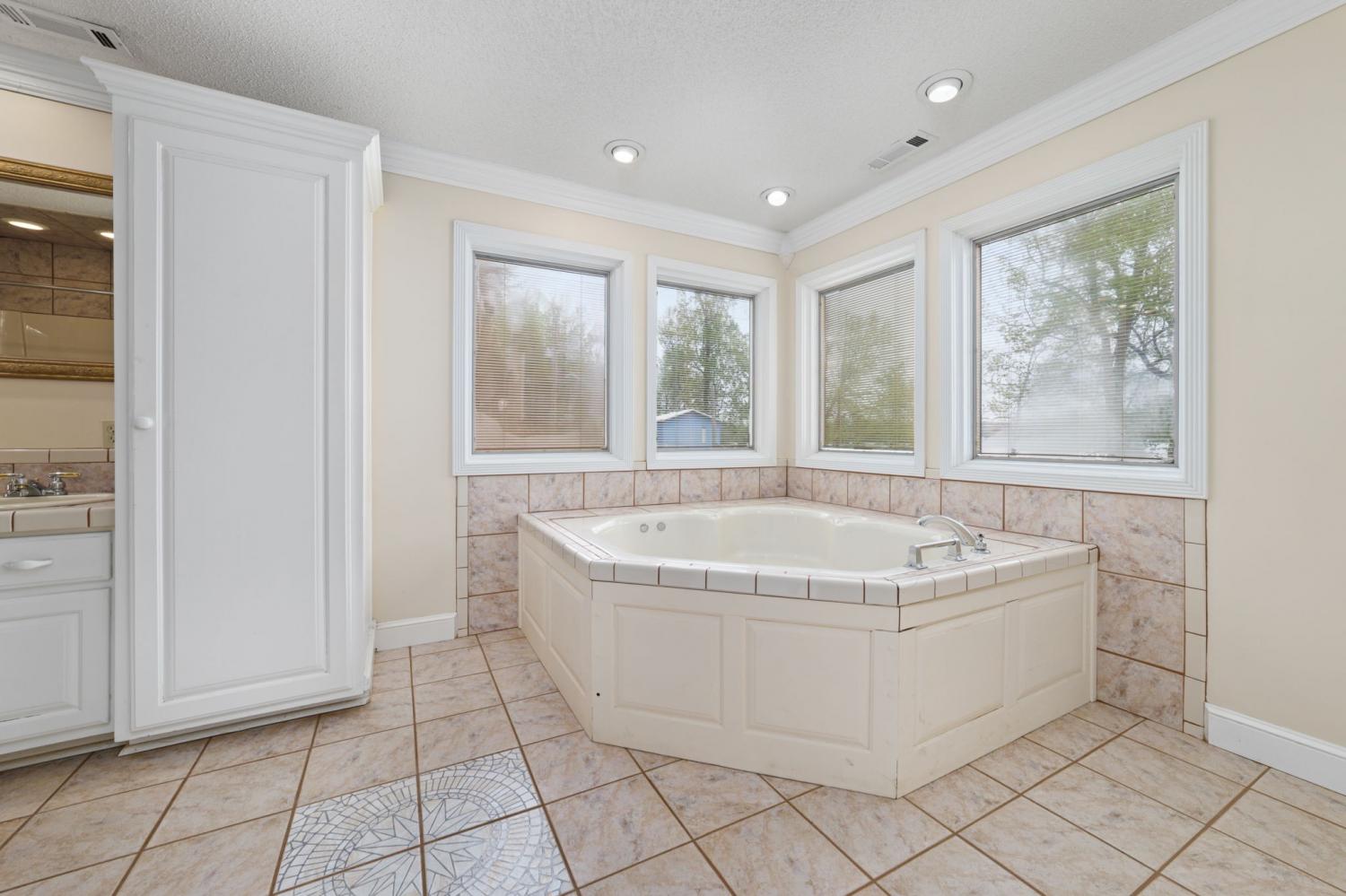 Peaceful waterfront living on Bear Creek with shop space for boat storage. This 4-bedroom, 3-bath home offers elevator access,a main-level office, and beautiful water views from the front porch and two screened-in sunrooms. The home originated as adoublewide modular/manufactured residence with a two-story addition added in 2000, featuring a spacious primary suite with gaslog fireplace, jetted tub, walk-in closet, and bonus room. The kitchen includes oak cabinetry. Easy access to the seawall, pier,and boathouse. Shop storage for vehicles and ATVs, plus RV parking. A rare opportunity to own a true waterfront fisherman’sparadise.