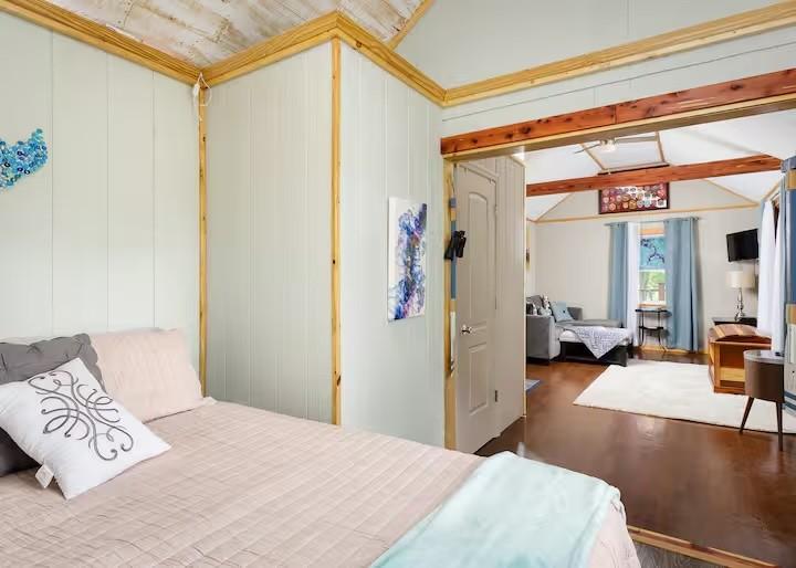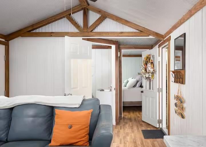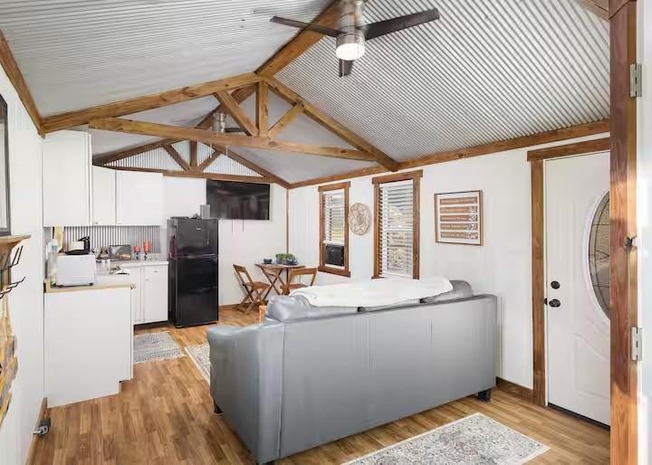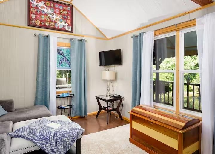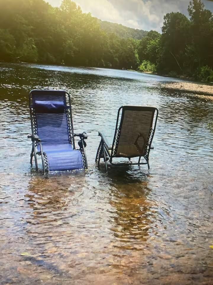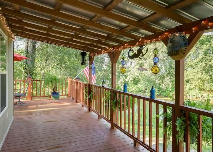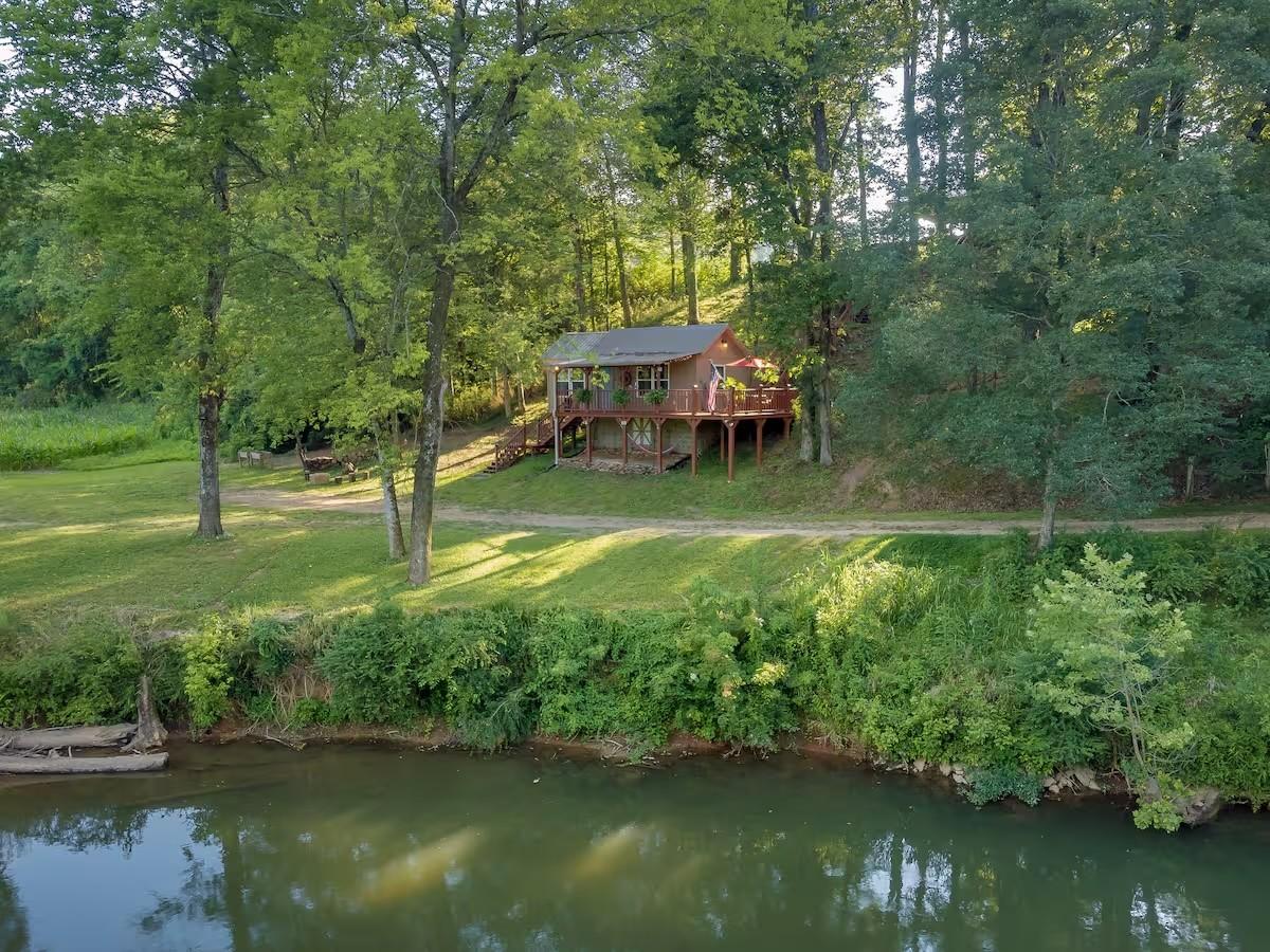 An exceptional opportunity on Shoal Creek, a waterway renowned for kayaking and canoeing. This unique creekfront compound features four separate residences, offering the ideal setup for a multifamily retreat, private compound, or income-producing investment. The main residence is a well-appointed basement home with granite countertops, spacious living areas, and a primary suite featuring a Jacuzzi tub, double vanities and walk-in closets. A covered porch overlooking the creek provides a peaceful setting for everyday living, while the attached garage adds convenience. Three additional structures are currently operating as successful Airbnb rentals. The bunkhouse offers approximately 1,500 square feet of living space above a large workshop, providing flexible use for guests, extended family, or additional rental income. Two charming creekside cabins—Parker’s Place and Mermaid Hideaway—overlook Shoal Creek and are thoughtfully designed for comfort and character. Each cabin features tankless water heaters and inviting interiors that capitalize on the serene waterfront setting. Each residence has its own septic system, and the property is equipped with high-speed internet throughout, making it suitable for full-time living, remote work, or short-term rentals. This is a rare chance to own a four-residence creekfront property in a highly desirable recreational setting—perfect for those seeking a private waterfront compound or a turnkey investment with proven income potential. Main house has 1536 sq.ft., bunkhouse 1500 sq.ft., Parker's Place 360 sq.ft., Mermaid Hideaway 260 sq.ft. TOTAL of 3656 Sq.Ft.