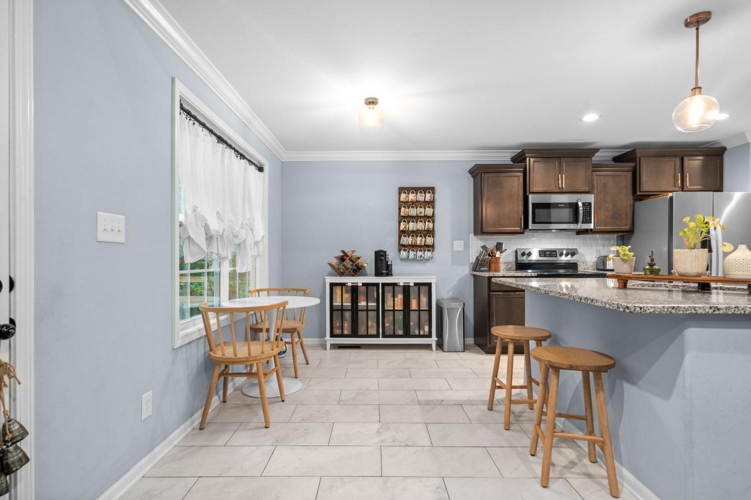 Nestled on a quiet cul-de-sac with no rear neighbors, this well-appointed home offers privacy and convenience in a prime location. The main level features a formal dining room, a spacious kitchen with granite countertops, stainless steel appliances, and an eat-in area overlooking a wooded backdrop. The living room includes an electric fireplace, and the primary suite is conveniently located on the main floor with dual vanities, a soaking tub, a tiled shower, and a walk-in closet. A dedicated laundry area is also located on the first floor. Upstairs includes two additional bedrooms, a full bathroom, and a large bonus room ideal for a home office, media room, or flex space. Outdoor highlights include a covered front porch, a screened-in deck with peaceful views, and a privacy-fenced backyard. Conveniently located near Fort Campbell, APSU, I-24 Exit 1, and downtown. Schedule your tour today! *MARKETING & APPLICATIONS BY ABODE MANAGEMENT* *MANAGED BY OWNER*