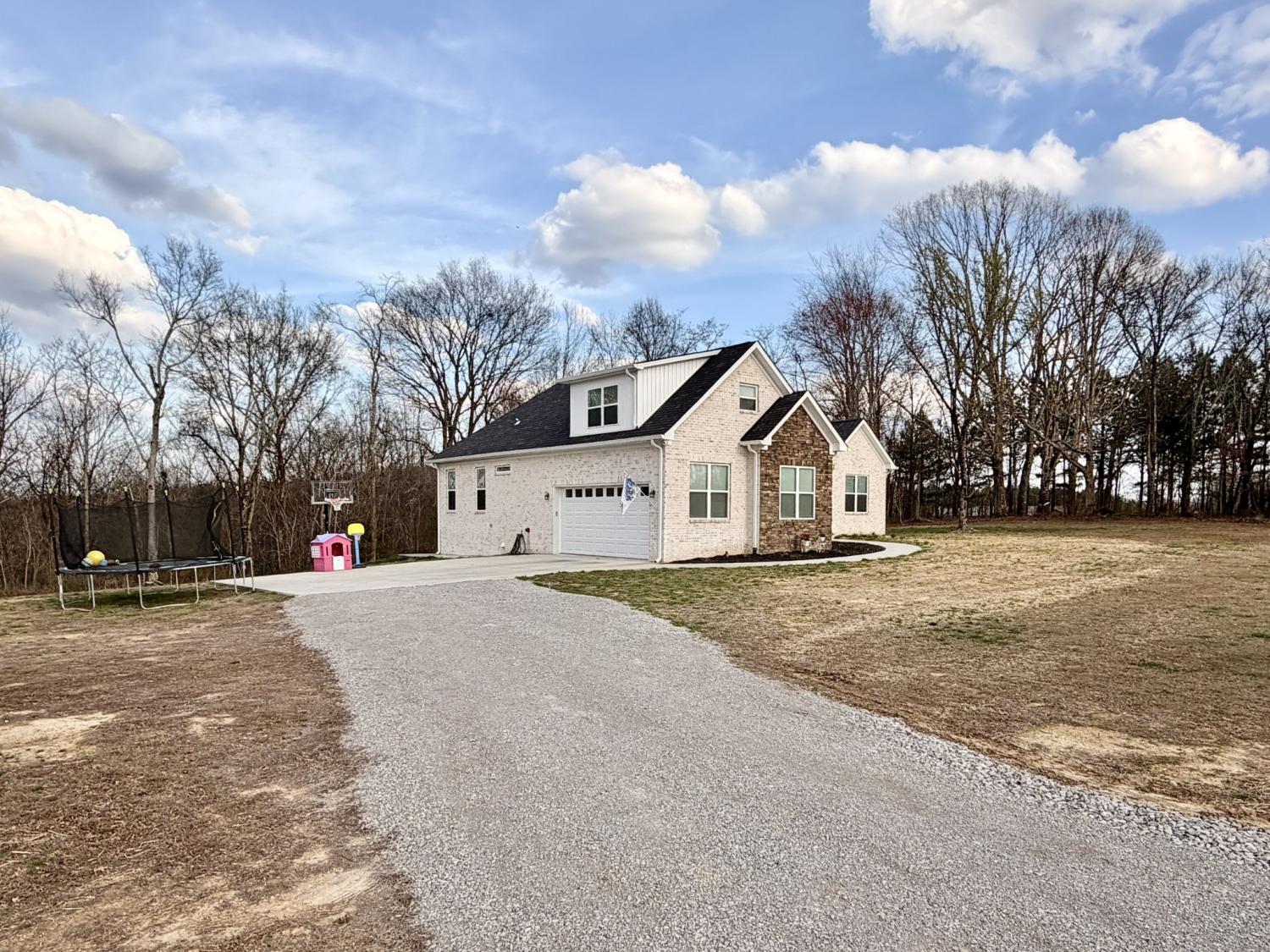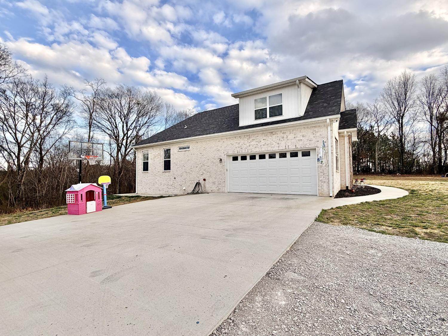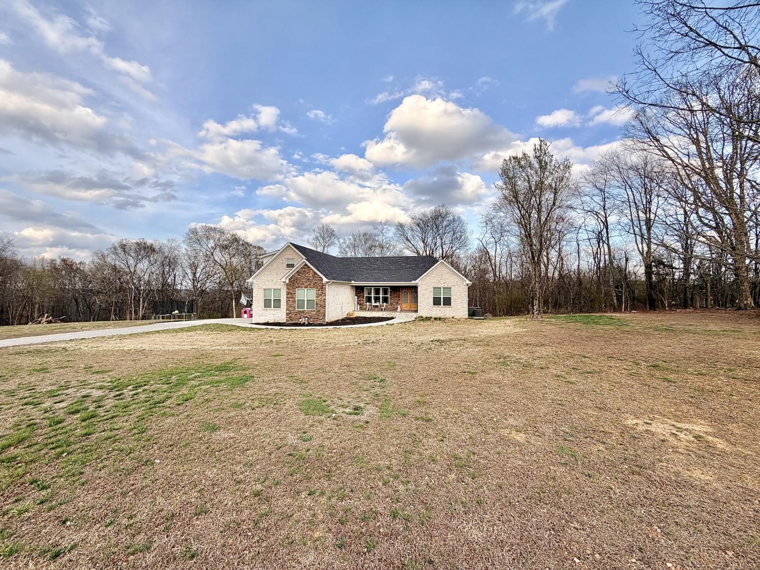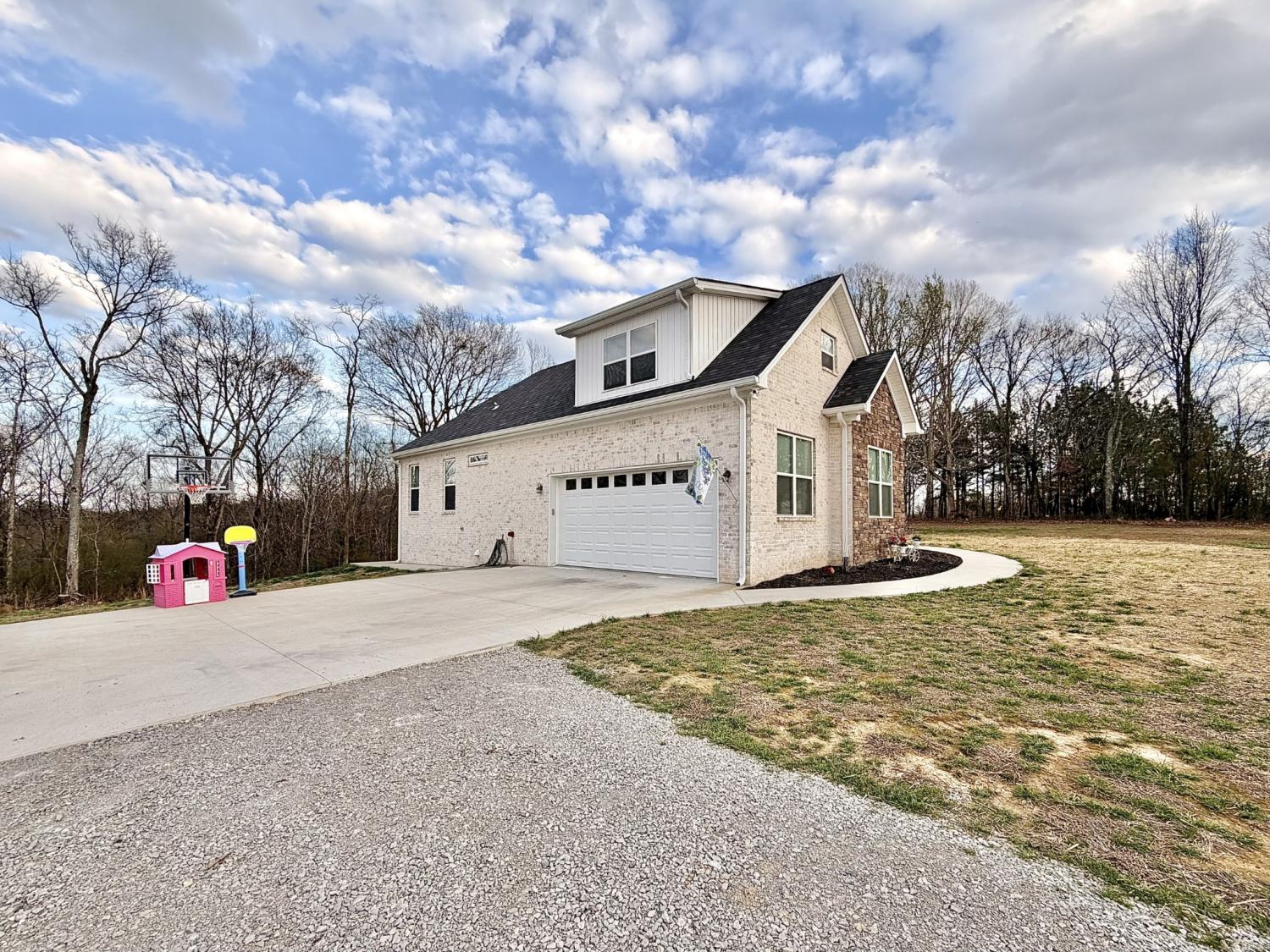 Welcome to refined country living in one of Giles County’s most sought-after areas. This stunning, newly constructed all-brick home sits on a peaceful 2-acre tract and offers 3 bedrooms, 3 full bathrooms, a spacious bonus room, and 2,358 sq. ft. of thoughtfully designed living space. From the moment you arrive, the inviting 6x23 covered front porch with tongue-and-groove ceiling, stone accents, and recessed lighting sets the tone for the quality found throughout. Step inside through elegant 8-foot mahogany French doors to an open-concept living, dining, and kitchen area filled with natural light, soaring 18-foot vaulted ceilings, and beautiful oak hardwood floors. The show-stopping kitchen features custom two-tone maple cabinetry, quartz and granite countertops, under-cabinet lighting, tile backsplash, farm-style sink, stainless steel LG appliances, and an impressive batwing island with seating for six—perfect for everyday living and entertaining alike. The primary suite is a true retreat, offering a tray ceiling, spa-inspired ensuite with custom tile, and a generous walk-in closet. Two oversized guest bedrooms share a well-appointed hallway bath, while the expansive bonus room with its own private bathroom provides endless flexibility as a home office, guest suite, media room, or playroom. Enjoy outdoor living on the 16x14 rear deck, ideal for relaxing or hosting gatherings. Additional highlights include a large laundry/mudroom, a 526 sq. ft. garage, a 40x32 concrete parking pad, and wrap-around sidewalks connecting both front and rear porches. Conveniently located just 7 miles from Pulaski, 17 miles from I-65 Exit 14, and approximately one hour from Nashville and Huntsville. Utilities include Minor Hill water and Pulaski Electric System with high-speed internet. This home seamlessly blends modern luxury, thoughtful design, and peaceful rural living—an exceptional opportunity you won’t want to miss.