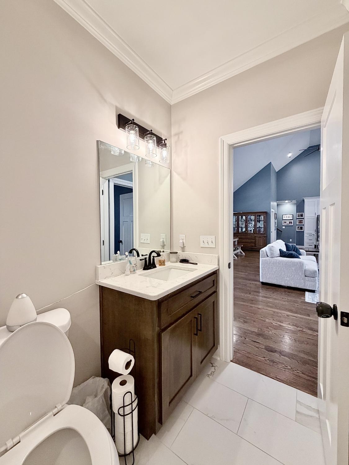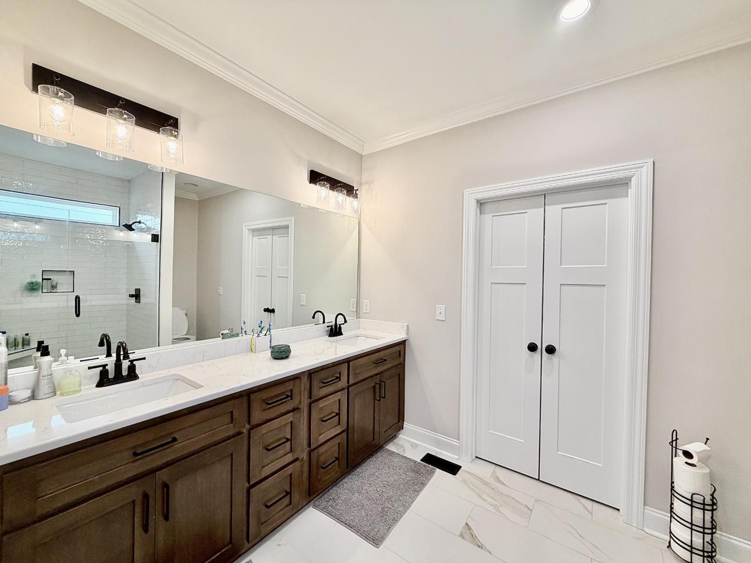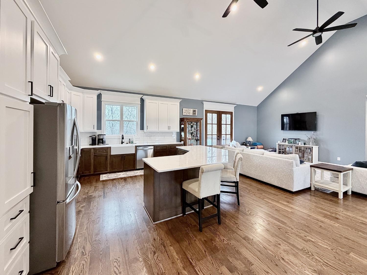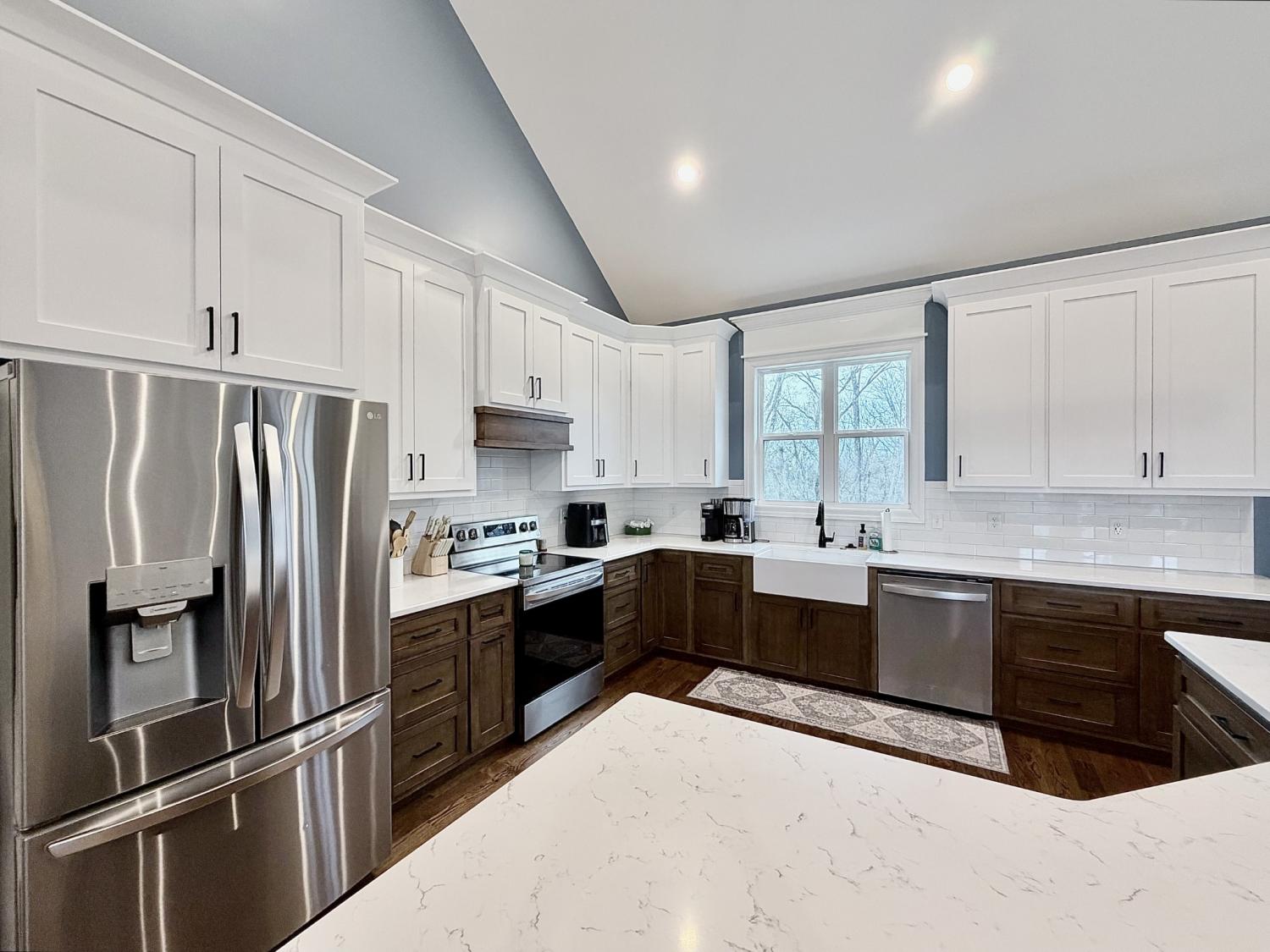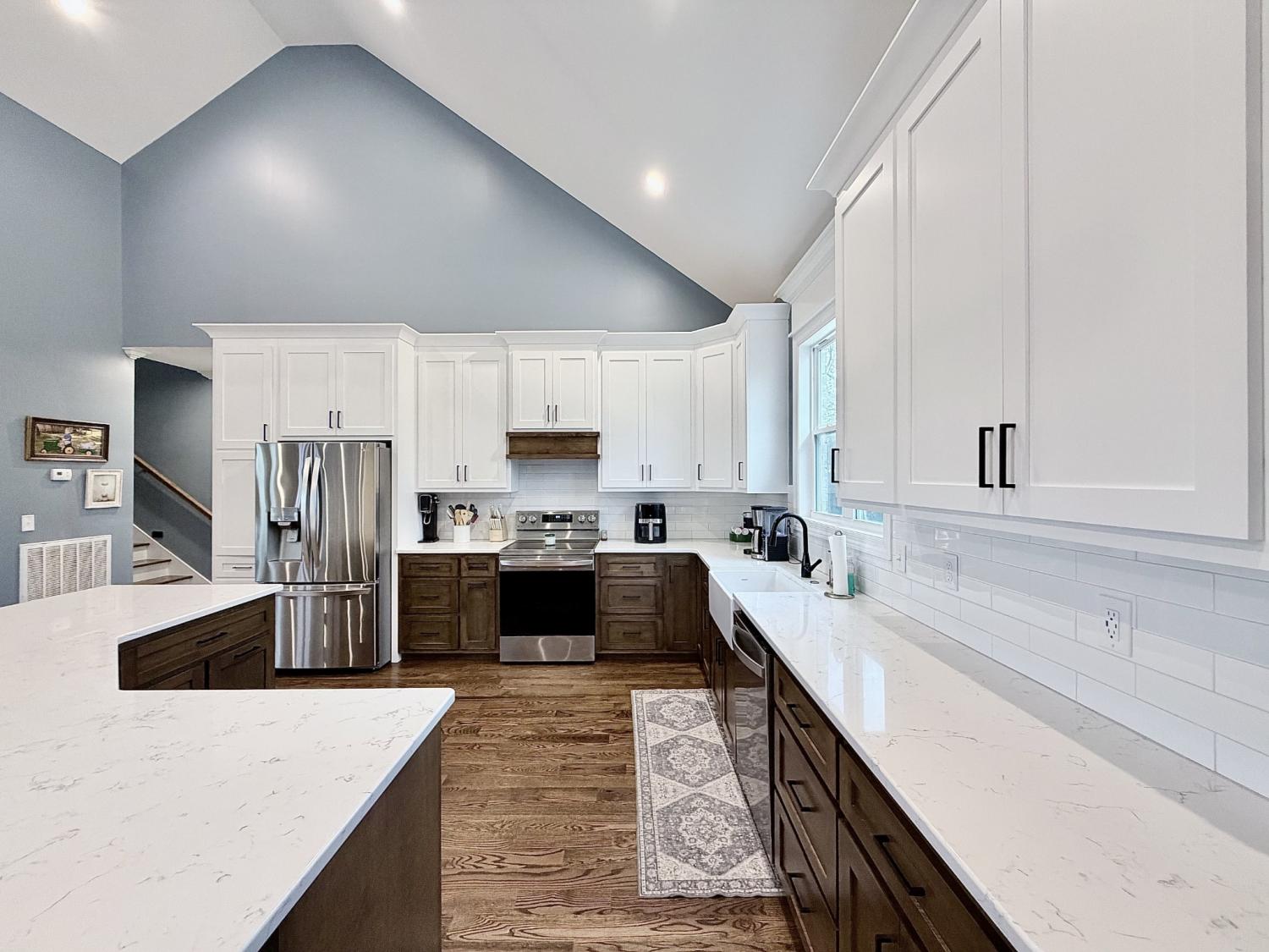 Welcome to refined country living in one of Giles County’s most sought-after areas. This stunning, newly constructed all-brick home sits on a peaceful 2-acre tract and offers 3 bedrooms, 3 full bathrooms, a spacious bonus room, and 2,358 sq. ft. of thoughtfully designed living space. From the moment you arrive, the inviting 6x23 covered front porch with tongue-and-groove ceiling, stone accents, and recessed lighting sets the tone for the quality found throughout. Step inside through elegant 8-foot mahogany French doors to an open-concept living, dining, and kitchen area filled with natural light, soaring 18-foot vaulted ceilings, and beautiful oak hardwood floors. The show-stopping kitchen features custom two-tone maple cabinetry, quartz and granite countertops, under-cabinet lighting, tile backsplash, farm-style sink, stainless steel LG appliances, and an impressive batwing island with seating for six—perfect for everyday living and entertaining alike. The primary suite is a true retreat, offering a tray ceiling, spa-inspired ensuite with custom tile, and a generous walk-in closet. Two oversized guest bedrooms share a well-appointed hallway bath, while the expansive bonus room with its own private bathroom provides endless flexibility as a home office, guest suite, media room, or playroom. Enjoy outdoor living on the 16x14 rear deck, ideal for relaxing or hosting gatherings. Additional highlights include a large laundry/mudroom, a 526 sq. ft. garage, a 40x32 concrete parking pad, and wrap-around sidewalks connecting both front and rear porches. Conveniently located just 7 miles from Pulaski, 17 miles from I-65 Exit 14, and approximately one hour from Nashville and Huntsville. Utilities include Minor Hill water and Pulaski Electric System with high-speed internet. This home seamlessly blends modern luxury, thoughtful design, and peaceful rural living—an exceptional opportunity you won’t want to miss.