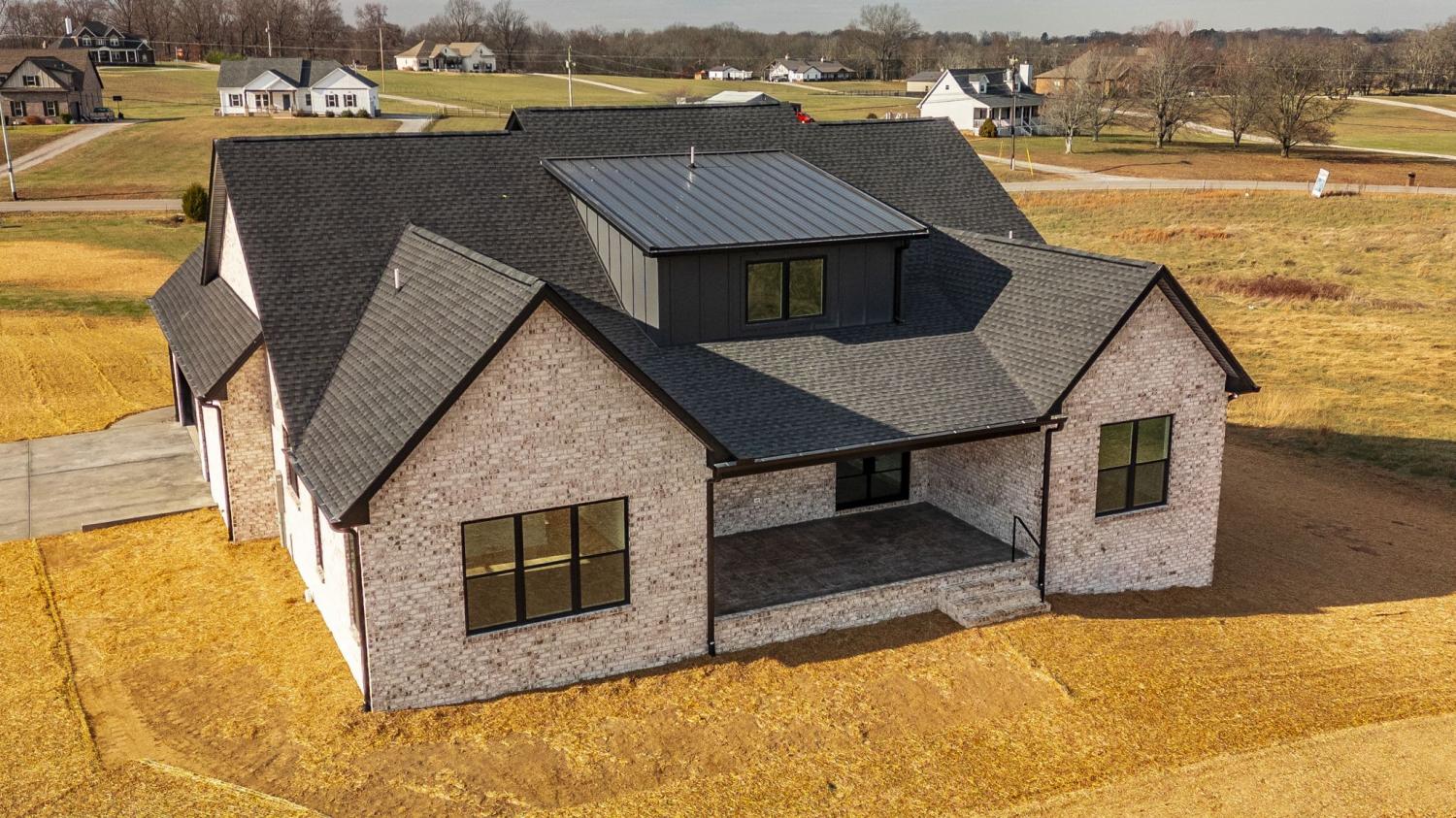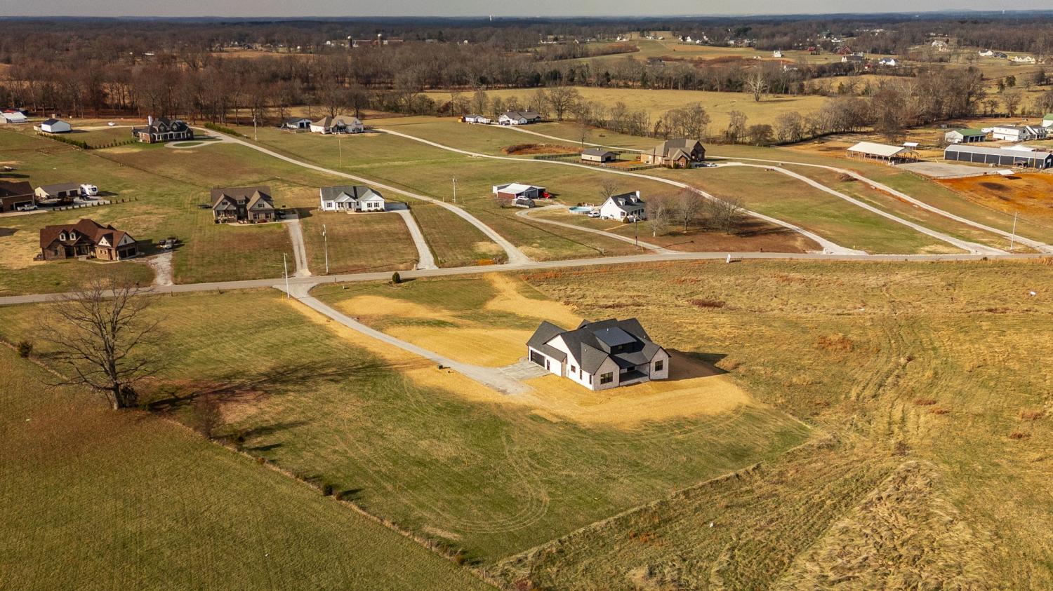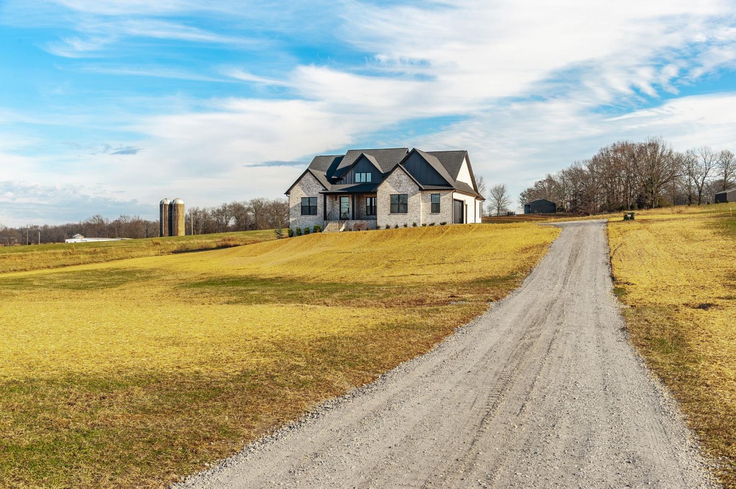 Beautiful custom brick home situated on over an acre with room to build a shop and add a pool. This 4-bedroom, 3.5-bath home features soaring 20-ft ceilings, hardwood flooring, and a gas fireplace. The kitchen offers café appliances and quartz countertops. Spacious primary suite with tile bath, quartz countertops and large walk-in closet. Additional highlights include a formal office, stamped concrete covered front and back porches, epoxy garage floor, and encapsulated crawlspace. Conveniently located just 15 minutes to I-65 and 40 minutes to Nashville. Buyer/ Buyers Agent to verify any pertinent information.