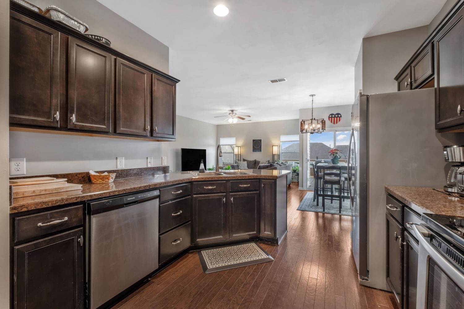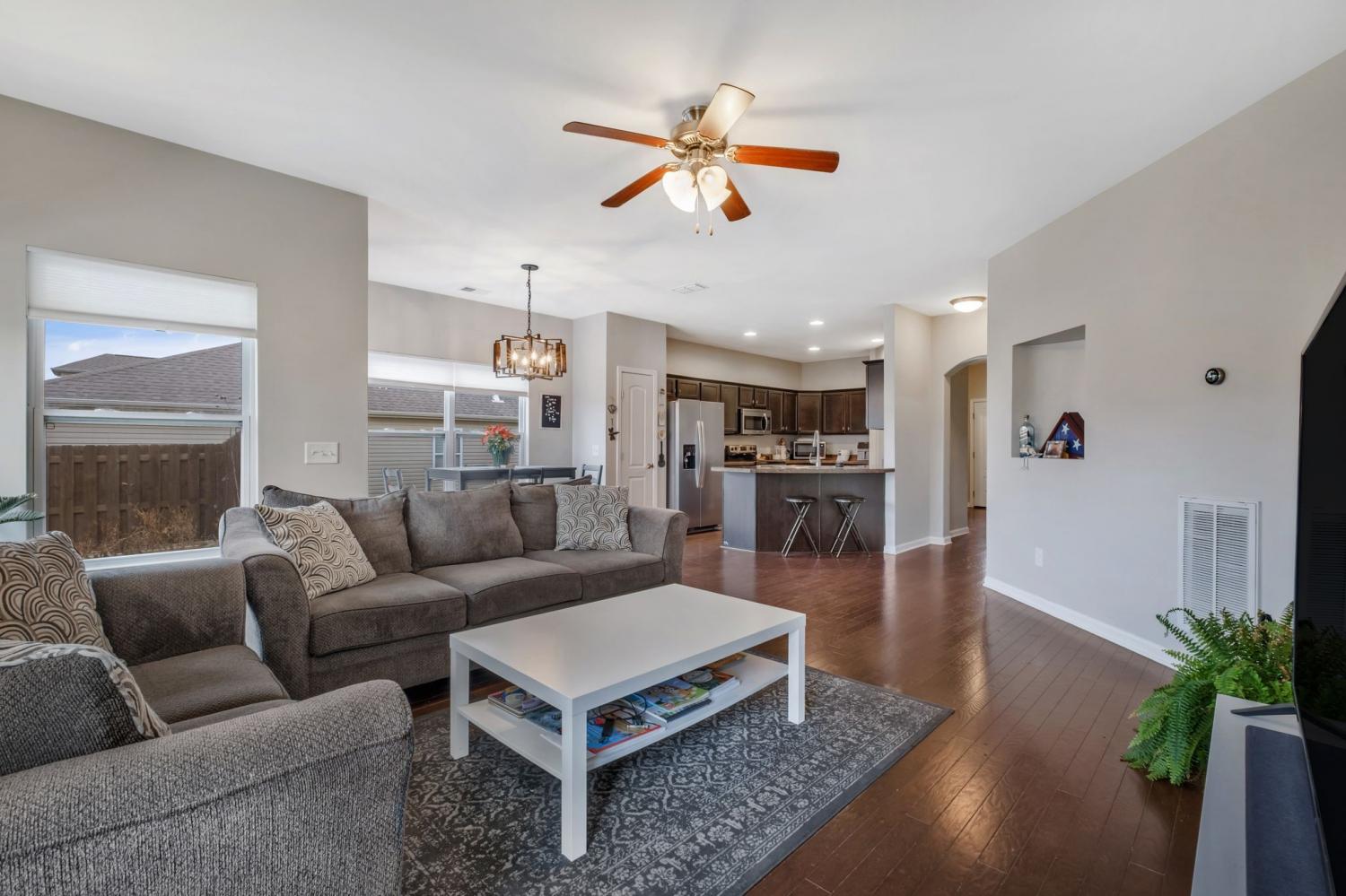 Welcome to 485 Callie Ave in Gallatin. This well-maintained 4-bedroom, 2.5-bath home offers 2,058 square feet of comfortable living space and was built in 2012. The open-concept layout features abundant natural light, hardwood flooring, and stainless steel appliances. The main-level primary suite includes a tray ceiling, upgraded carpeting, and an en-suite bathroom with tile flooring, garden tub, separate shower, double vanities, and a large walk-in closet. Upstairs offers three additional bedrooms along with a convenient office nook. Enjoy outdoor living in the privacy-fenced backyard, plus a 2-car attached garage. Conveniently located near shopping, dining, and major commuter routes, with neighborhood amenities including sidewalks, a pavilion, and a playground.