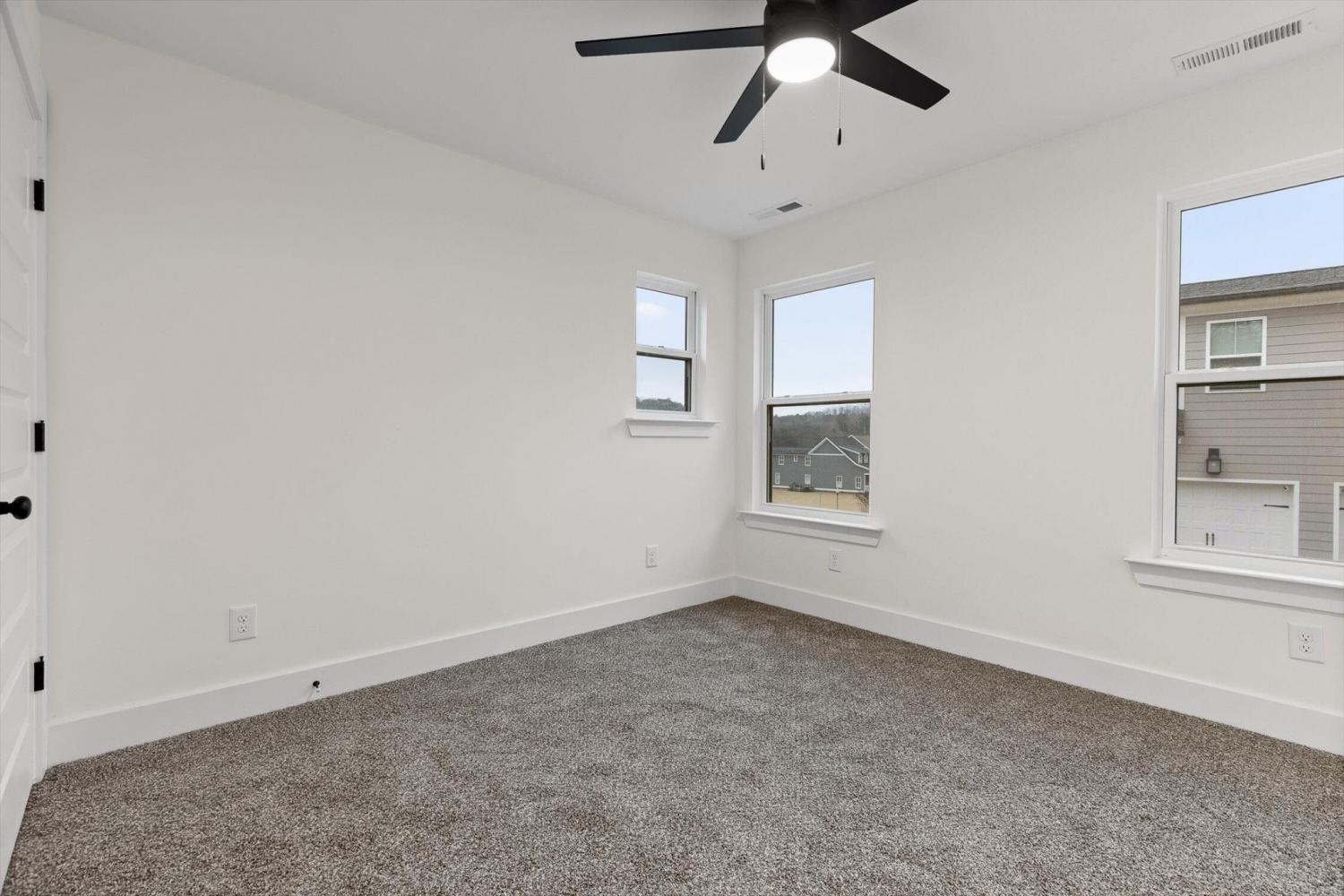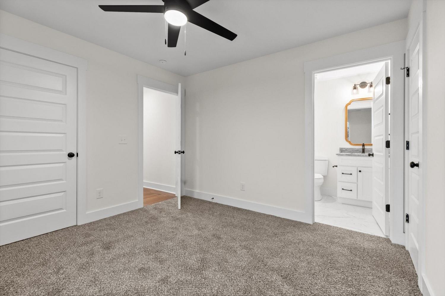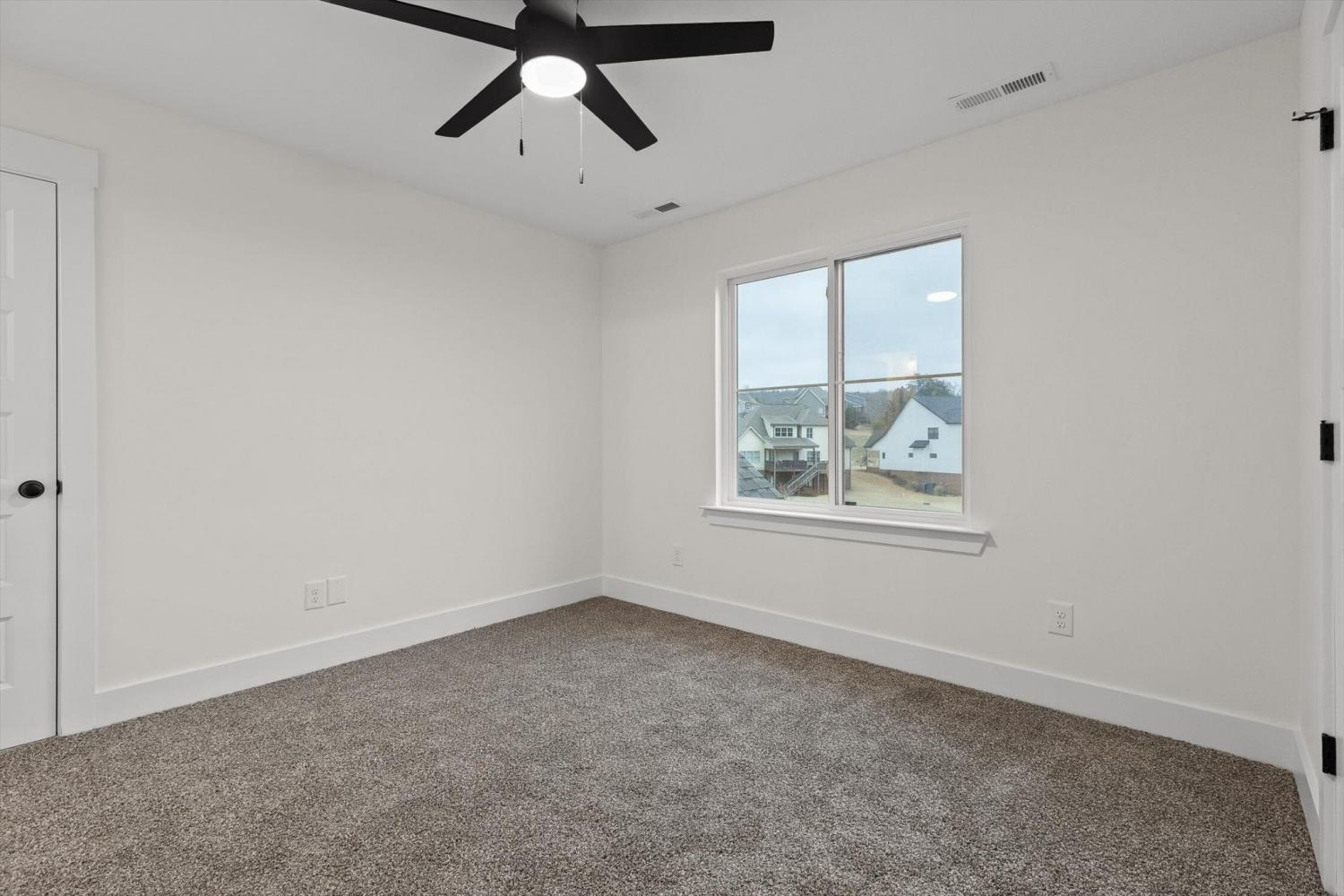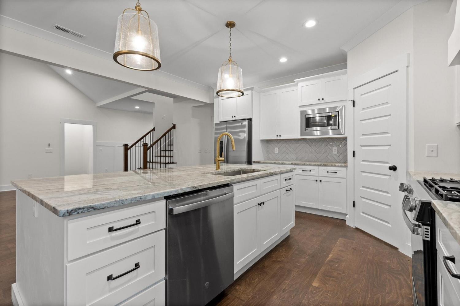 This brand-new home offers timeless character paired with modern comfort, located just off E. Brainerd Road in a peaceful, walkable neighborhood and directly across the street from the community pool—an ideal setting for both convenience and lifestyle. From the inviting front porch to the clean trim lines, metal roof, and mixed exterior siding, the exterior delivers strong curb appeal. Step inside to a bright, open-concept main level anchored by a vaulted living room centered around a cozy gas fireplace—perfect for gathering with family and friends. The living space flows seamlessly into the modern kitchen, which features a large center island, stainless steel appliances, a gas stove, pantry, and ample workspace for entertaining. French doors open to the back porch, creating a smooth transition to outdoor living and a fenced-in backyard ideal for pets or play. The main-level primary suite is a private retreat with a treyed ceiling and abundant natural light. The spa-inspired primary bathroom includes a large soaking tub, a spacious walk-in shower, and separate vanities with built-in storage. A laundry room with a sink adds everyday convenience. Also on the main level is a private guest suite with its own bath—perfect for an in-law suite, home office, or study. Upstairs, two generously sized bedrooms with large closets share a Jack-and-Jill bathroom. A spacious loft provides flexible use as a home office or family TV area, while an additional bonus room and full bathroom offer even more living space. With its new construction, thoughtful layout, quality finishes, and access to community amenities in a walkable neighborhood, this home offers a perfect blend of comfort, style, and modern living.